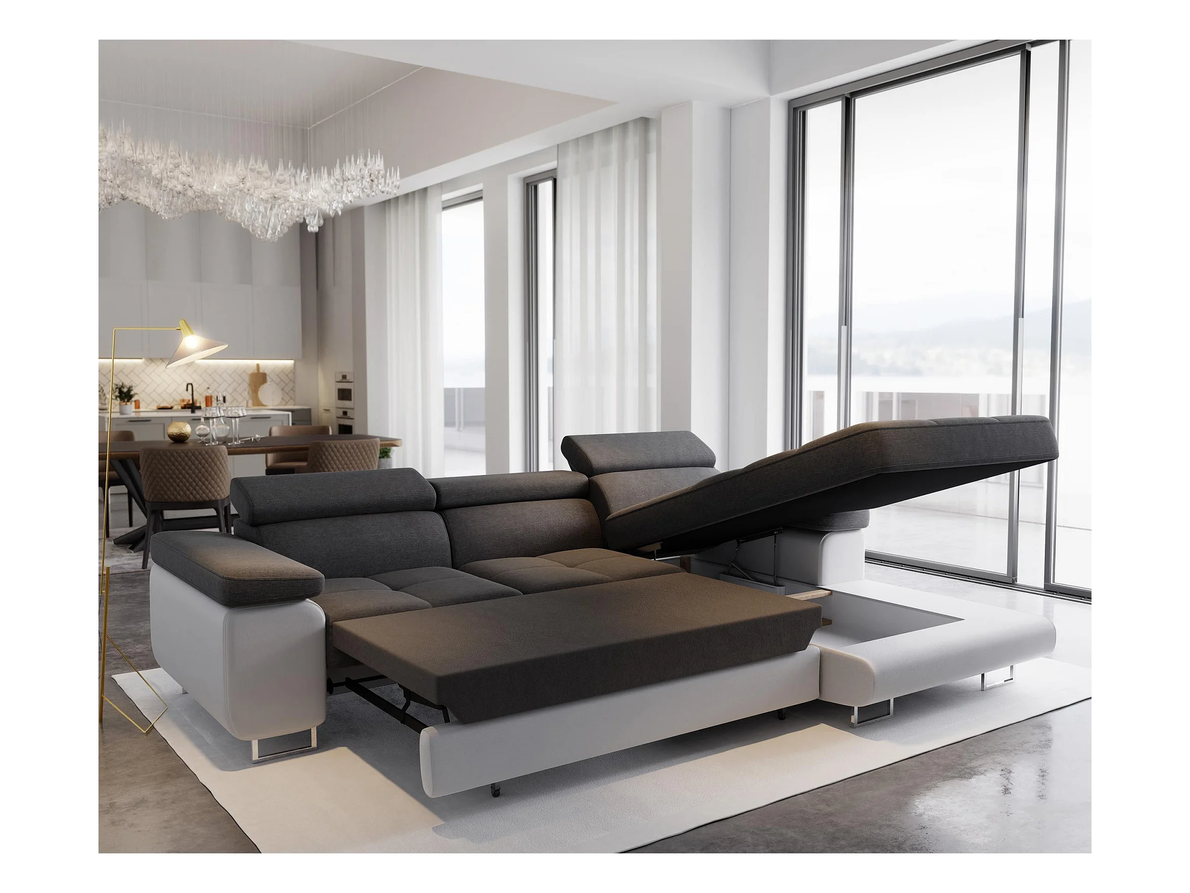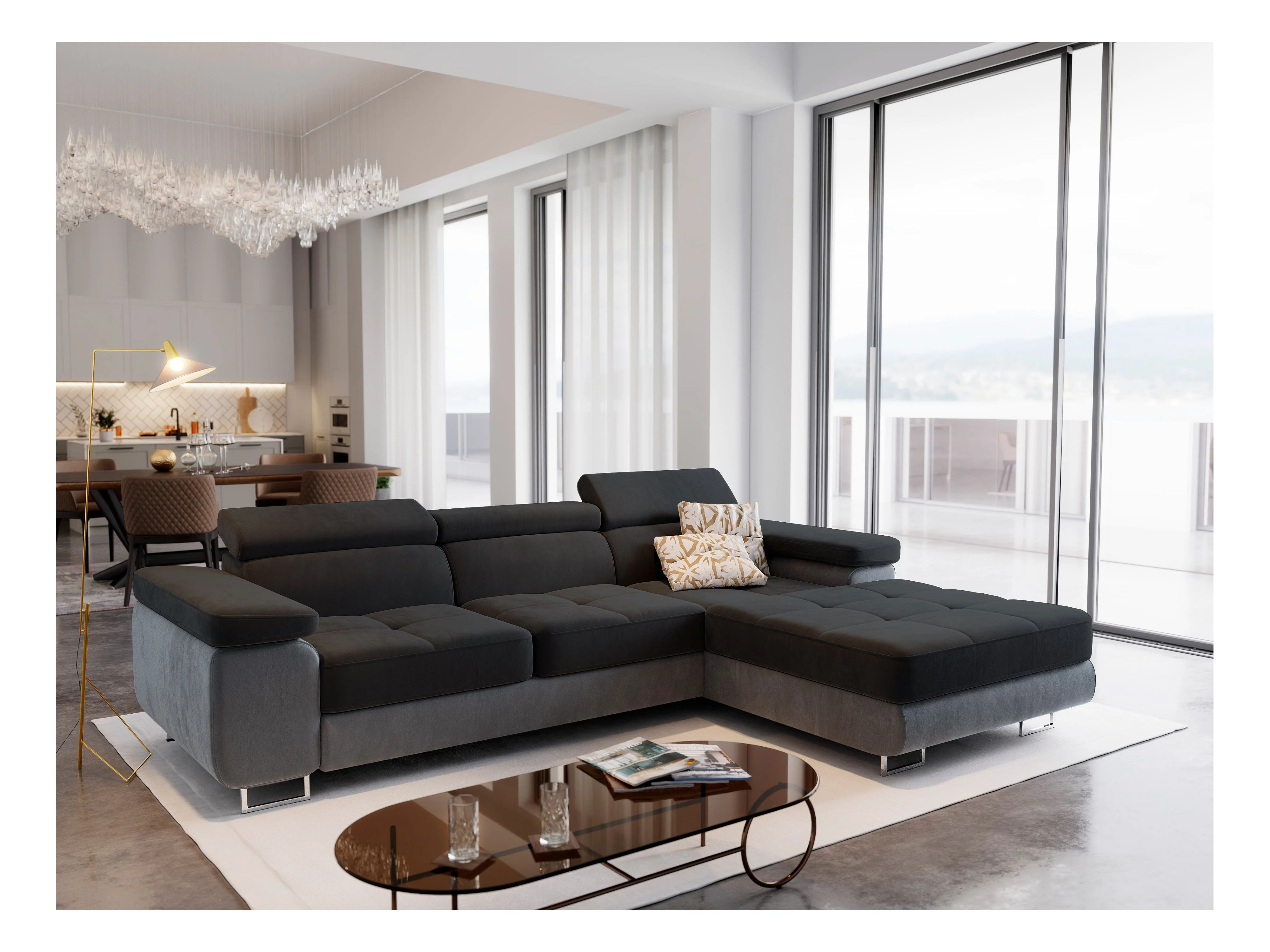 Canapé d'angle ELMA Noir en velours avec fonction de couchage