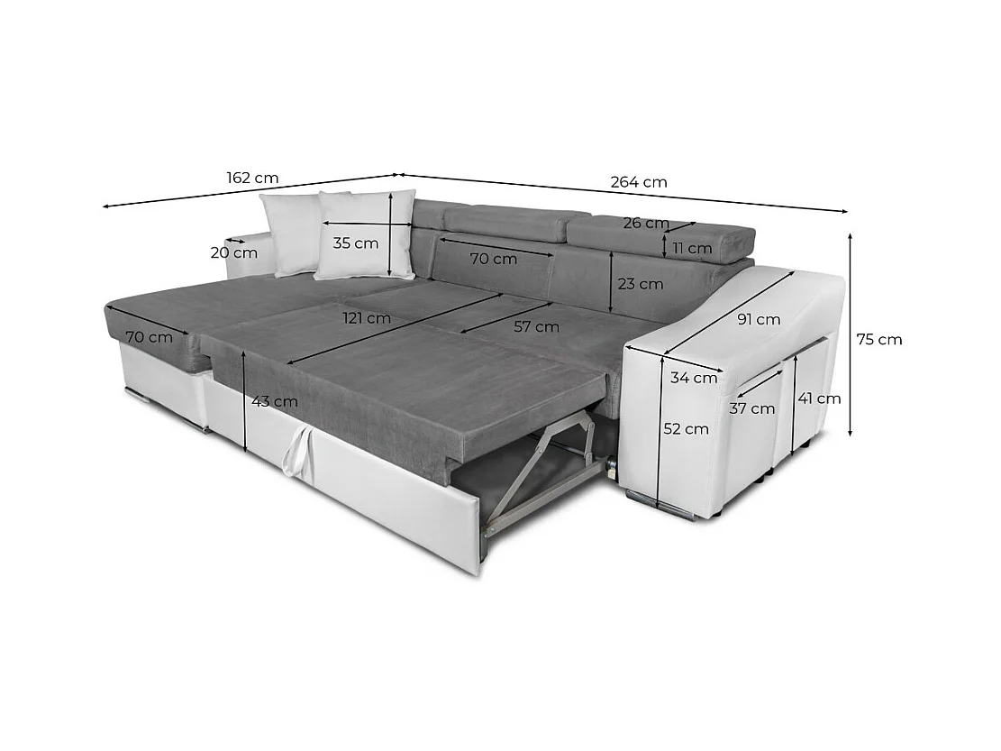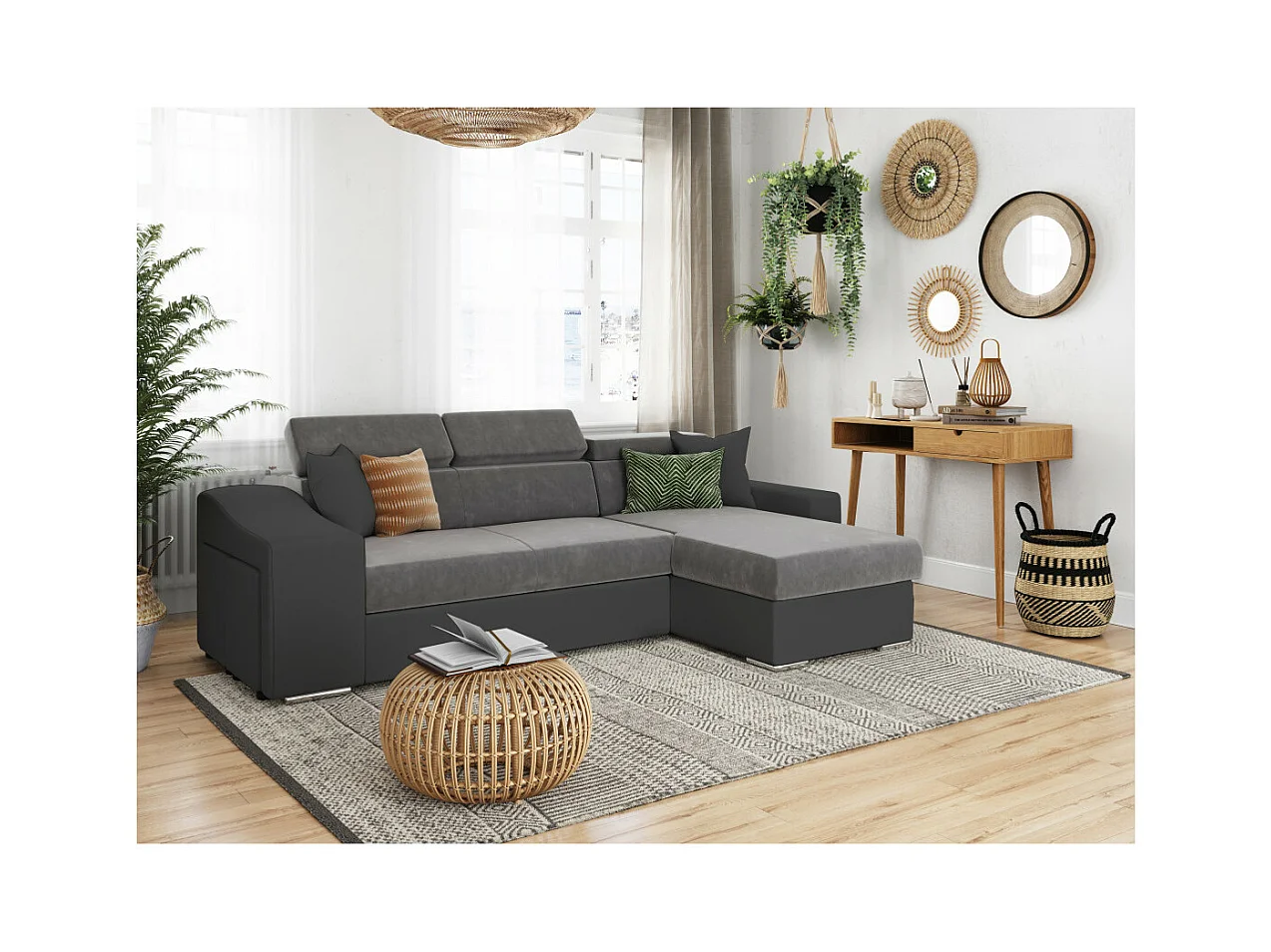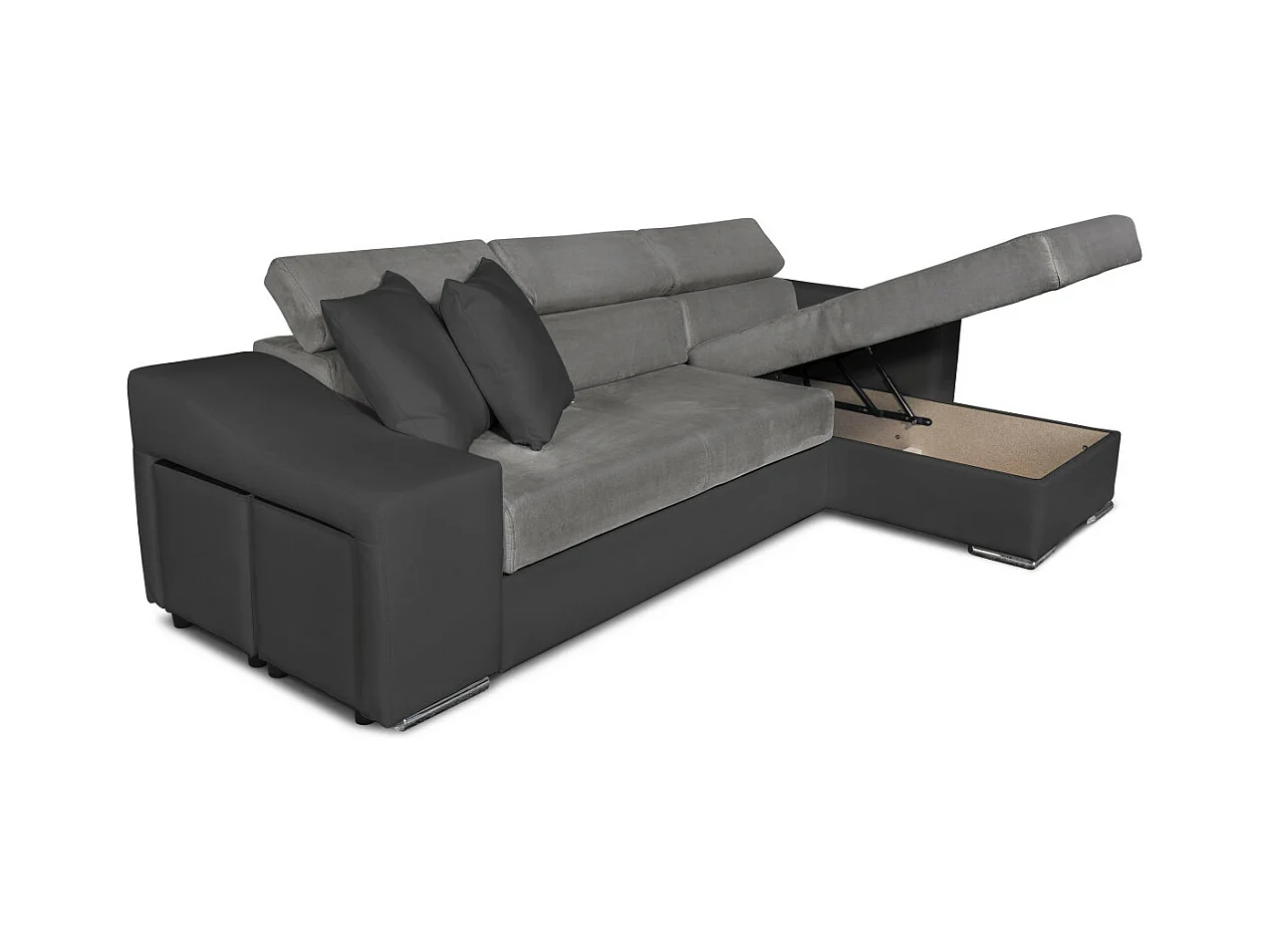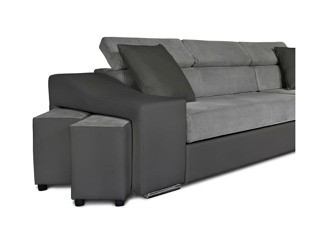 Canapé d'angle Elona convertible bi-matière Gris avec poufs de rangement à gauche - L264 x P162 x H75cm - Loungitude