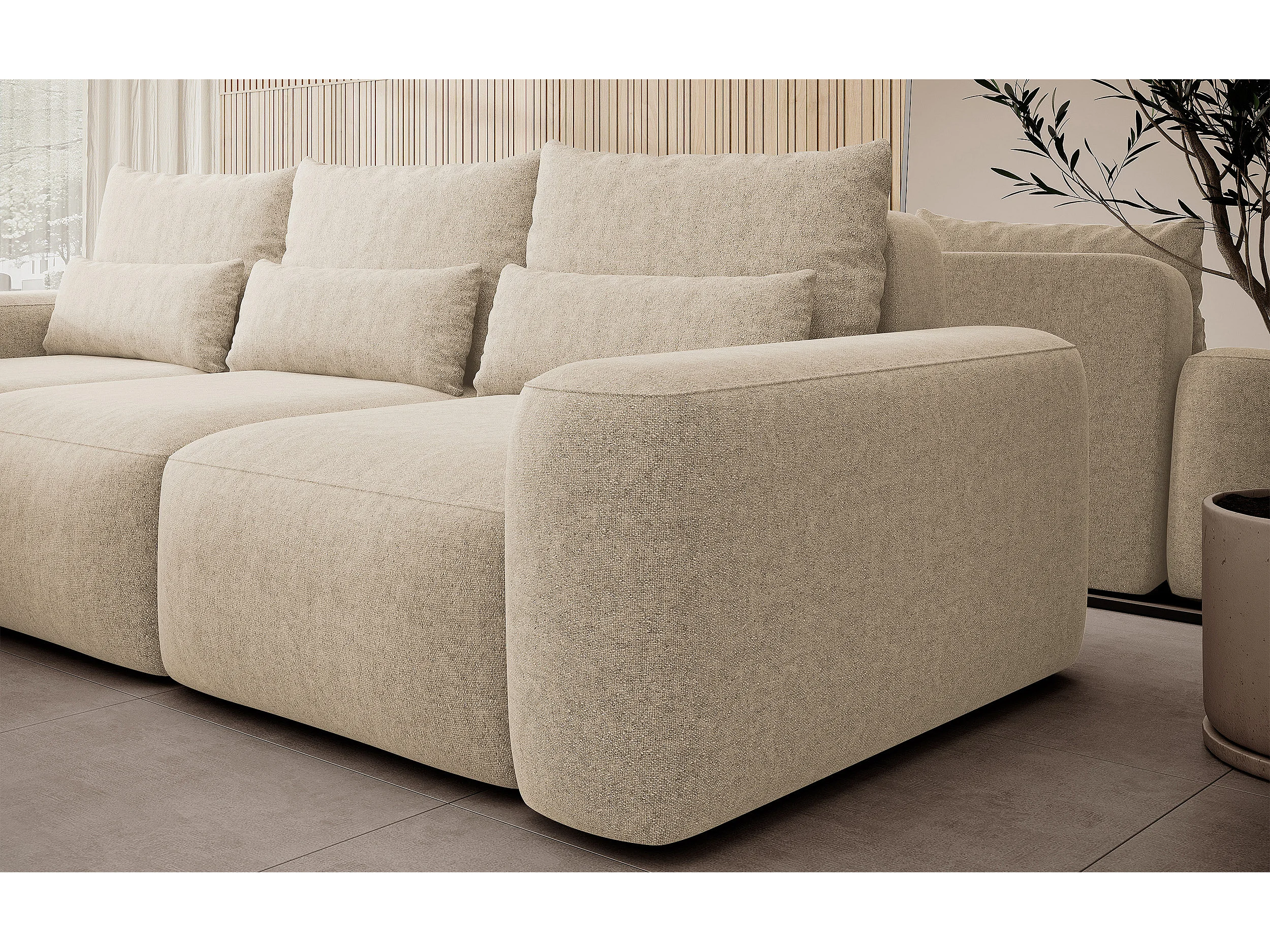 Canapé d’angle en chenille – convertible avec coffre de rangement – beige – angle gauche – CARNOS