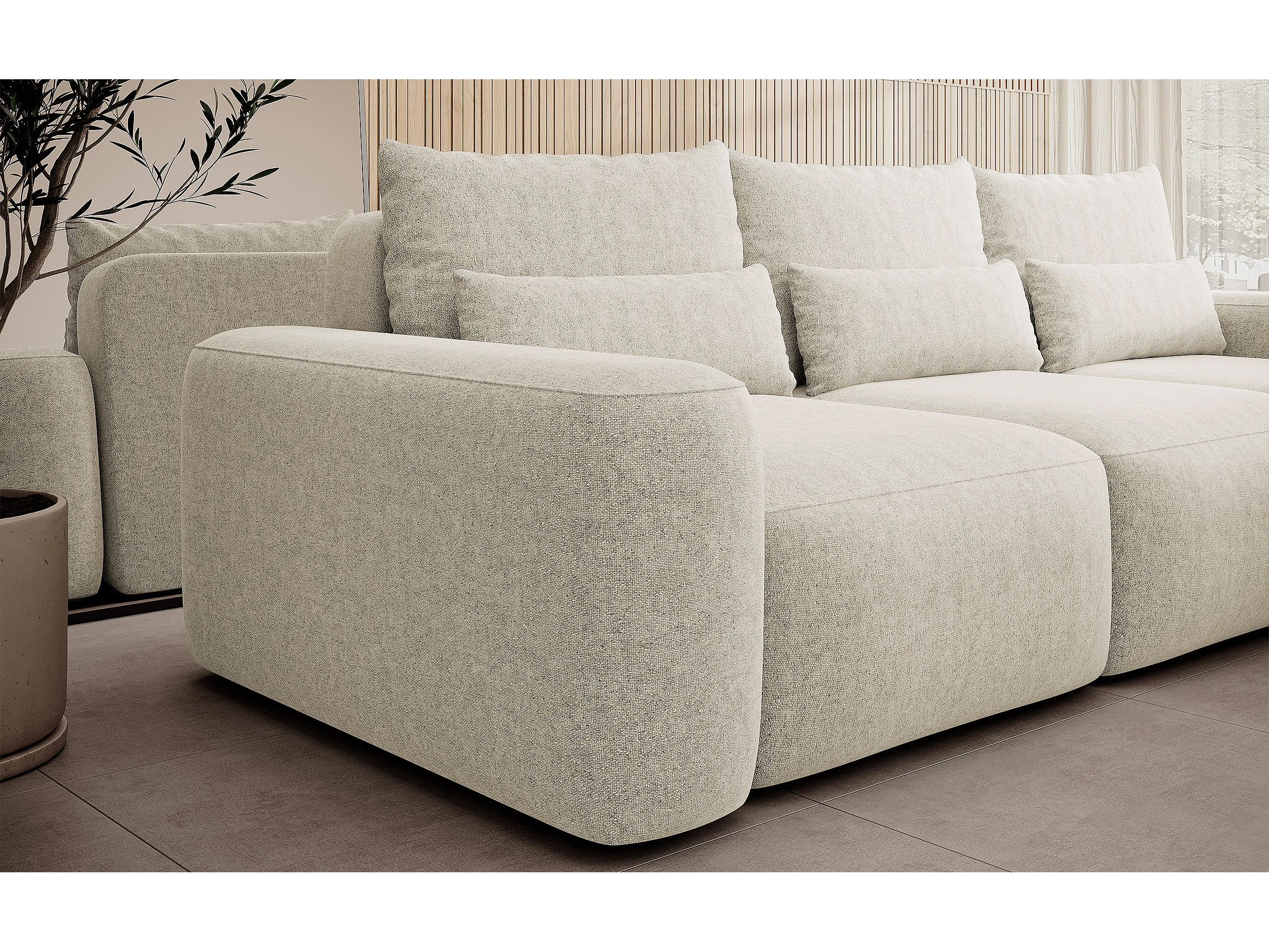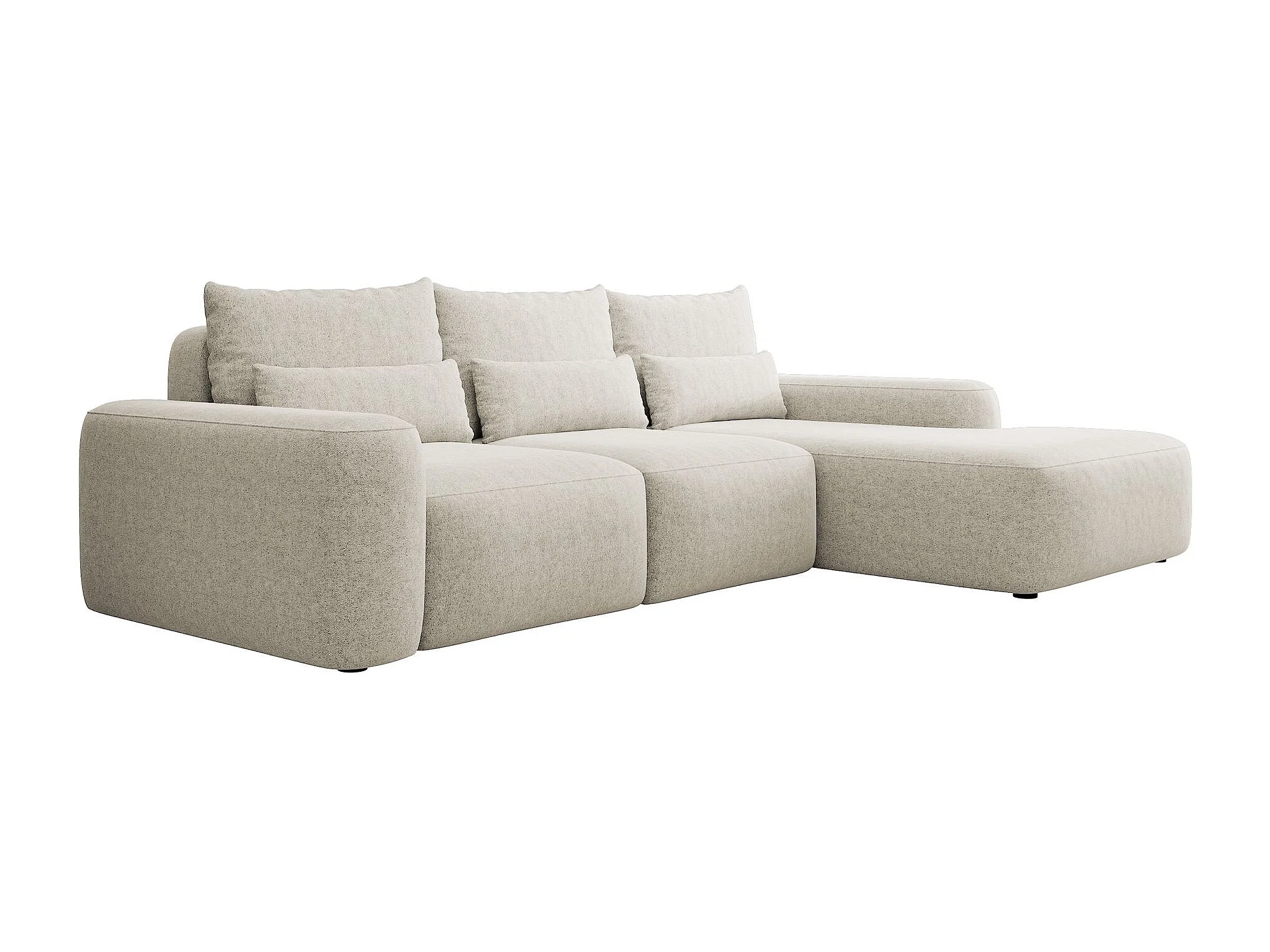Canapé d’angle en chenille – convertible avec coffre de rangement – crème – angle droit – CARNOS