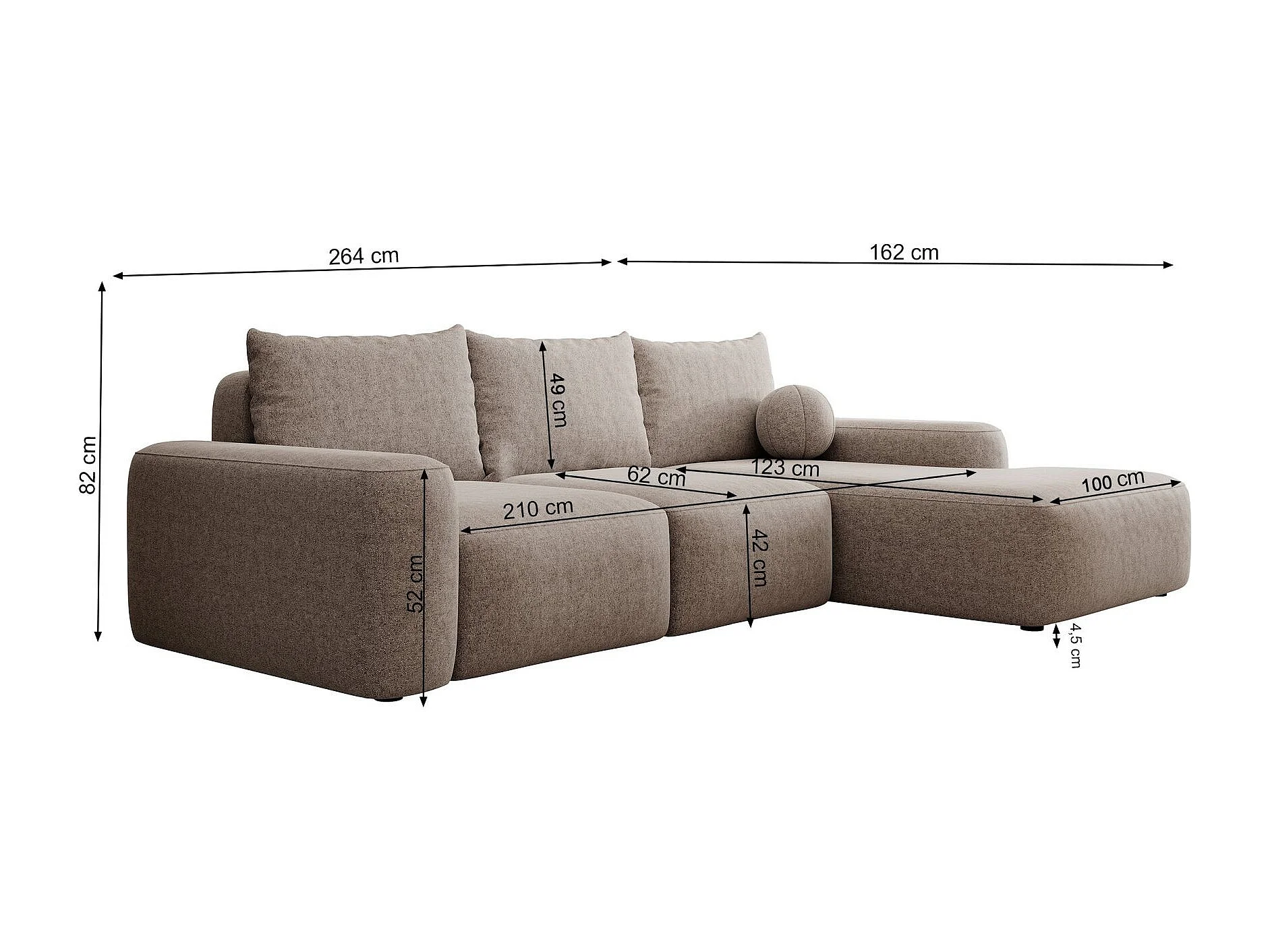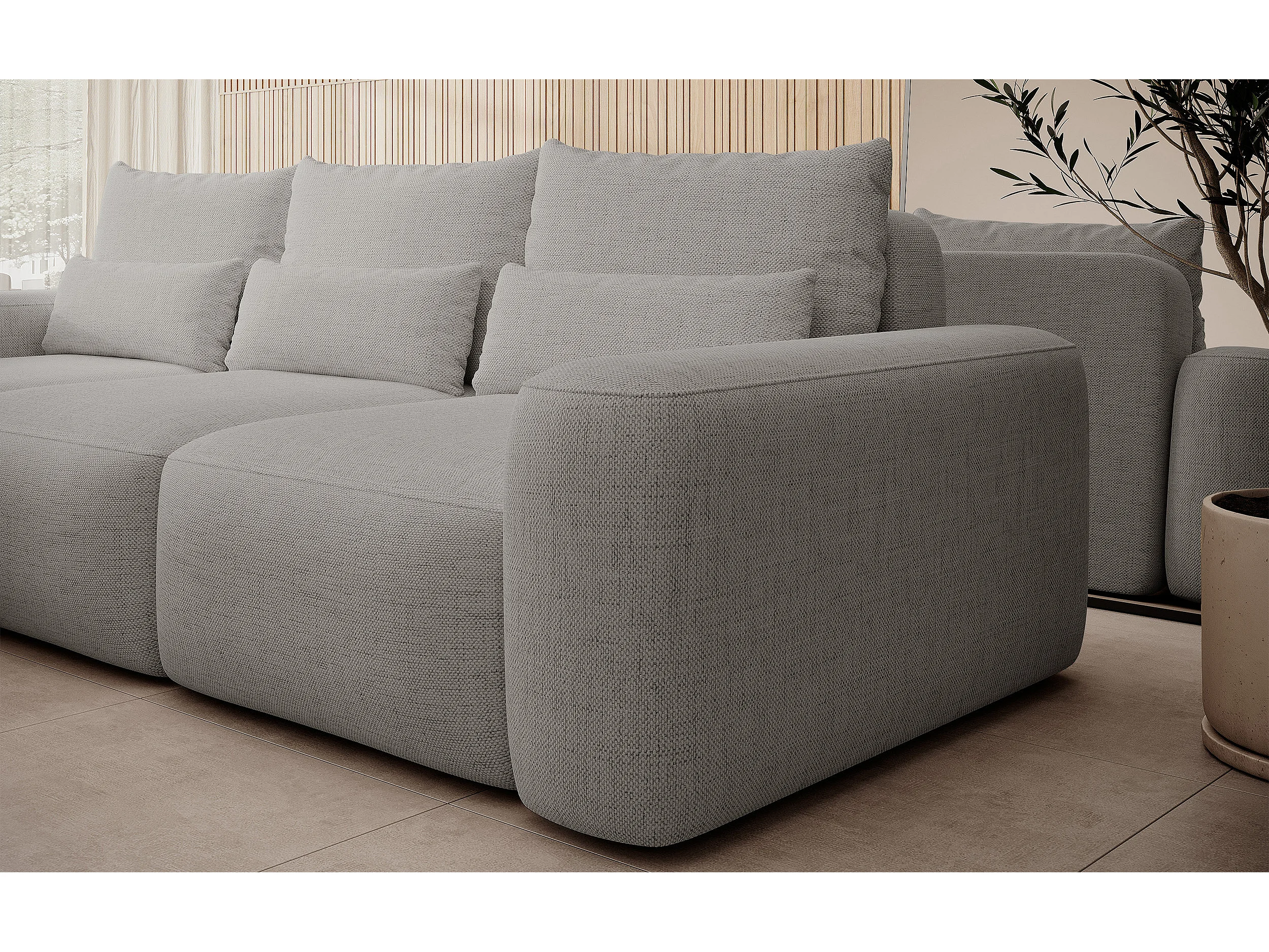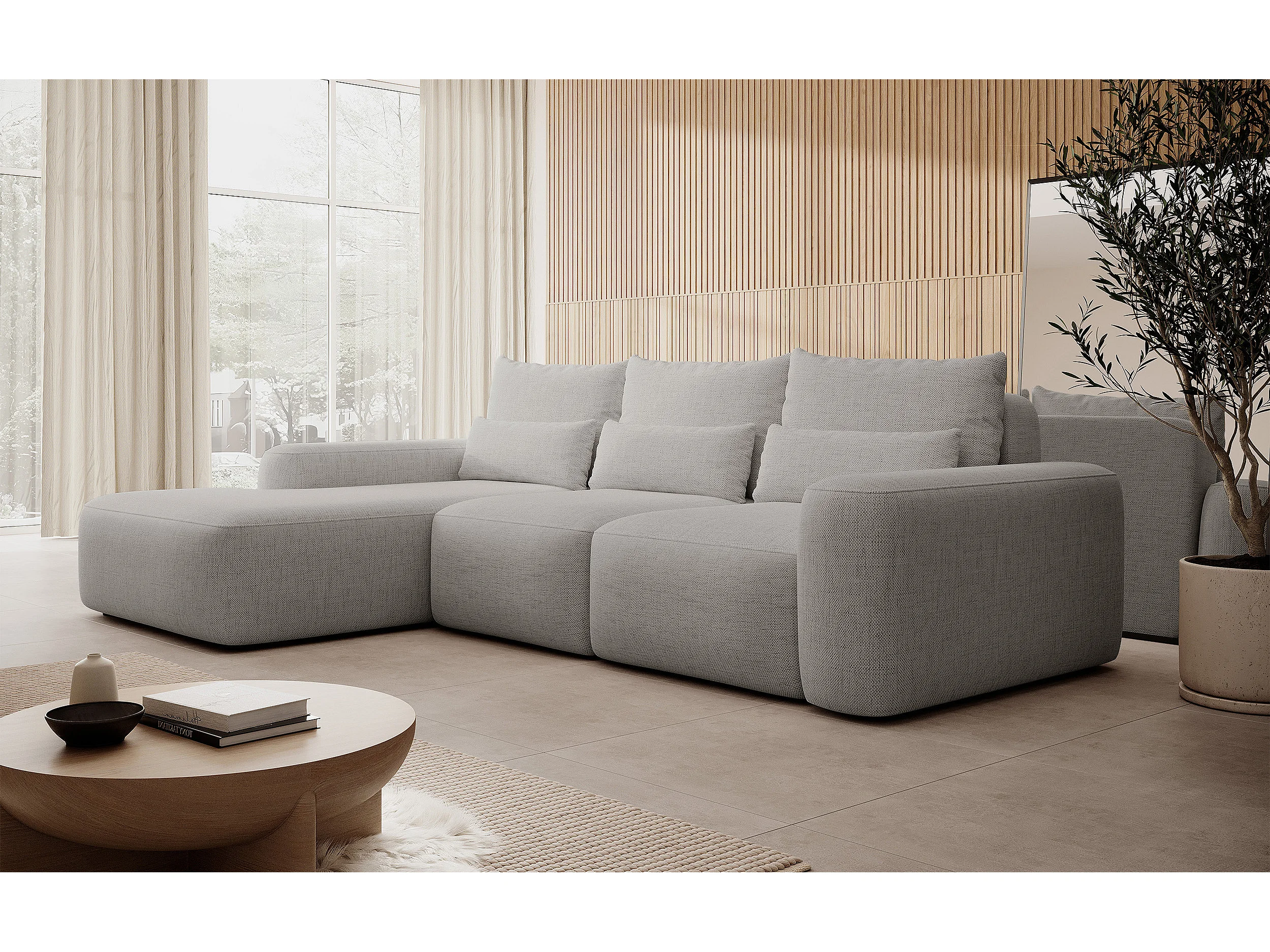 Canapé d’angle en chenille hydrofuge – convertible avec coffre de rangement – gris – angle gauche – CARNOS