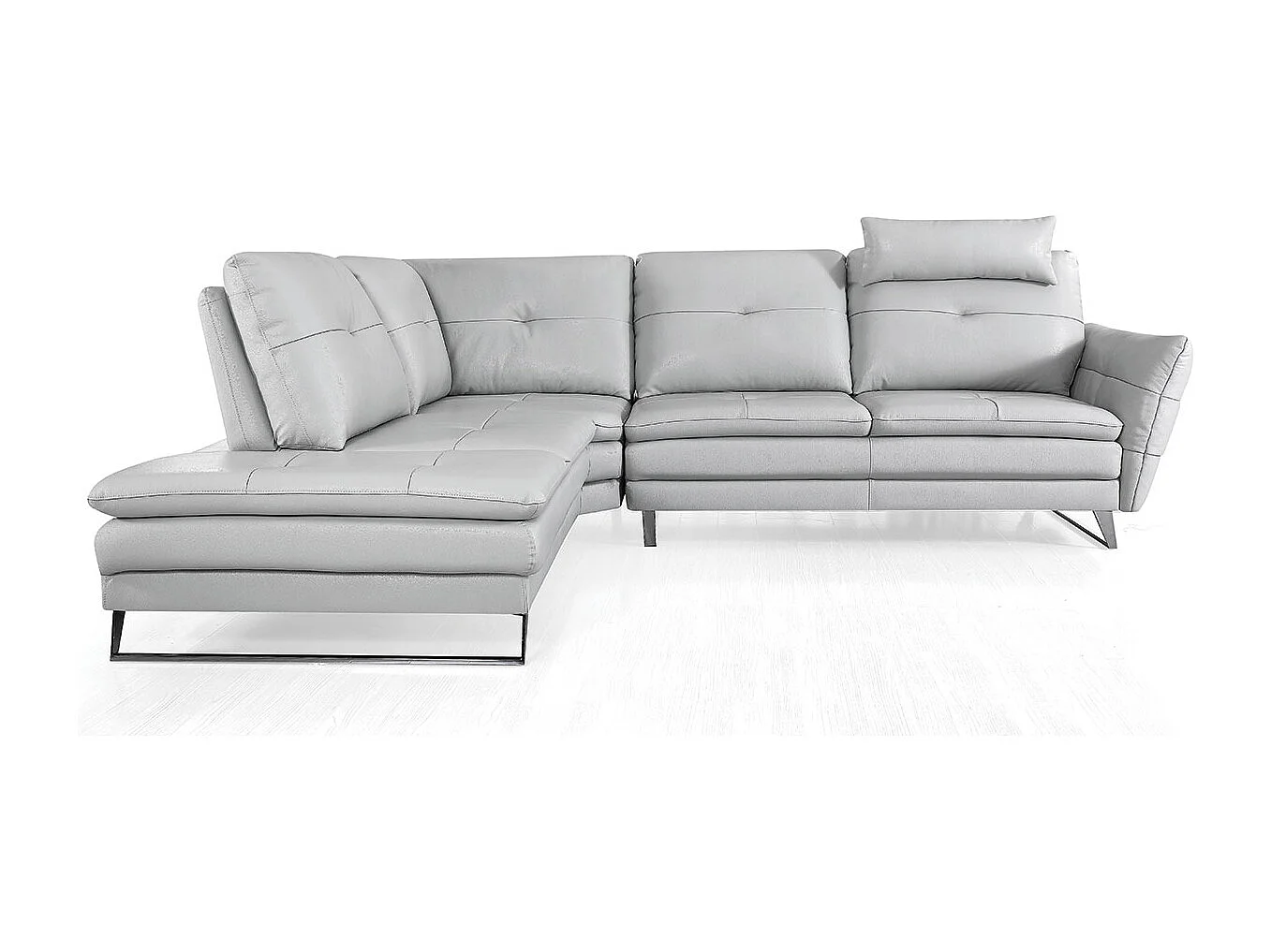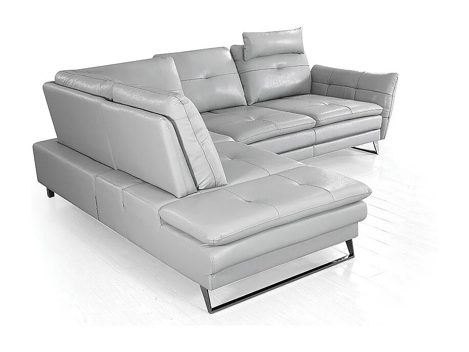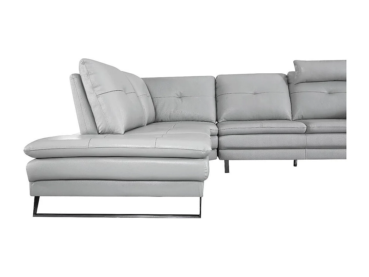 Canapé d'angle en cuir ELENA Gris perle - Angle Gauche
