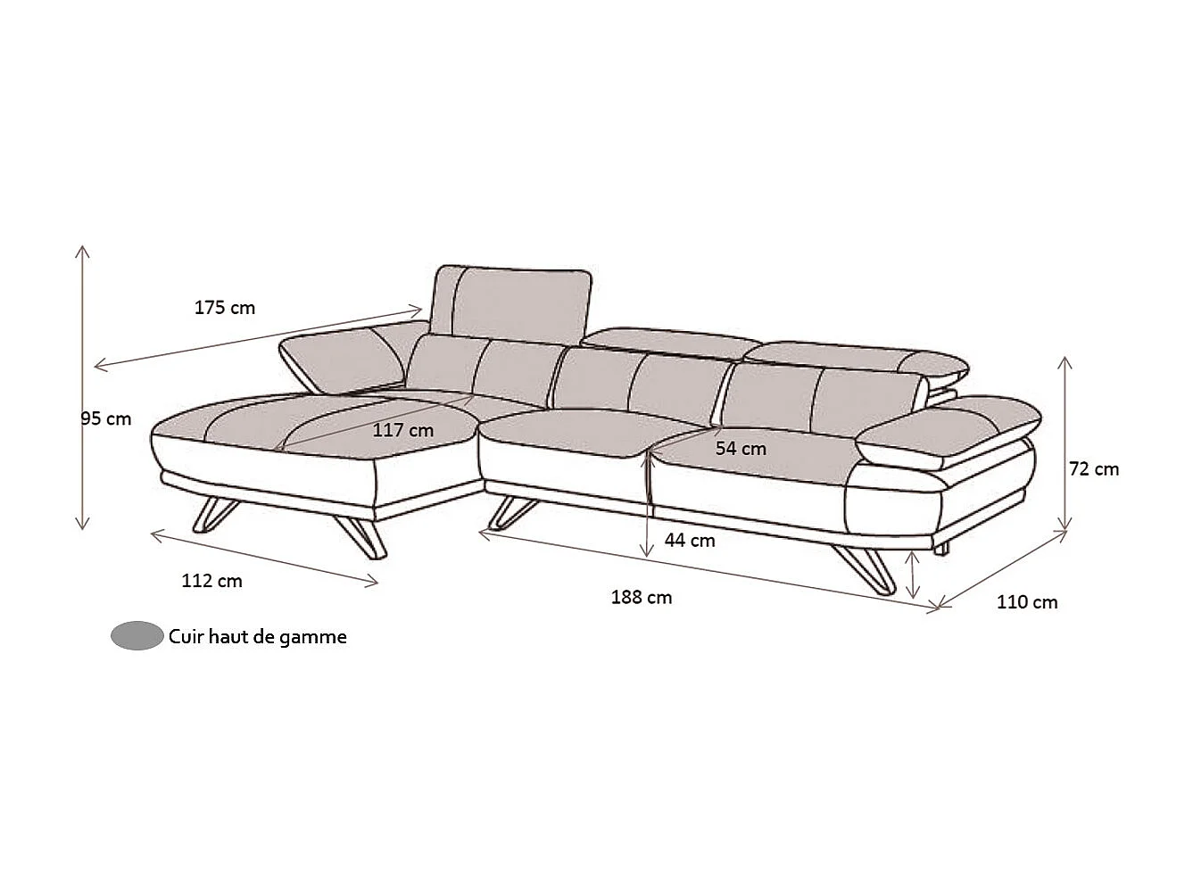 Canapé d'angle en cuir LUKA Noir - Angle Gauche