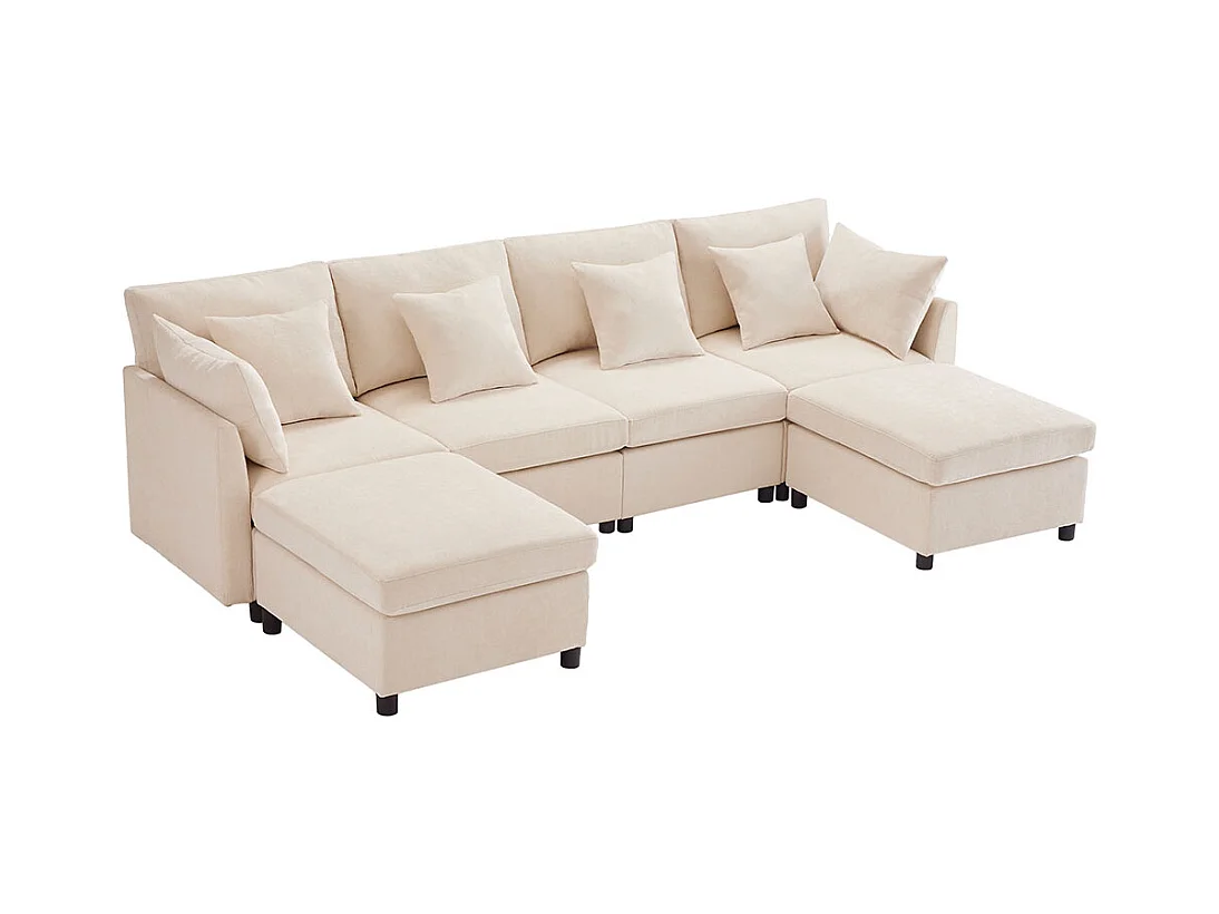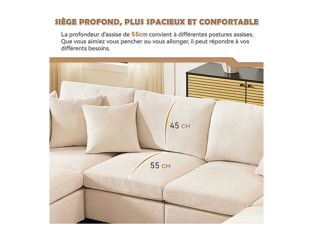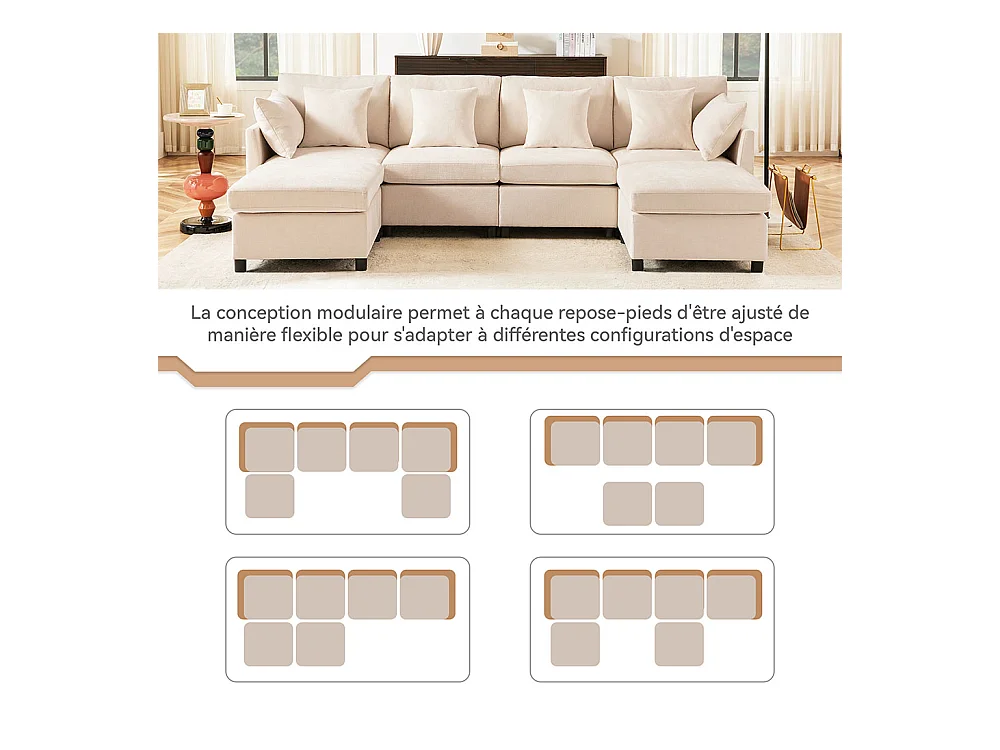 Canape d'angle en tissu chenille avec repose-pieds amovible canapé quatre places canapé d'angle en L canapé en U canapé modulable beige