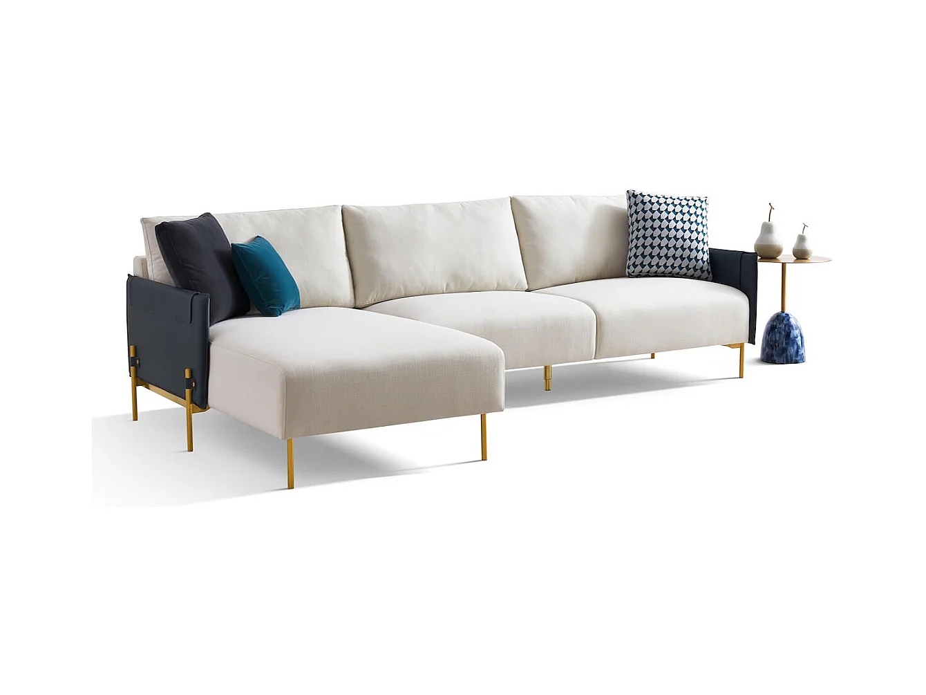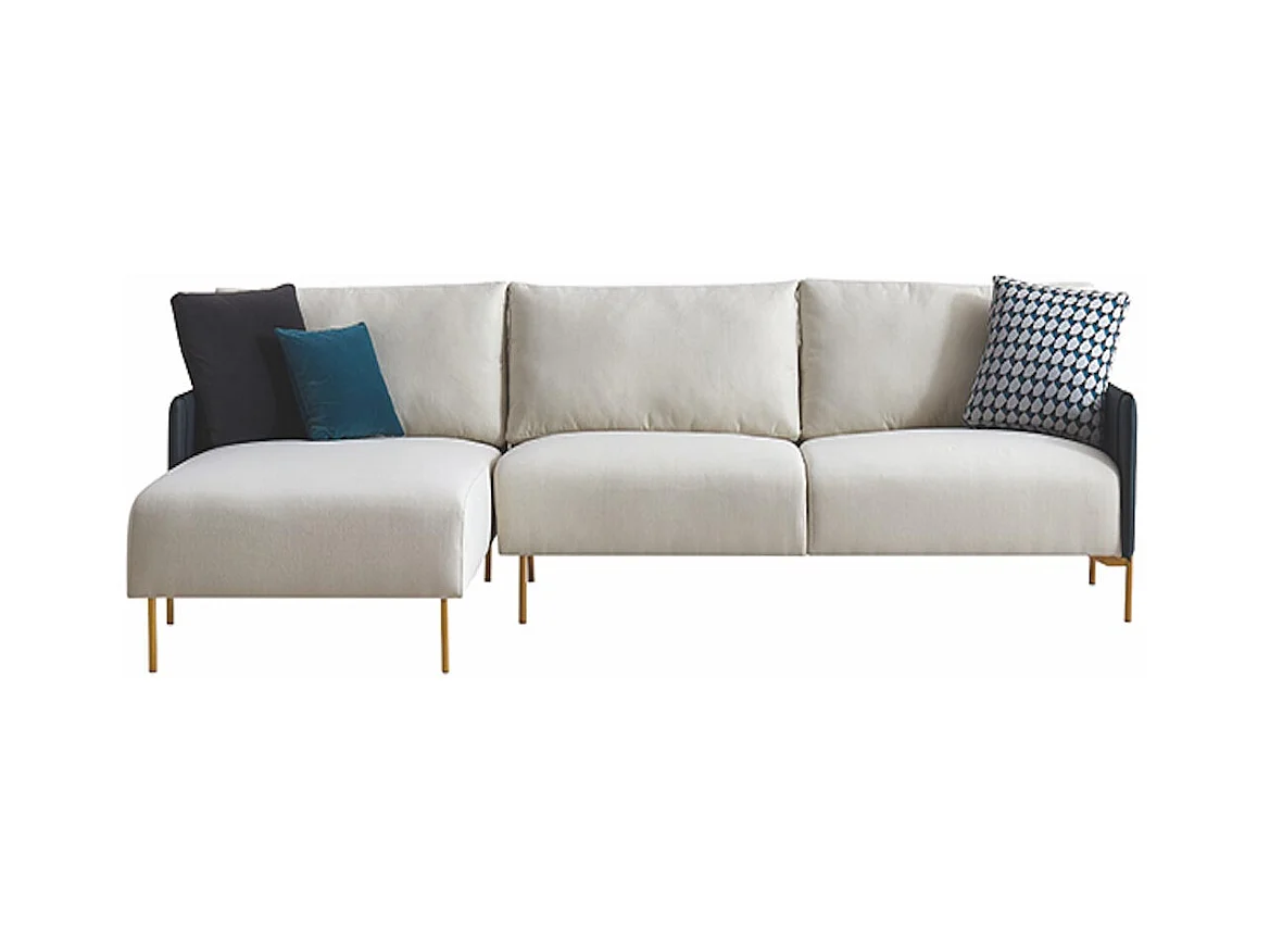 Canapé d'angle en tissu gauche ALAN - Blanc et Gris - Angle Gauche