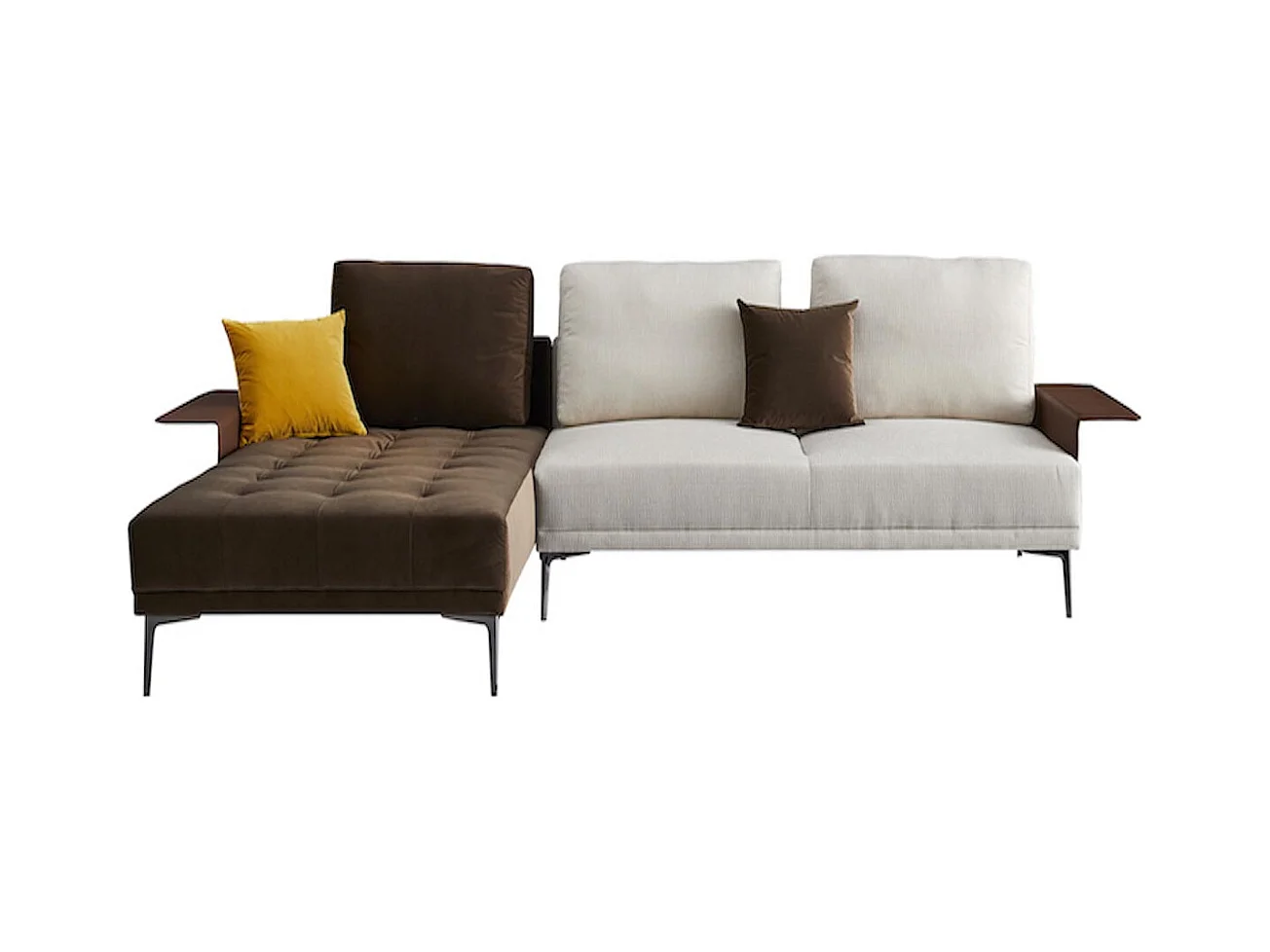 Canapé d'angle en tissu gauche MACAO - Blanc & Marron - Angle Gauche