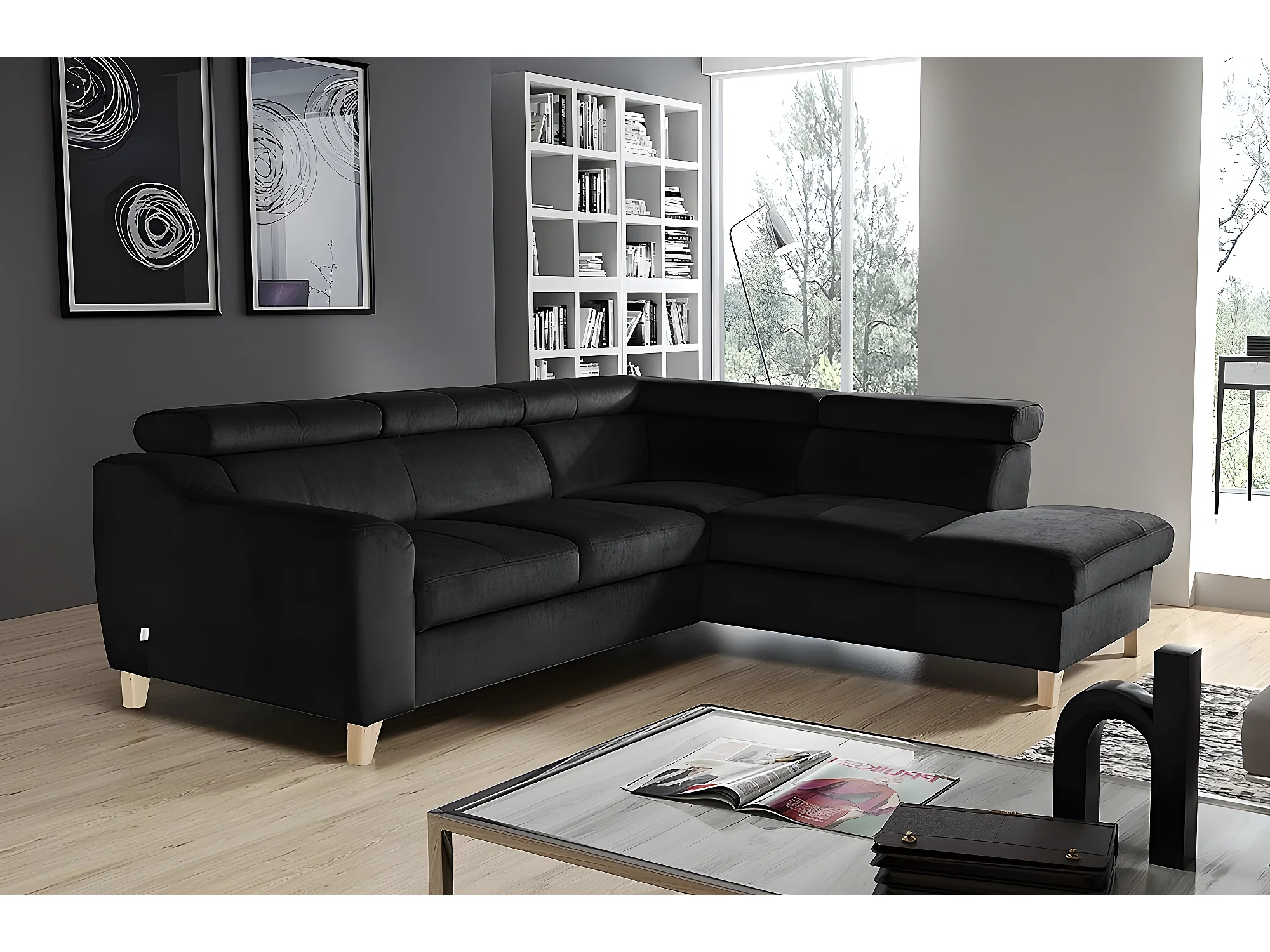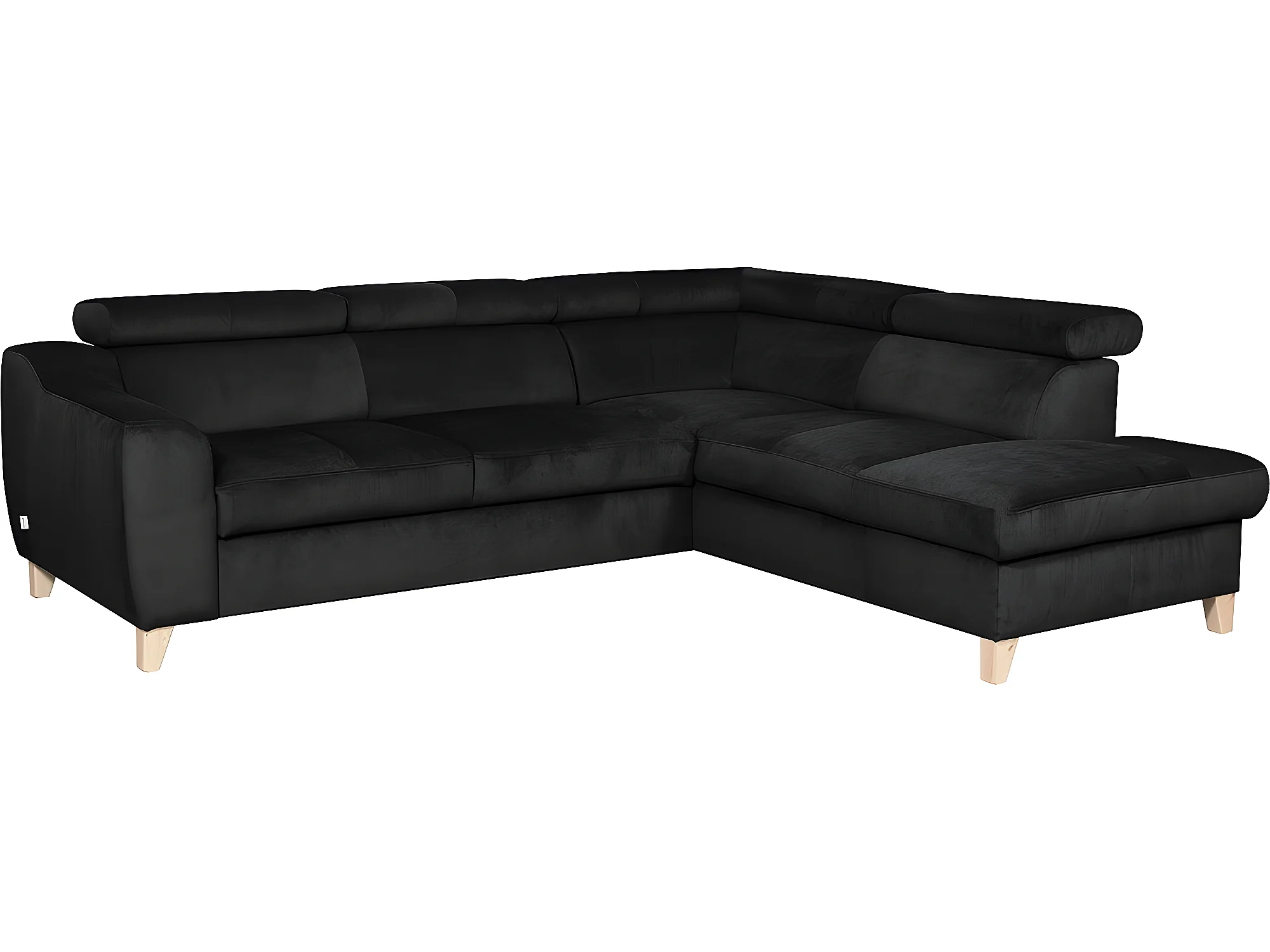 Canapé d'angle en tissu luxe 5 places, ASHLEY, noir, angle droit (vu de face)