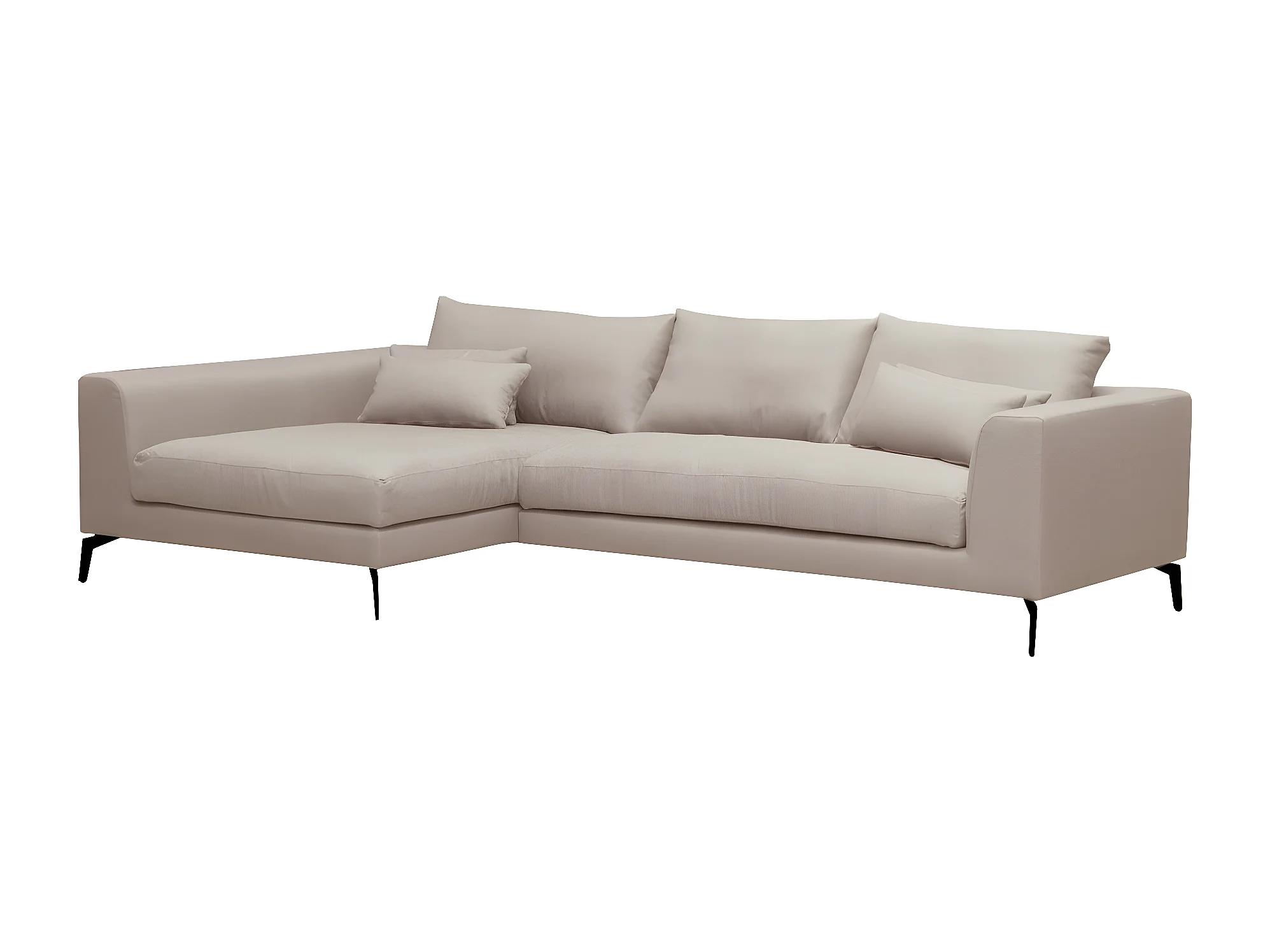 Canapé d'angle en tissu luxe 5 places, BERGAMO, beige, angle gauche (vu de face)