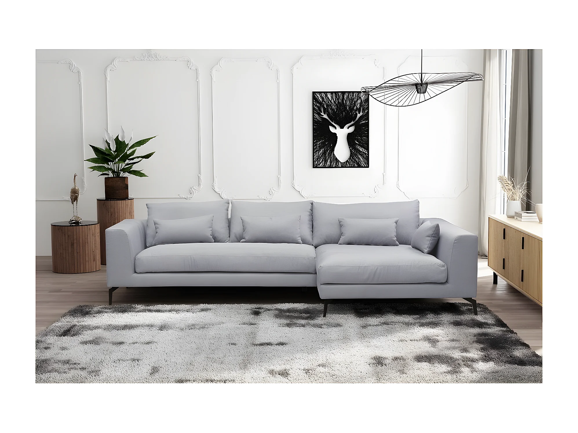 Canapé d'angle en tissu luxe 5 places, BERGAMO, gris, angle droit(vu de face)