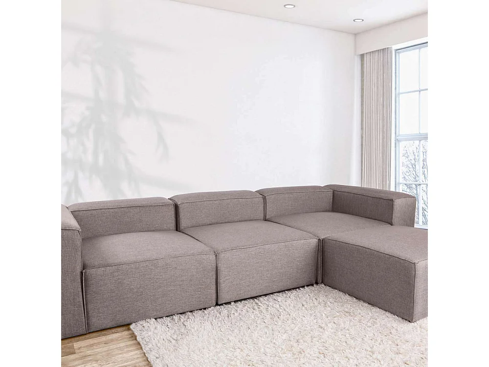 Canapé d'angle à droite Biglo Tissu Marron clair