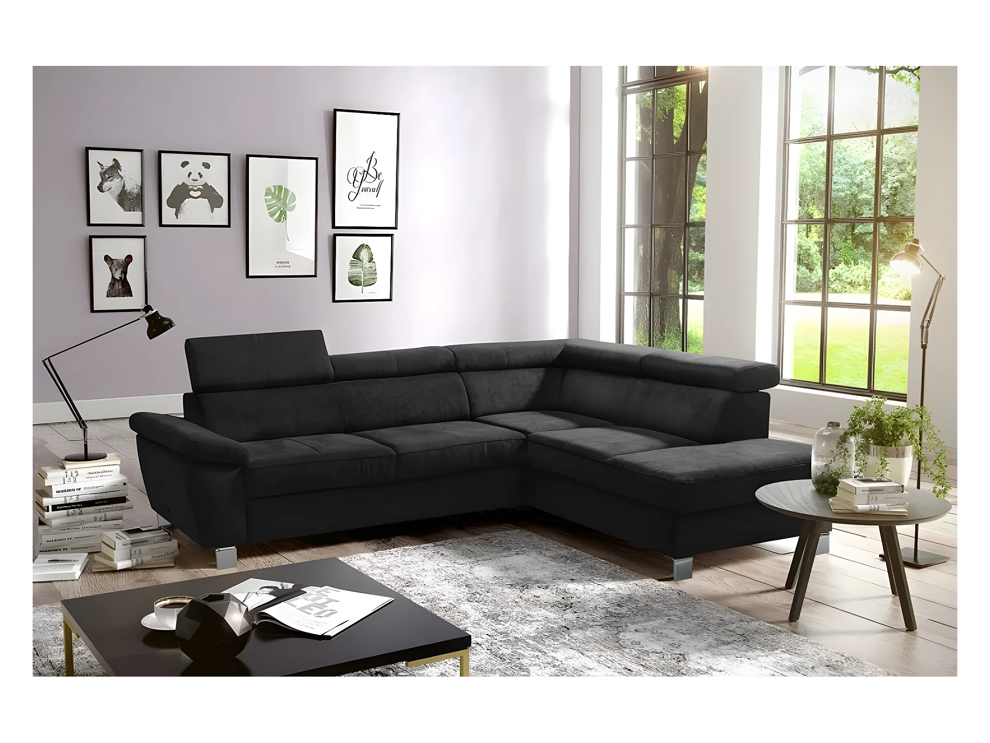 Canapé d'angle en tissu velours luxe 5 places LUGO noir, angle droit