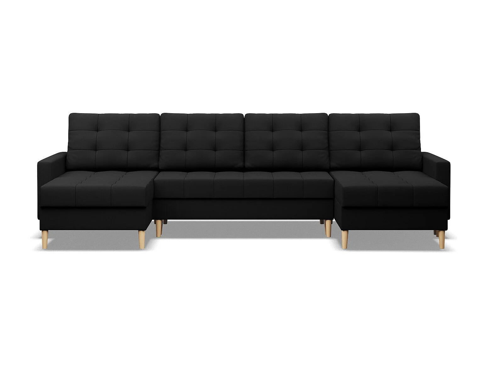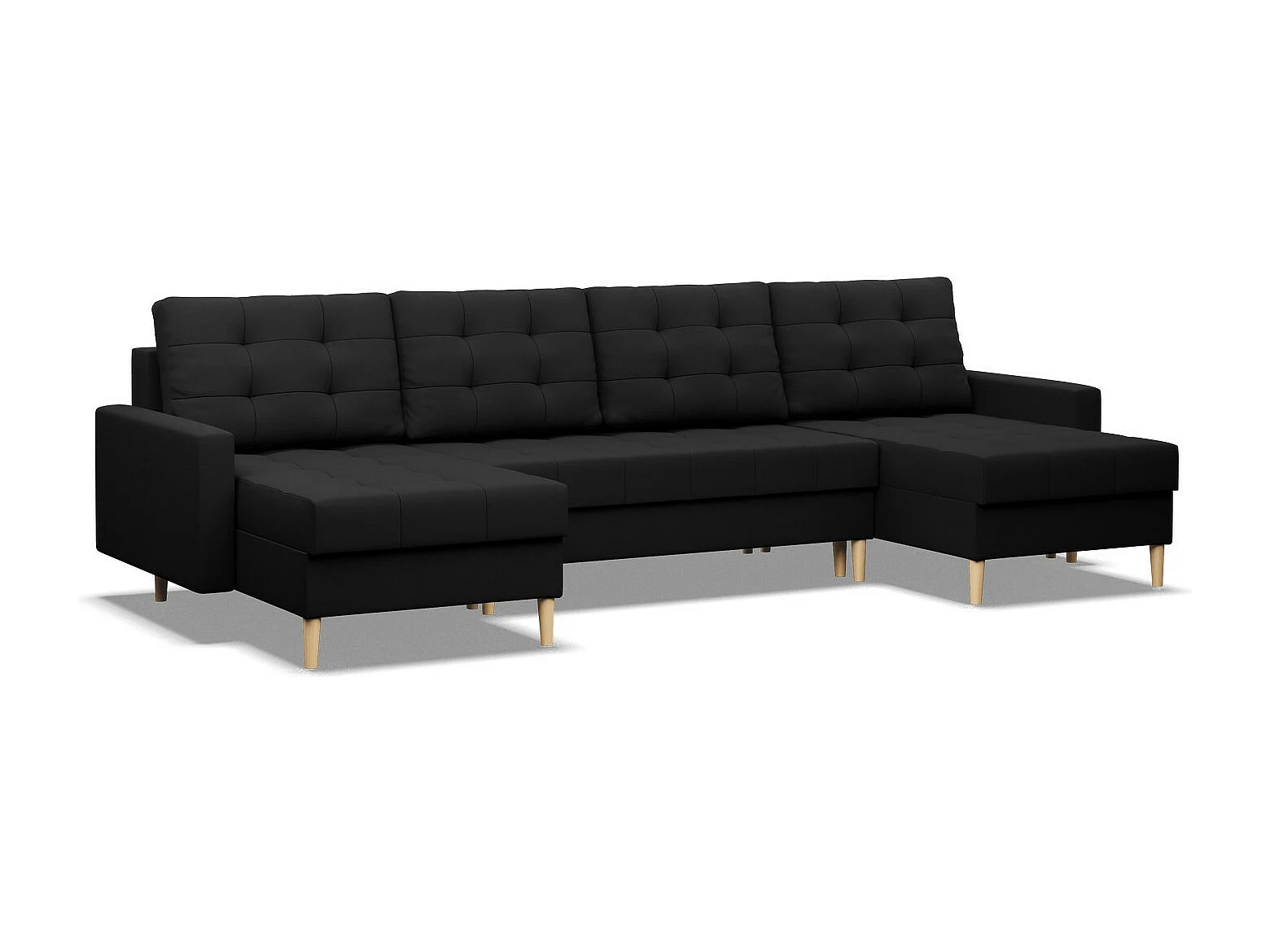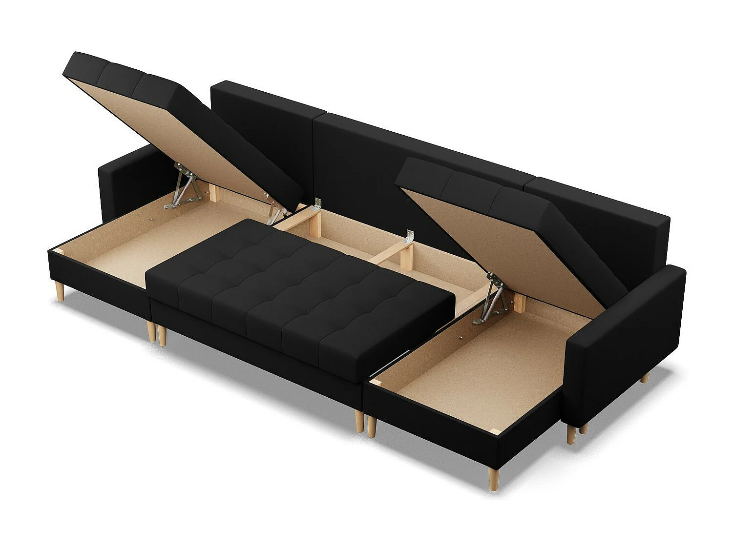 Canapé d'angle en U avec fonction sommeil, 2 méridiennes, Noir