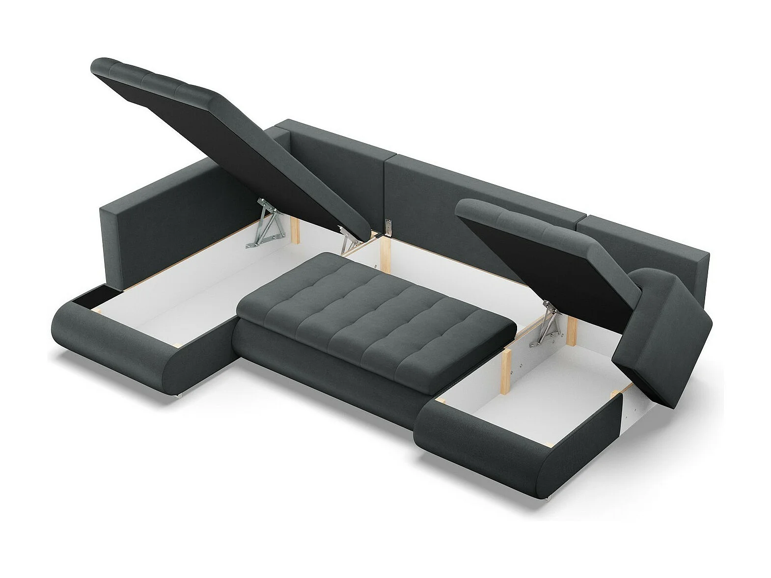 Canapé d'angle en U avec fonction sommeil, Ottoman, Gris foncé