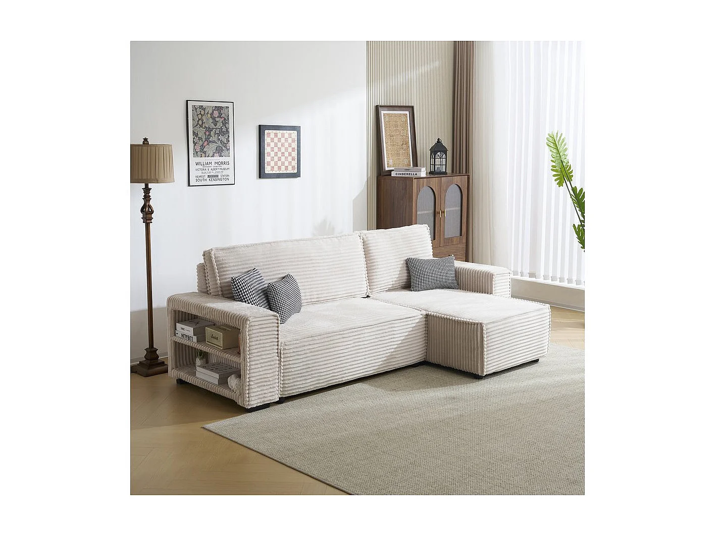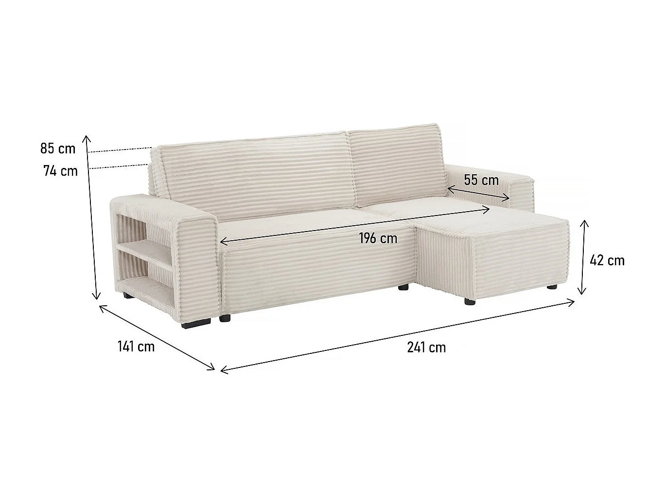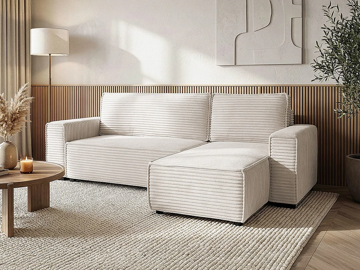 Canapé d'angle en velours côtelé "Opera" - 3 places - Beige
