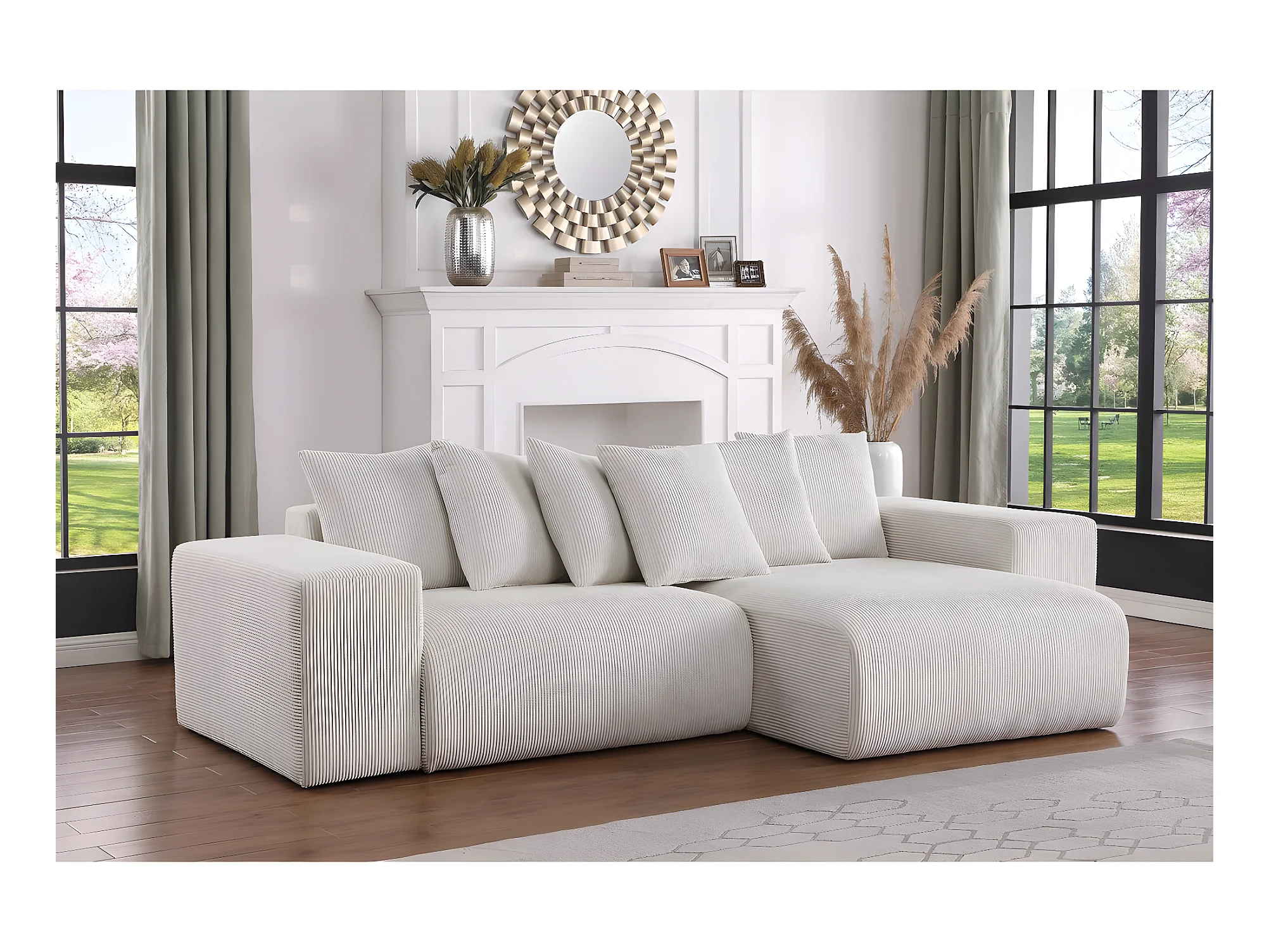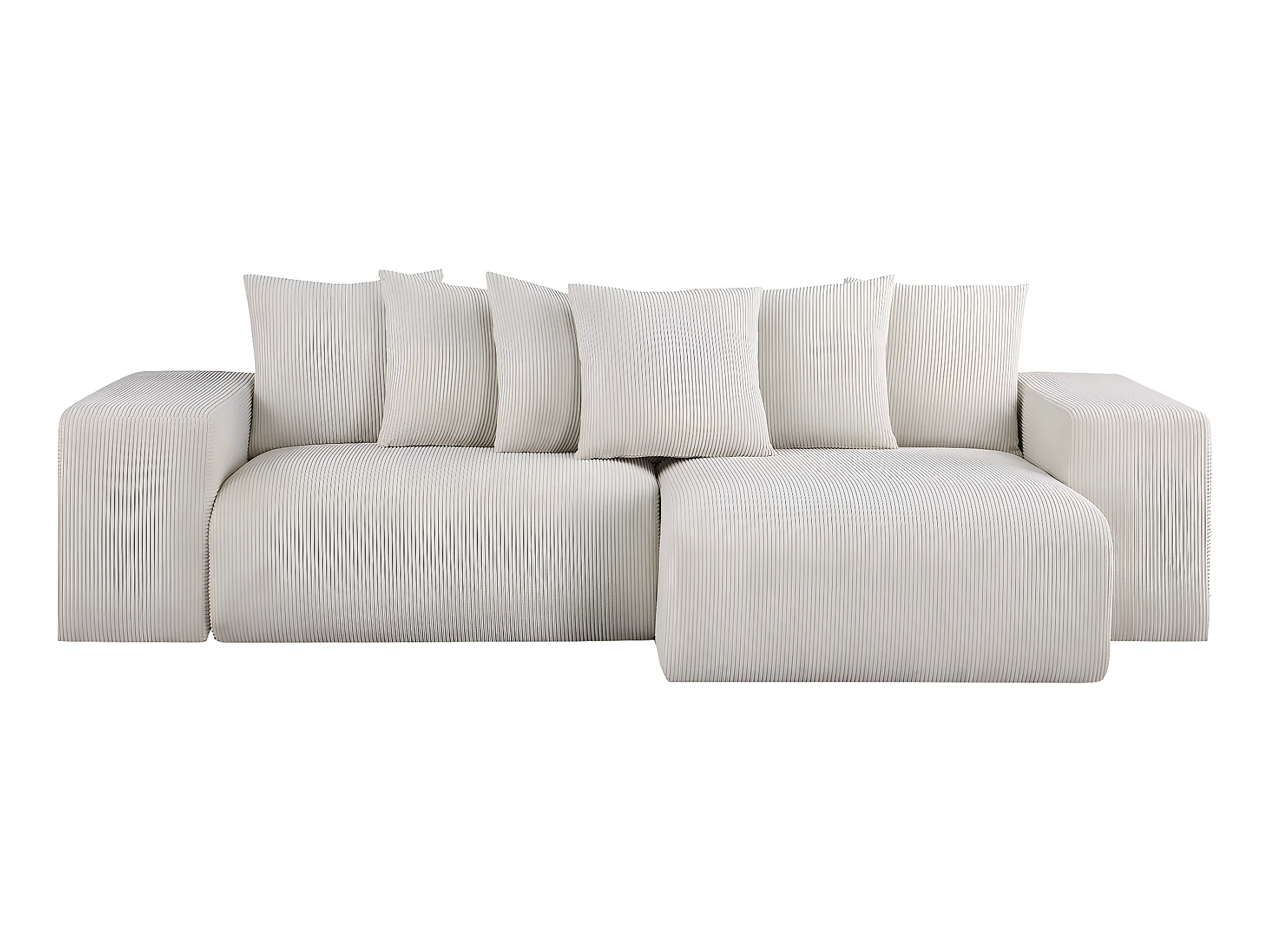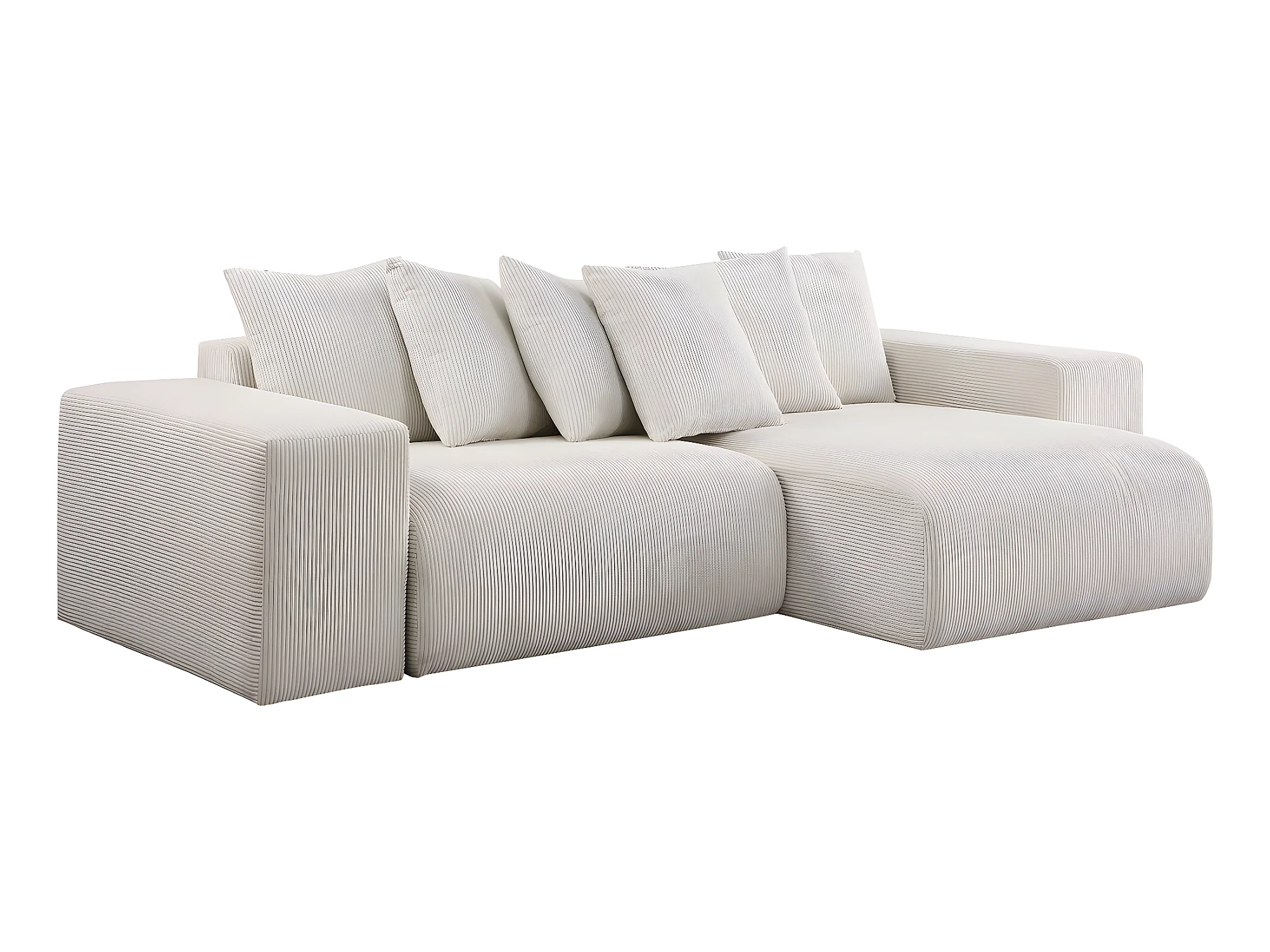 Canapé d'angle en velours côtelé "Rivoli" - 312 x 176 x 49 cm - Beige