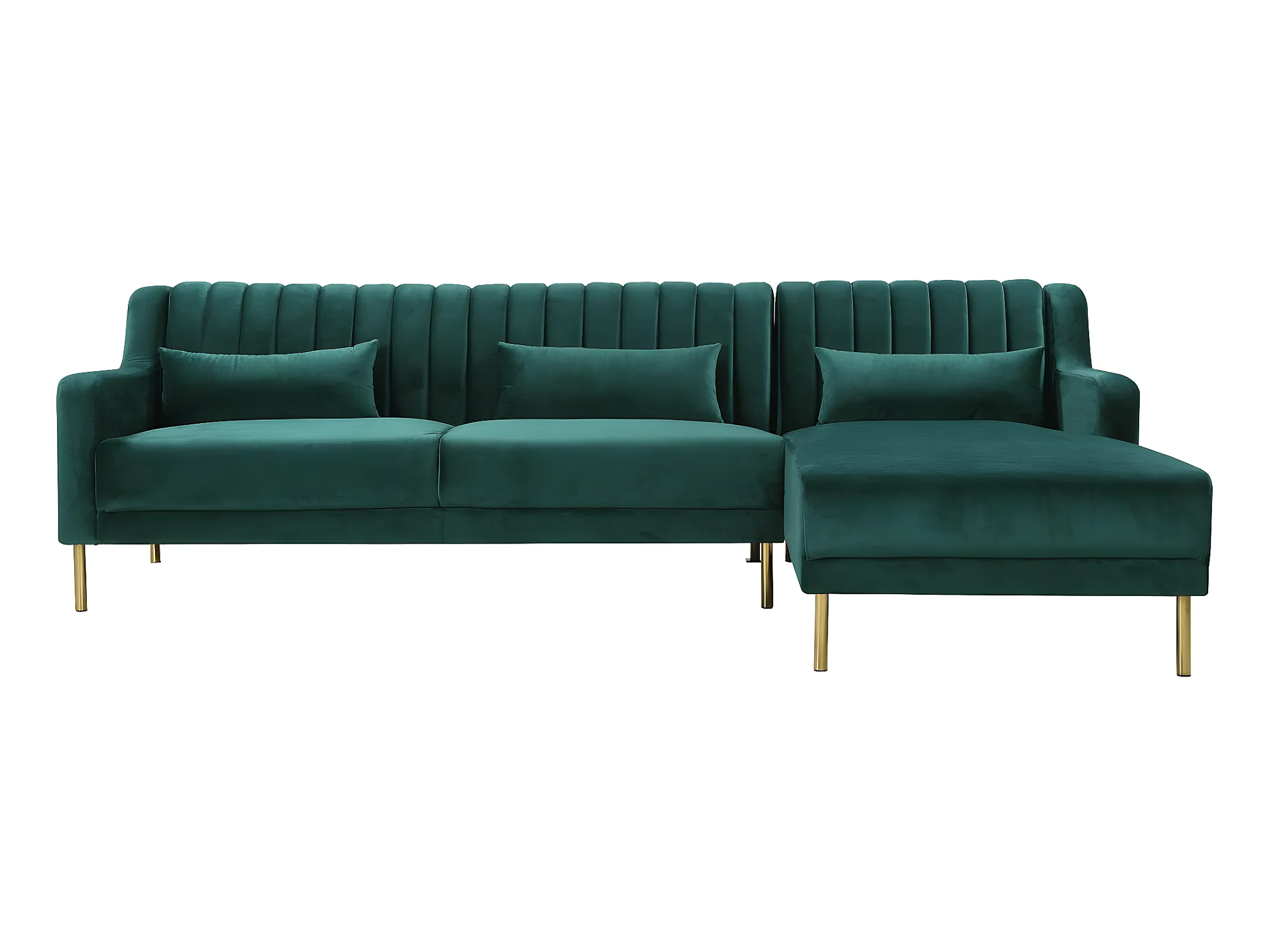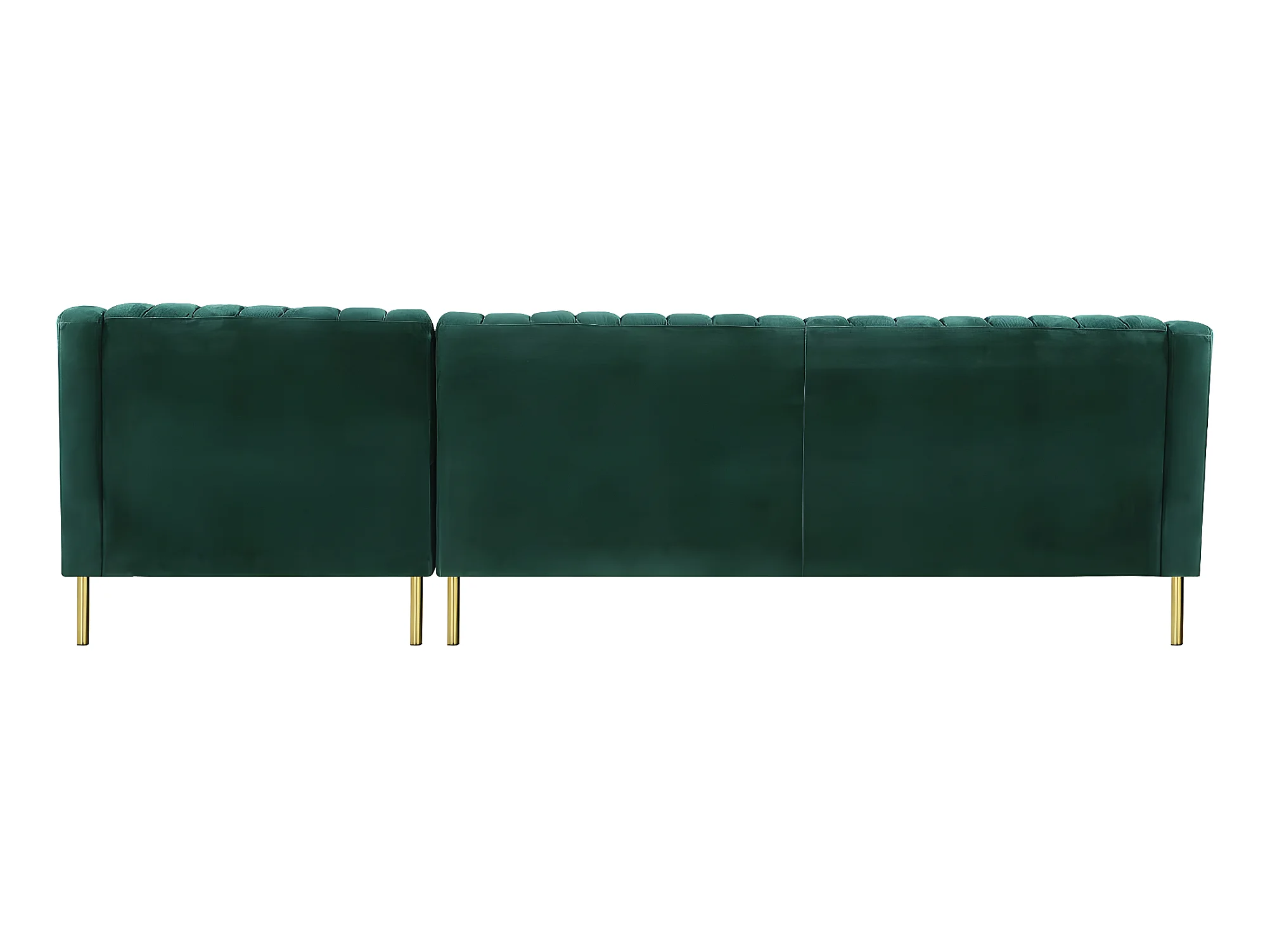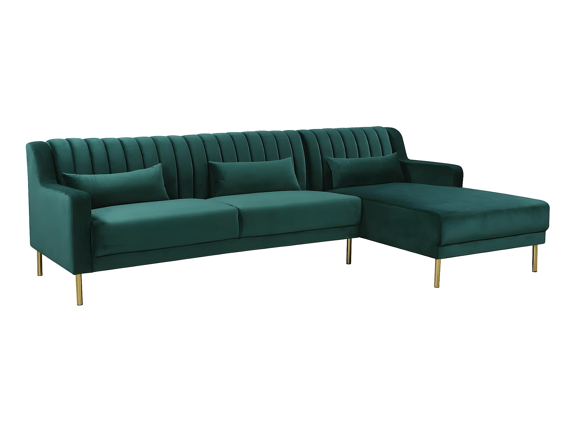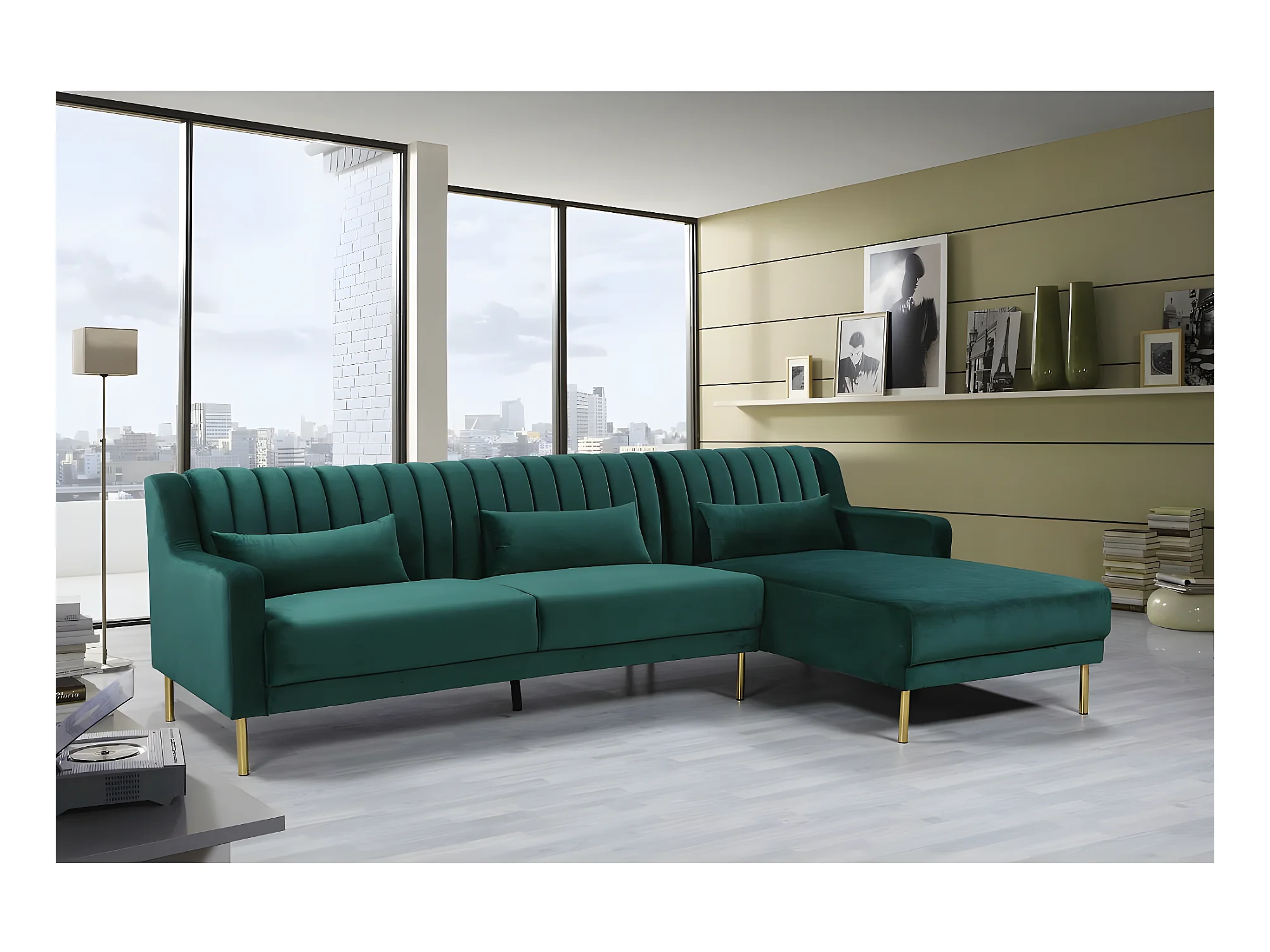 Canapé d'angle en velours "Oliver" - 275 x 161 x 81 cm - 5 places - Vert - Angle droit