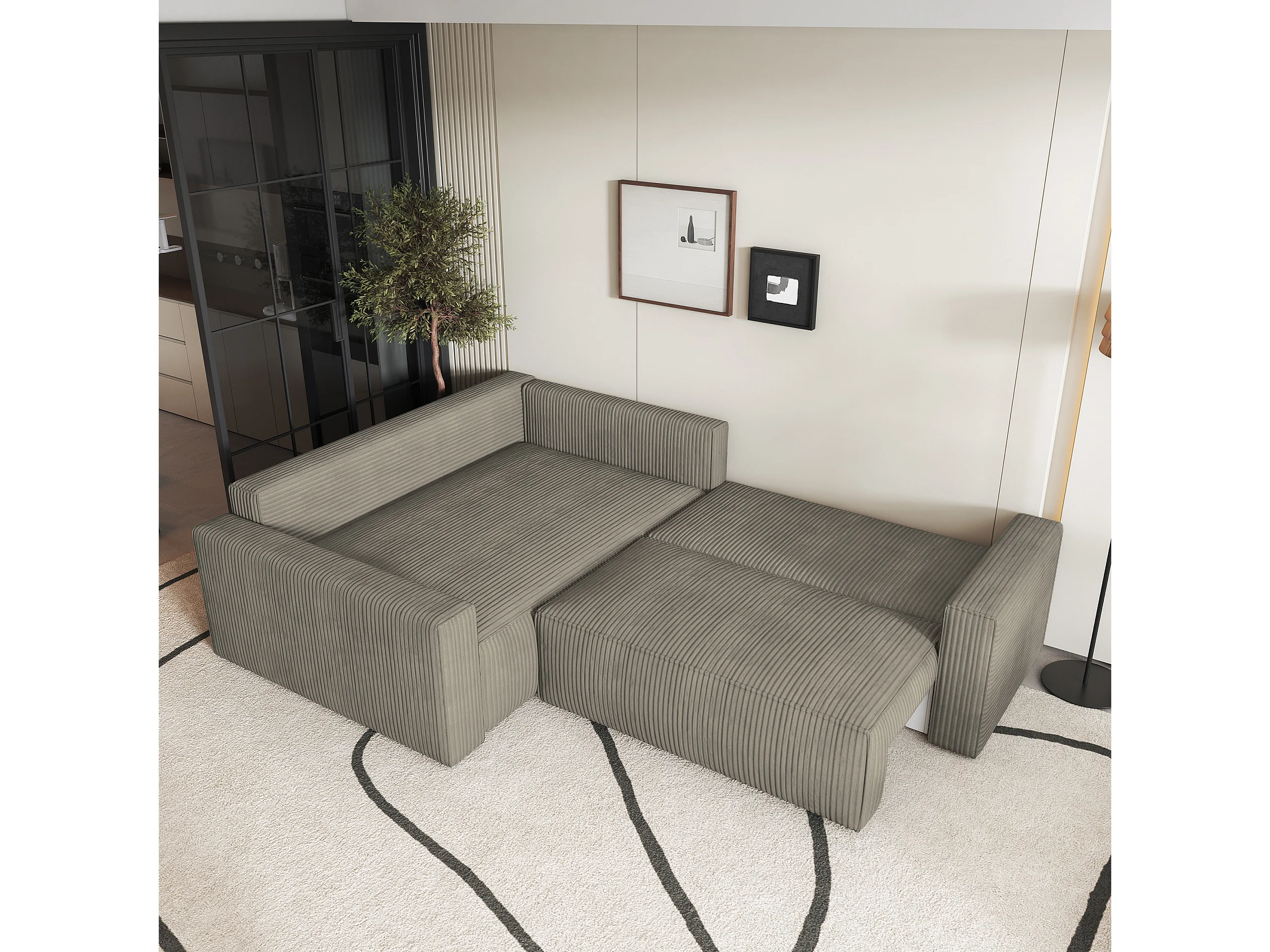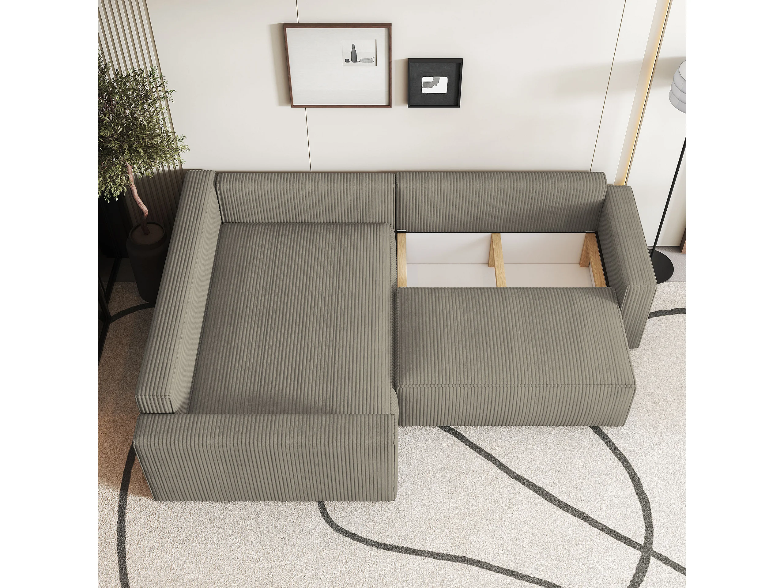 Canapé D'angle Eronis Beige En Velours Côtelé Avec Fonction De Couchage