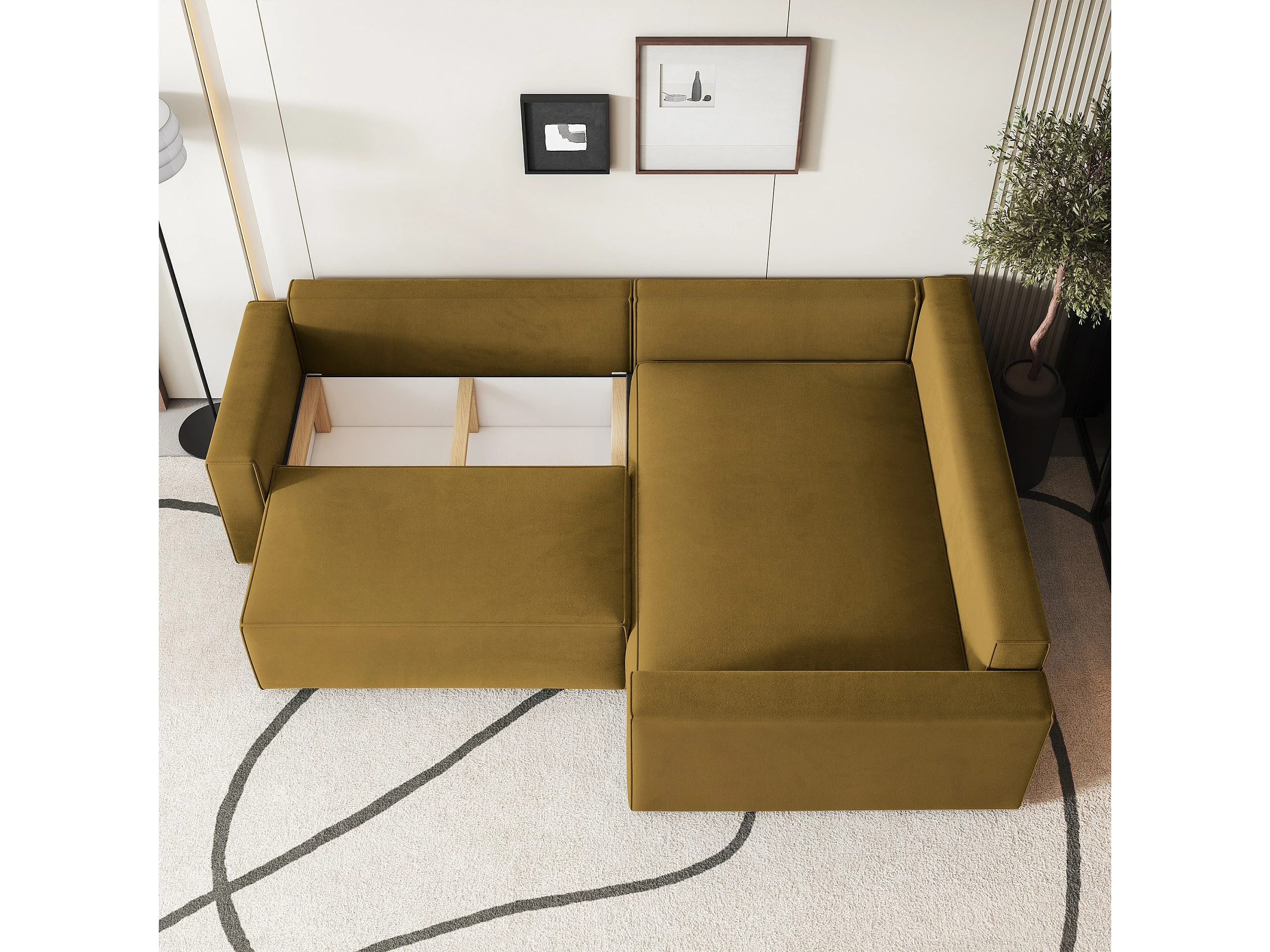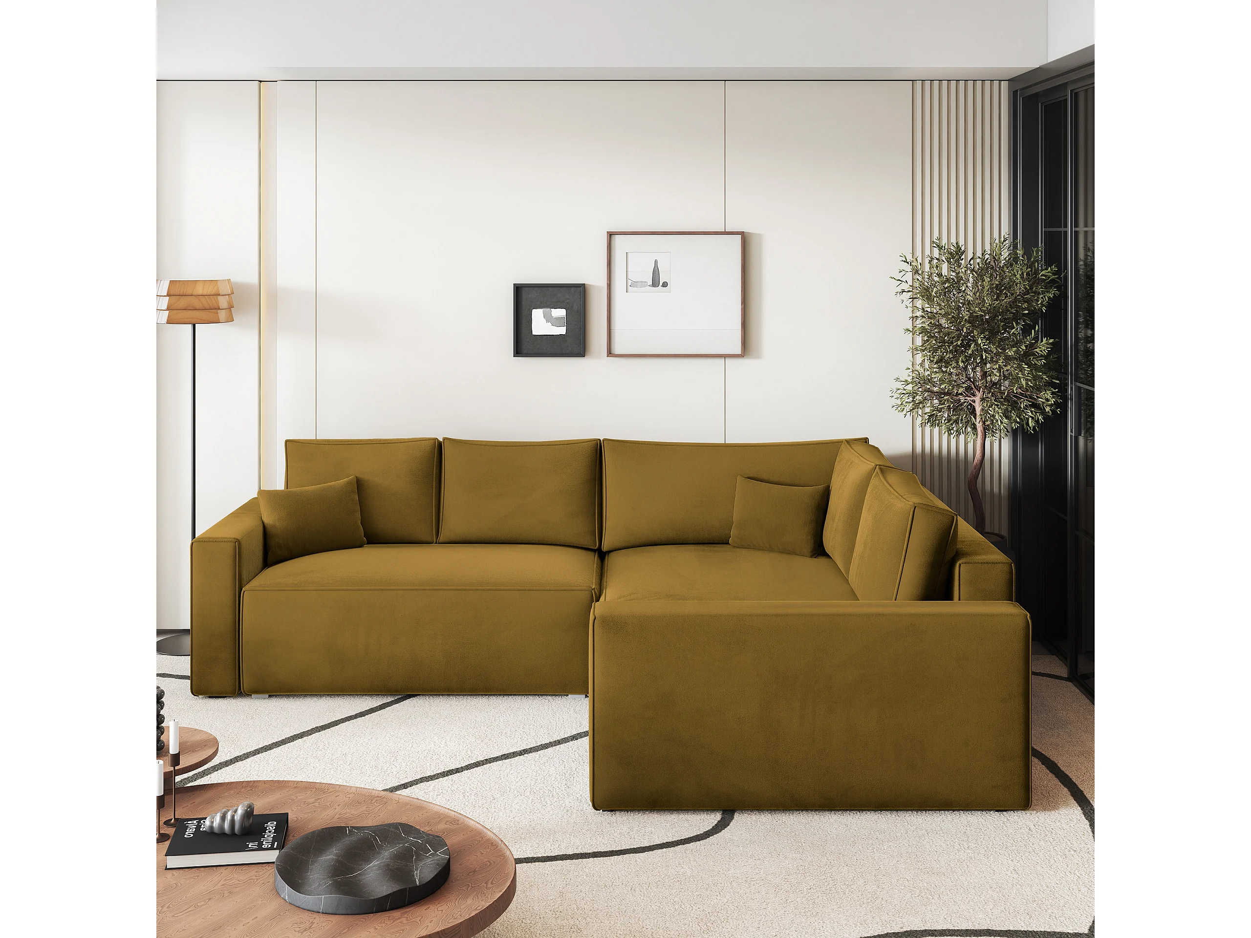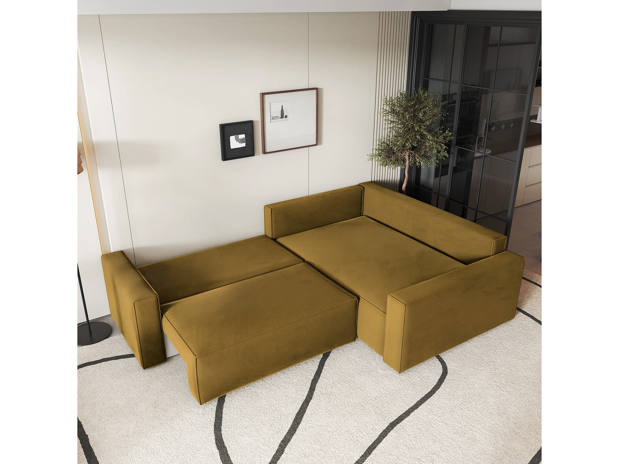 Canapé D'angle Eronis Jaune En Velours Avec Fonction De Couchage