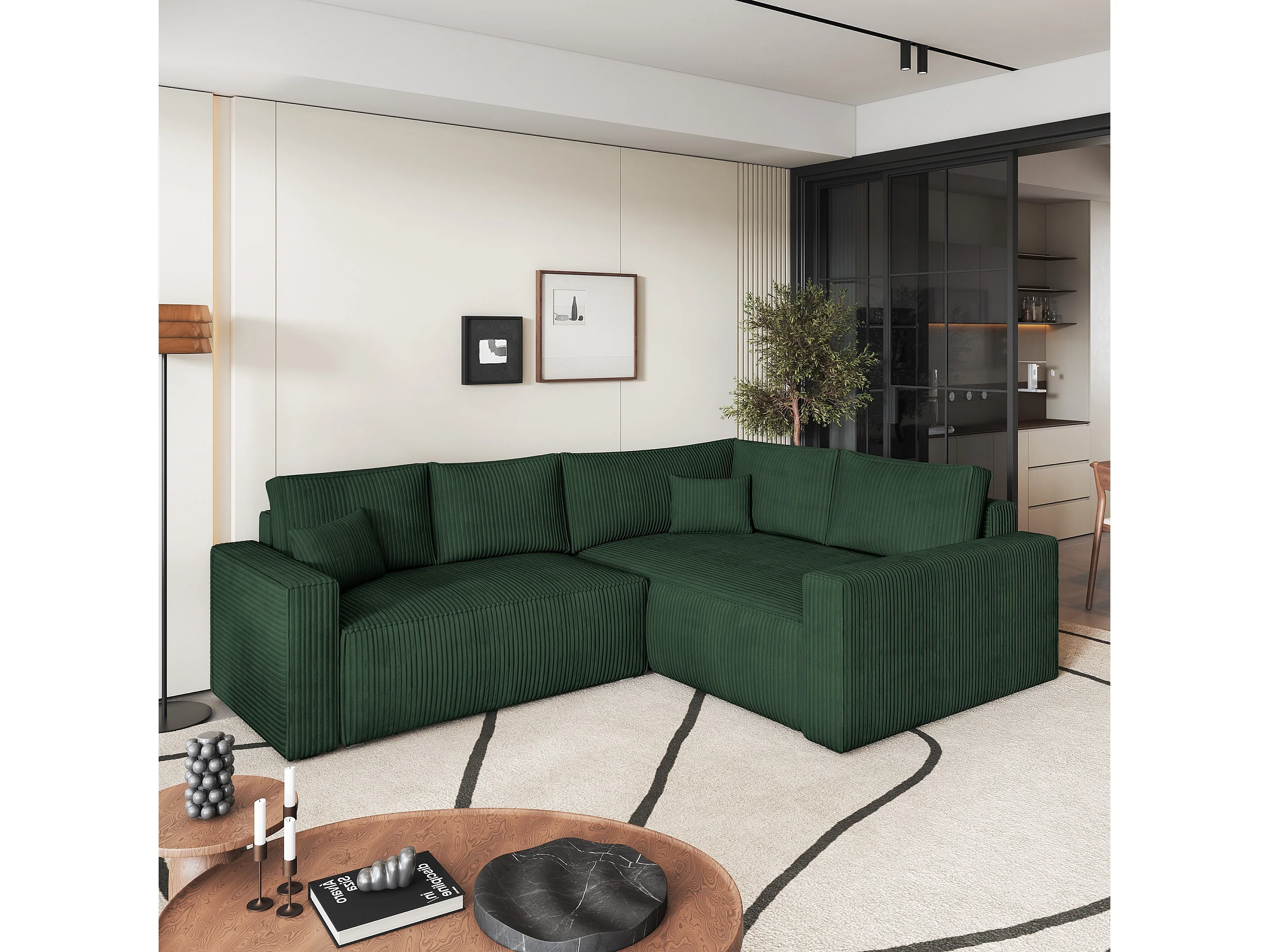 Canapé D'angle Eronis Vert En Velours Côtelé Avec Fonction De Couchage