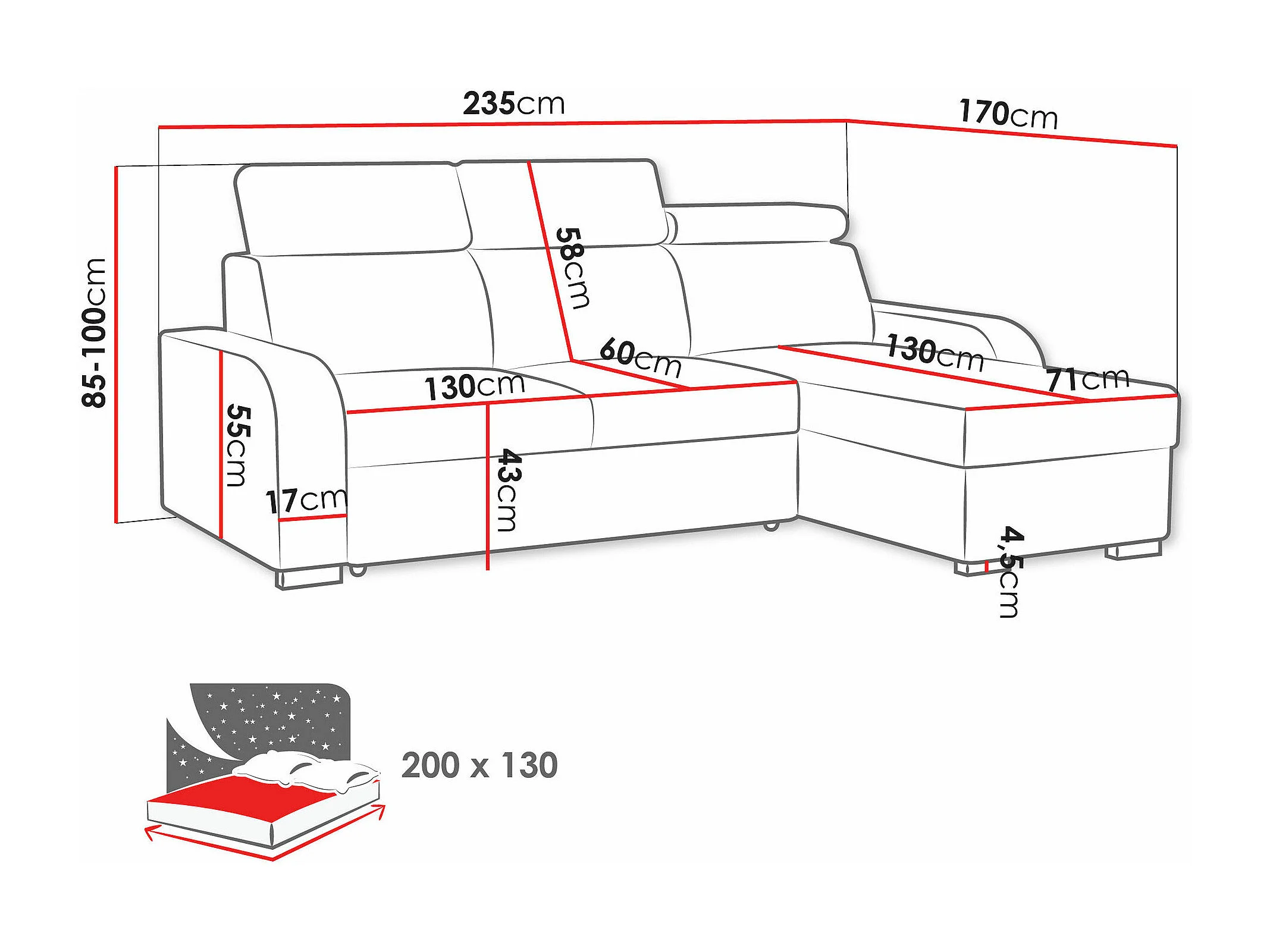 Canapé d'angle Etrcala 100, Brun clair, Disponible, 235x170x85cm
