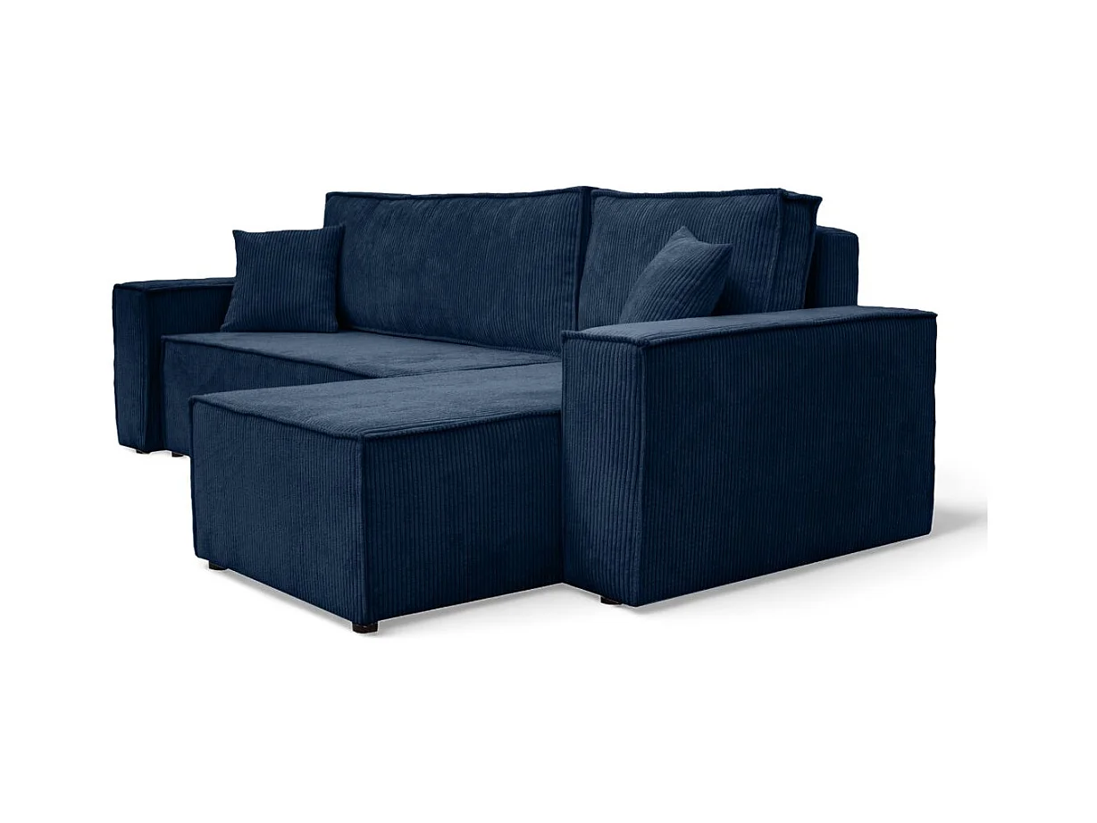 Canapé d'angle FARAH convertible et réversible 4 places en velours cotelé - Bleu foncé