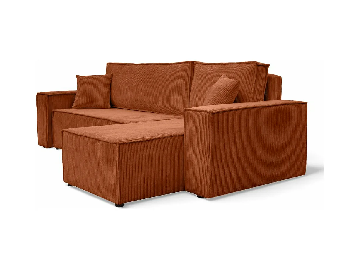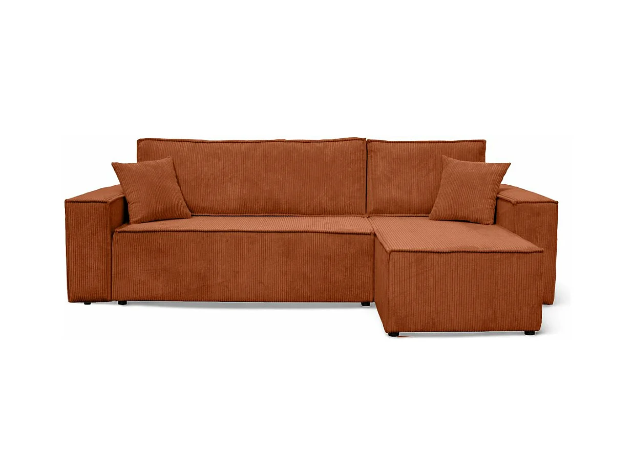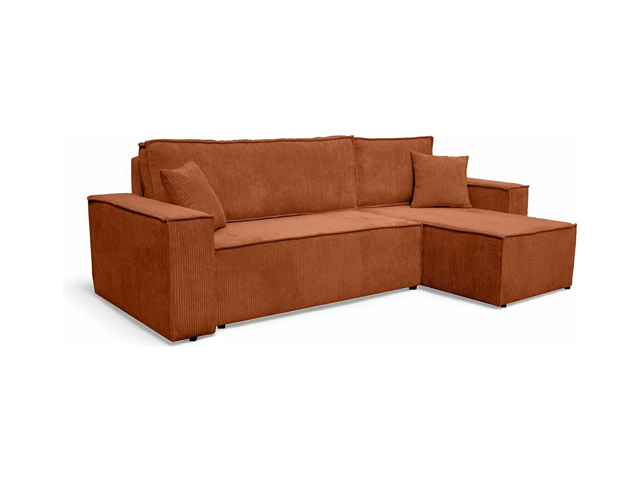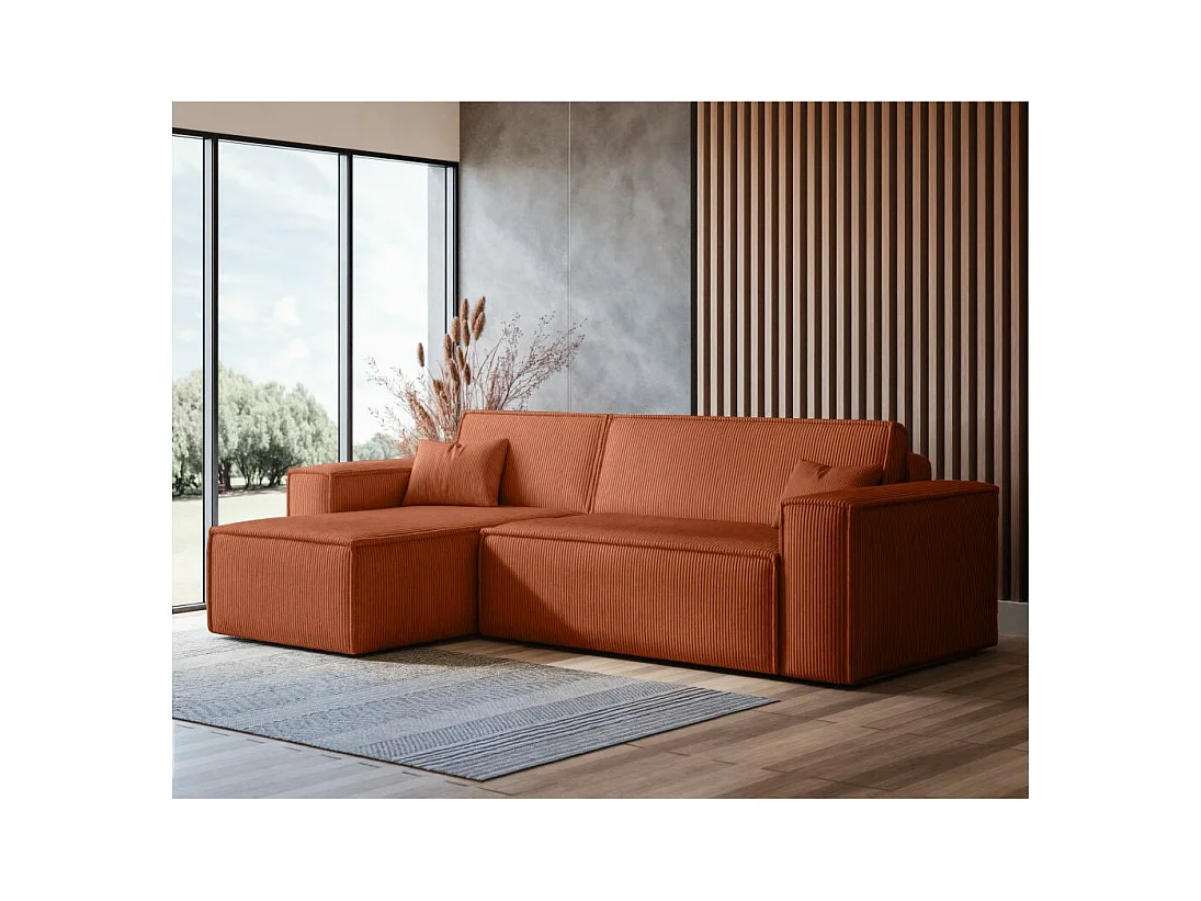 Canapé d'angle FARAH convertible et réversible 4 places en velours cotelé - Terracotta