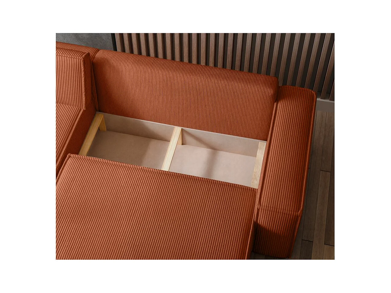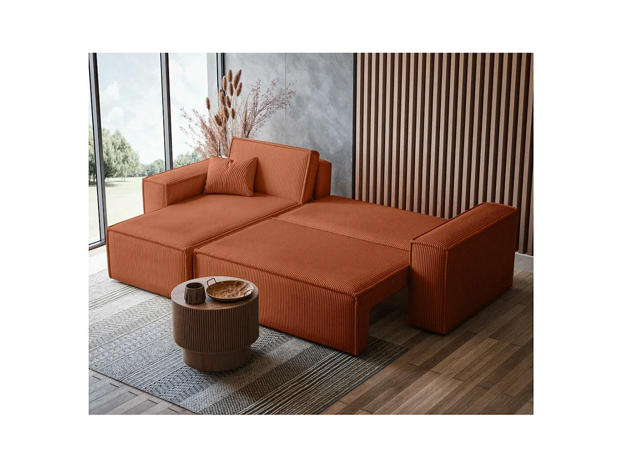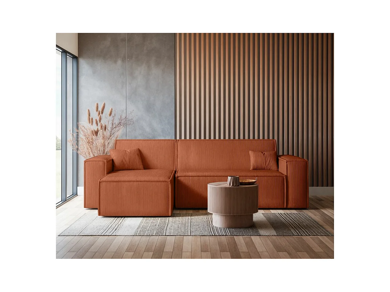 Canapé d'angle FARAH convertible et réversible 4 places en velours cotelé - Terracotta