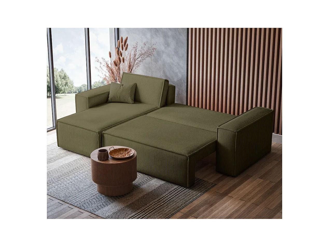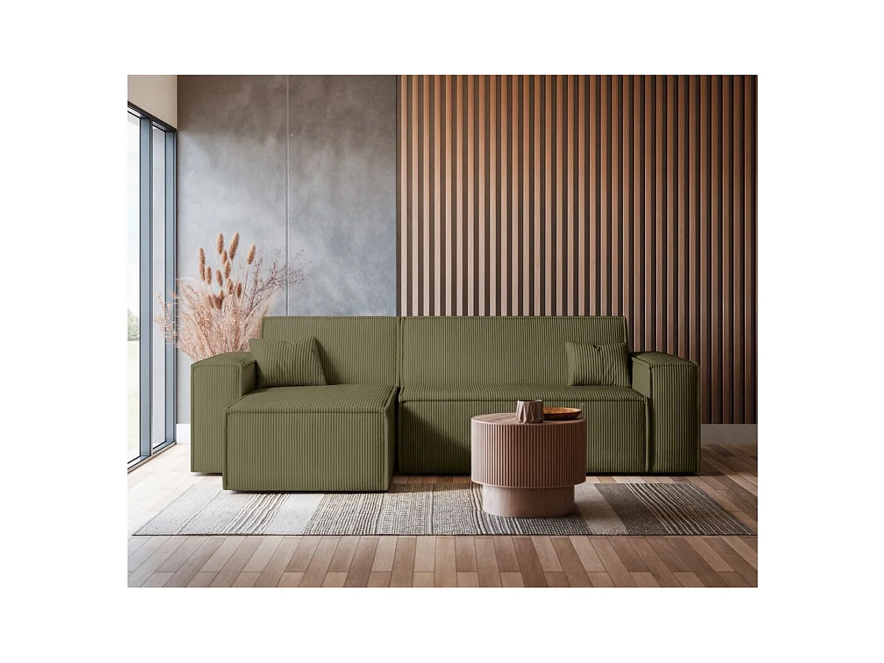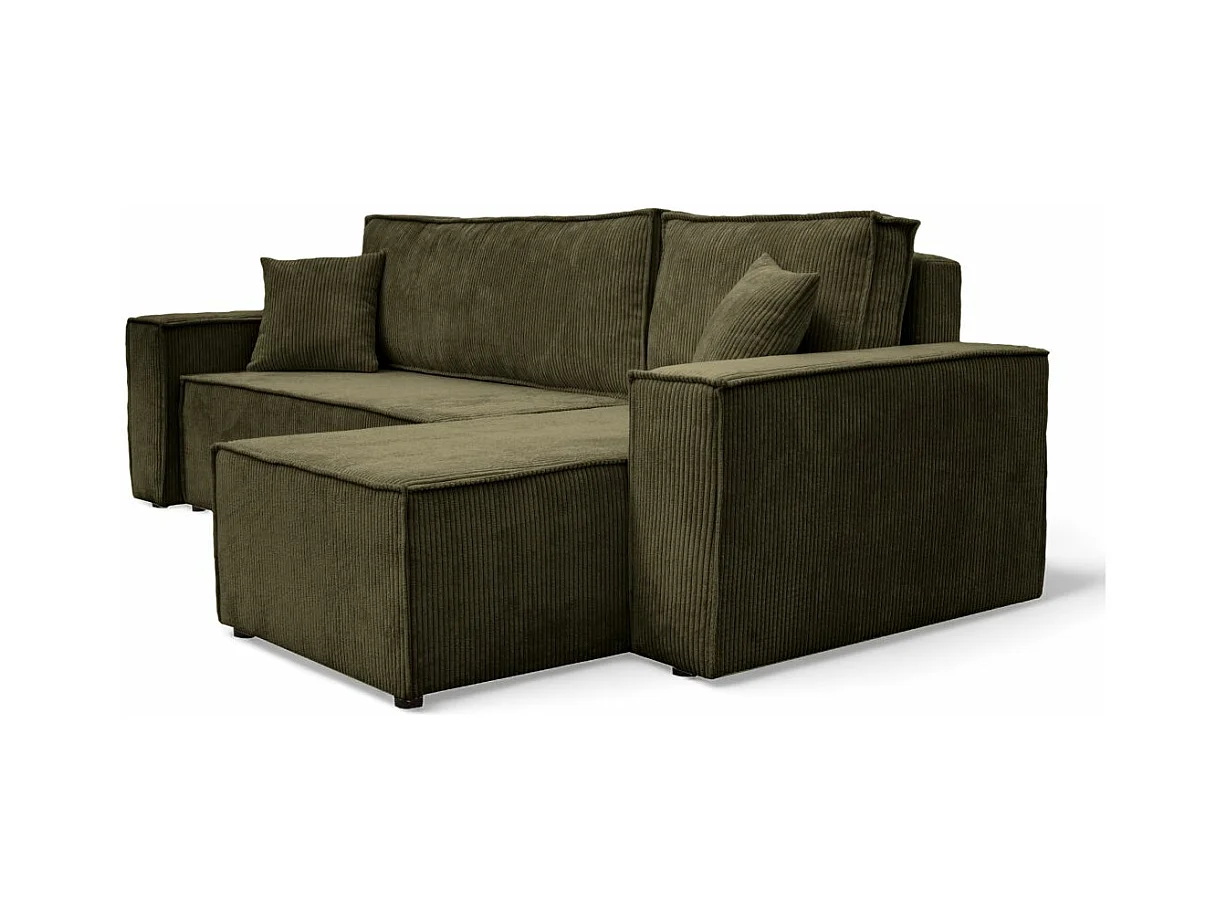 Canapé d'angle FARAH convertible et réversible 4 places en velours cotelé - Vert kaki