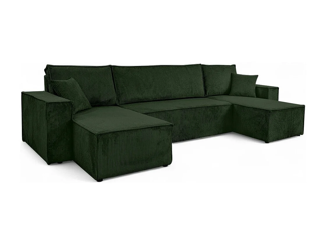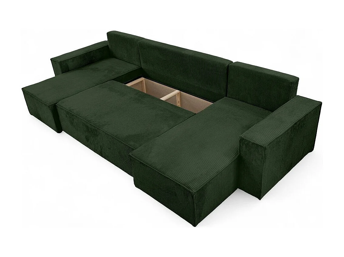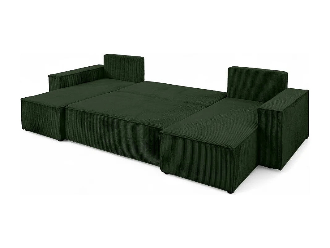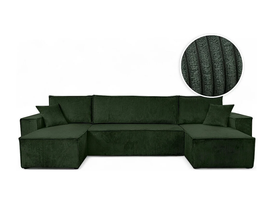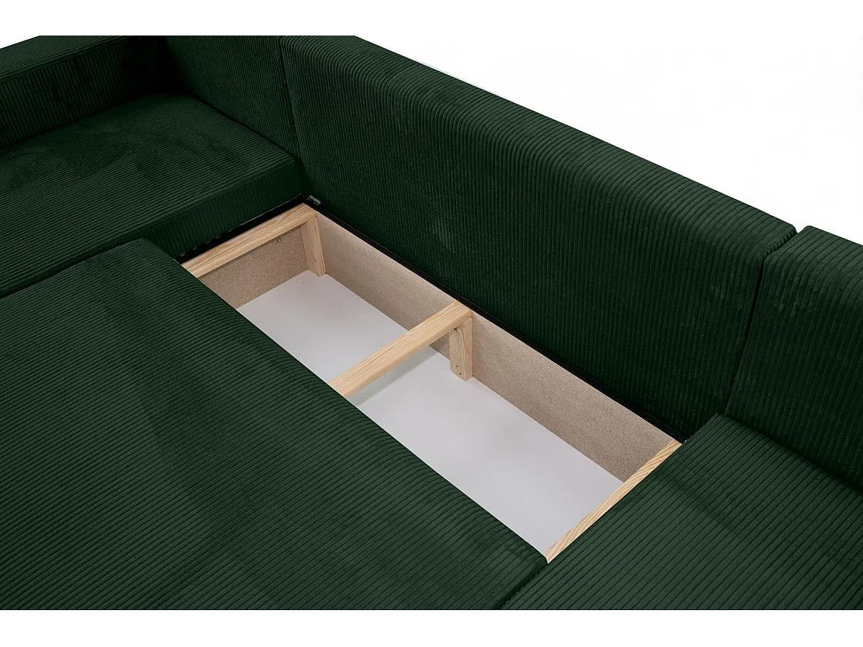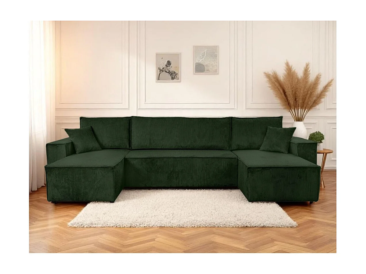 Canapé d'angle FARAH panoramique convertible 6 places en velours cotelé - Vert foncé