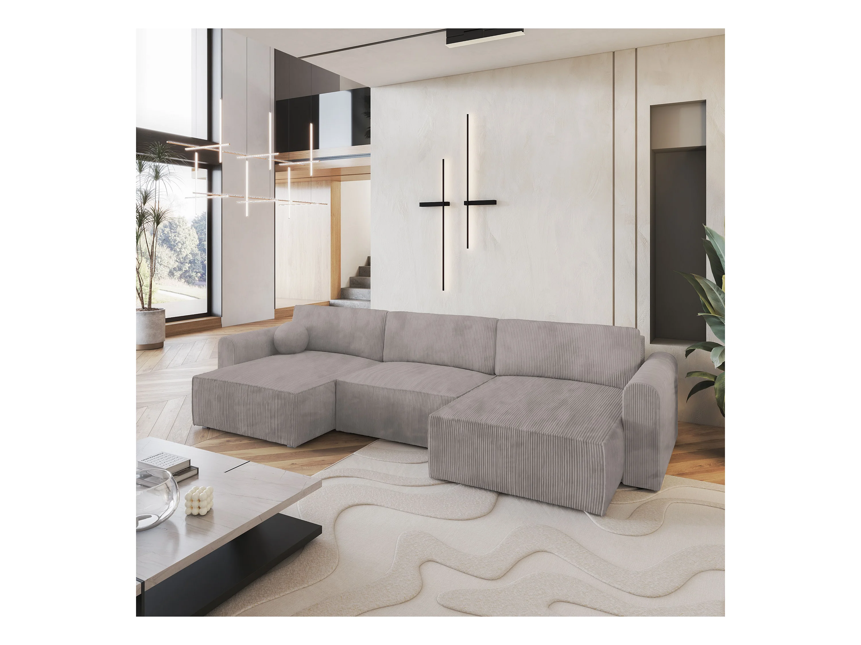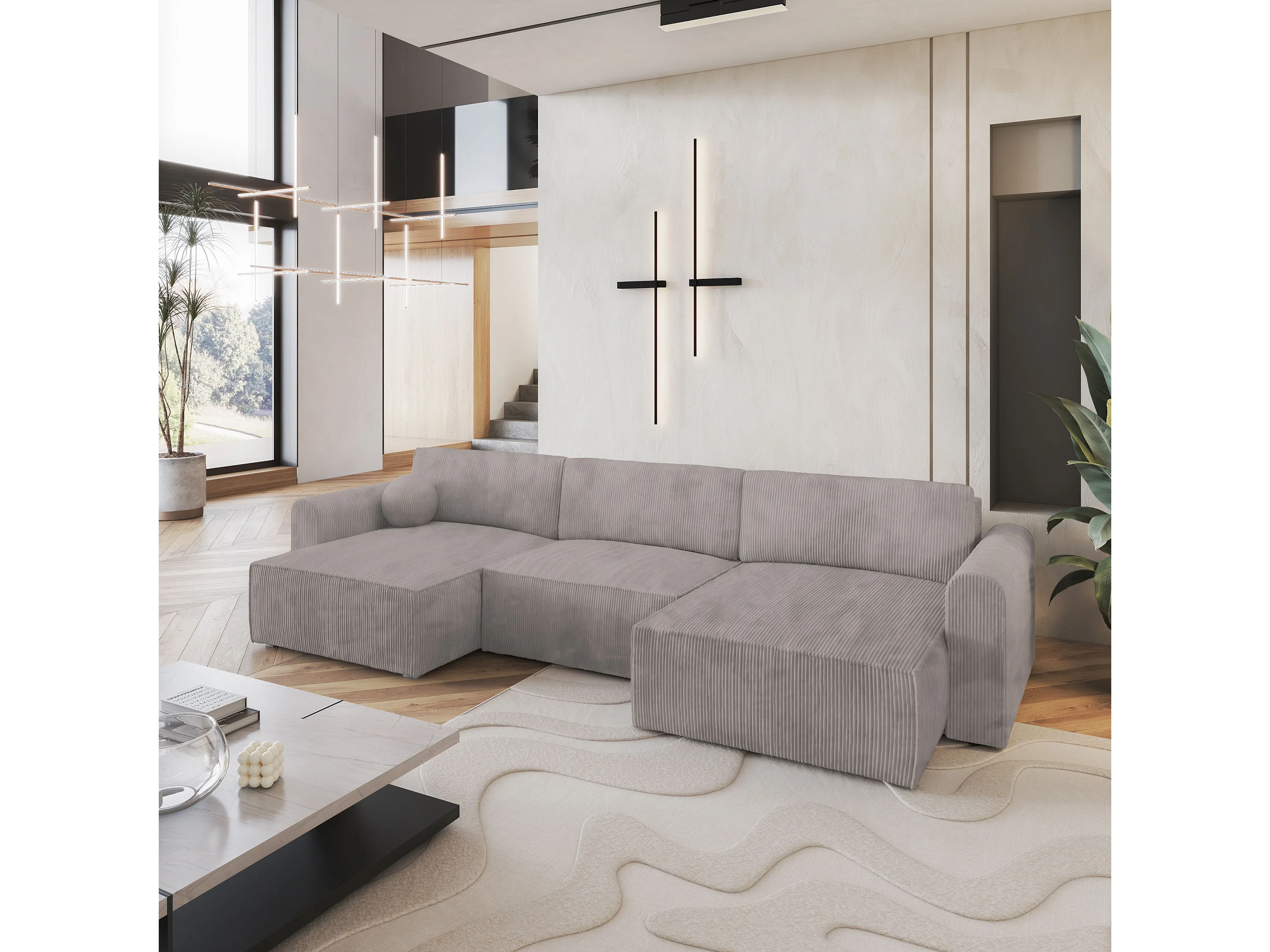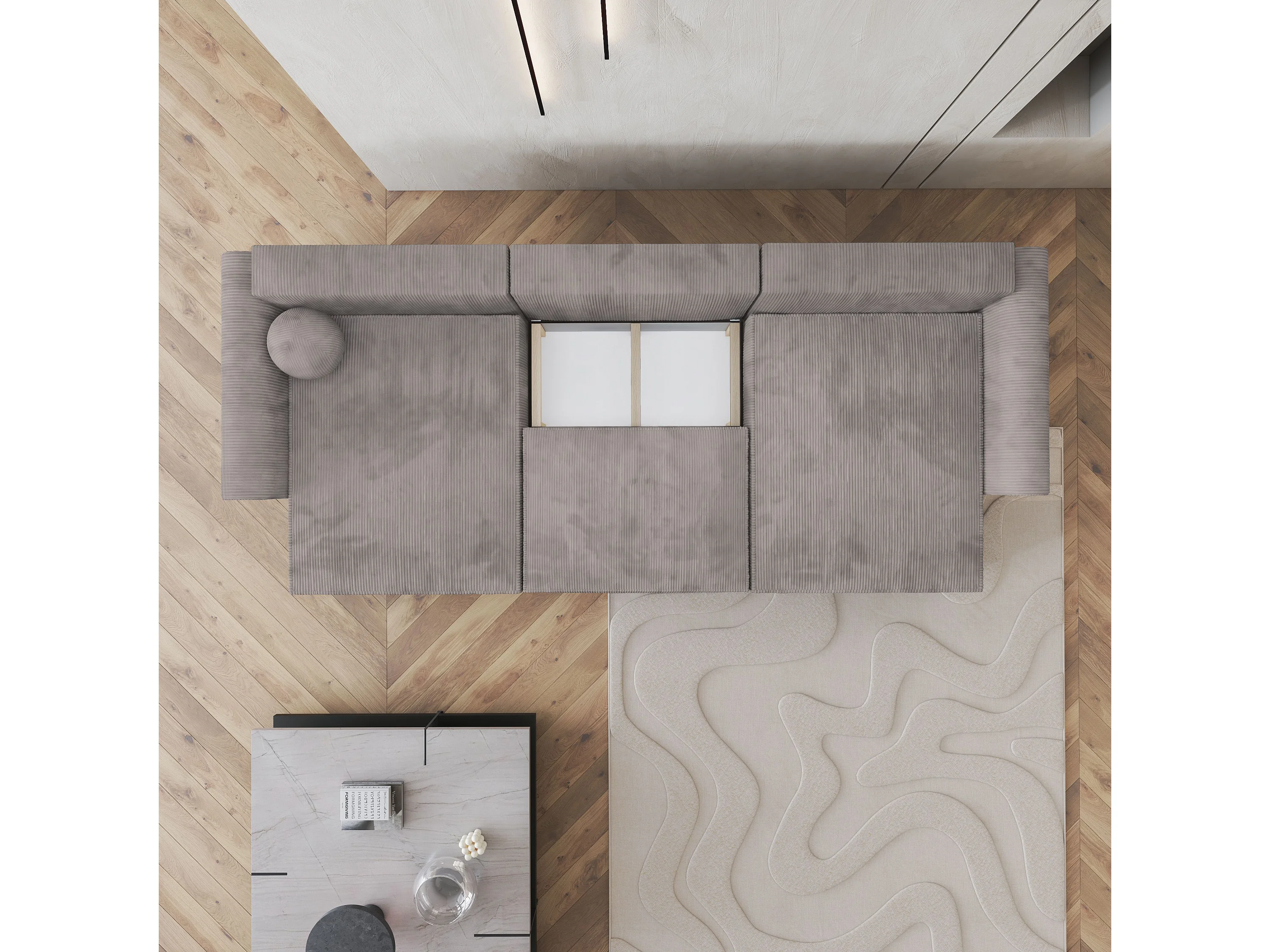 Canapé d'angle FENTO Beige en velours côtelé avec fonction de couchage