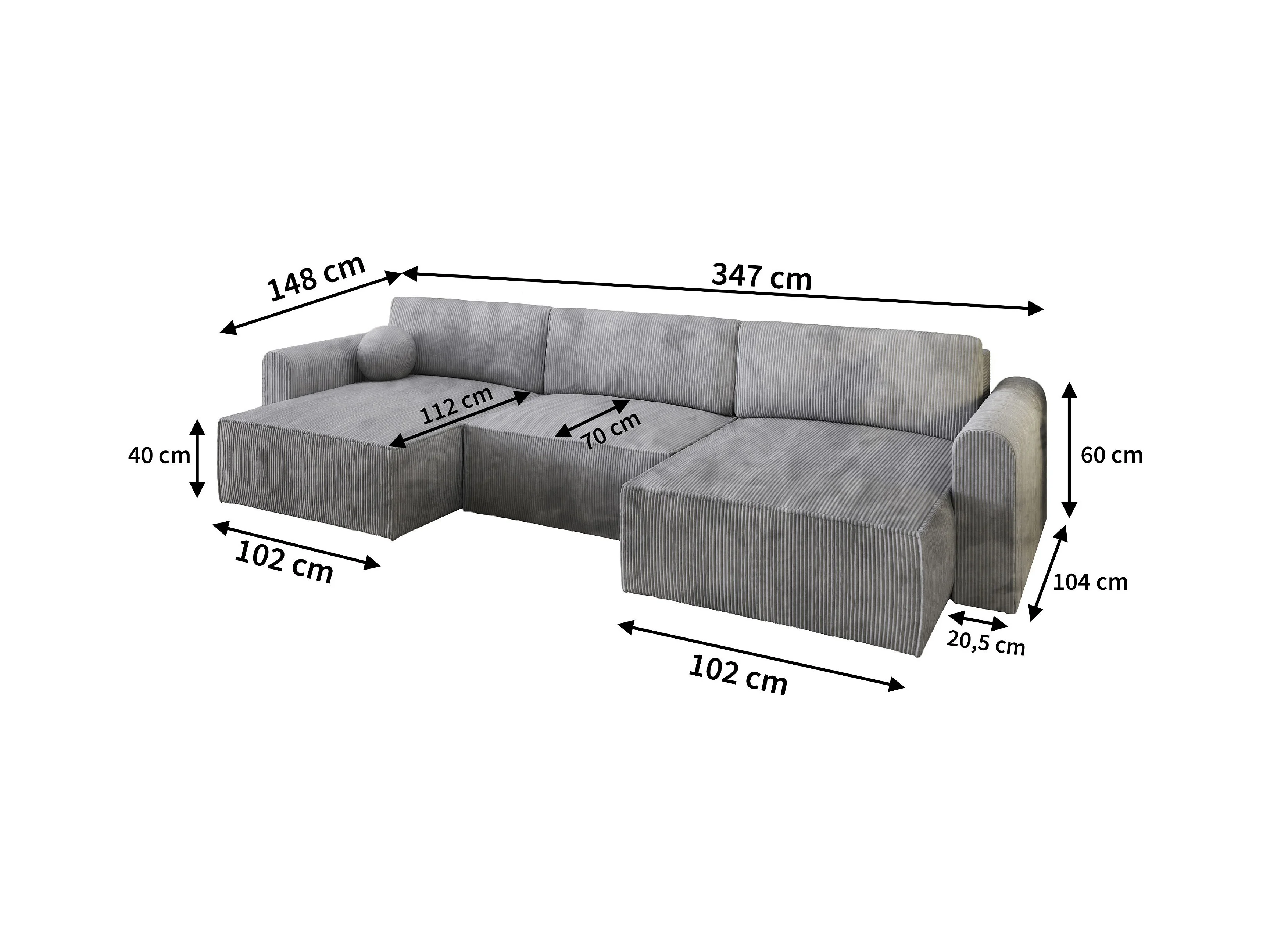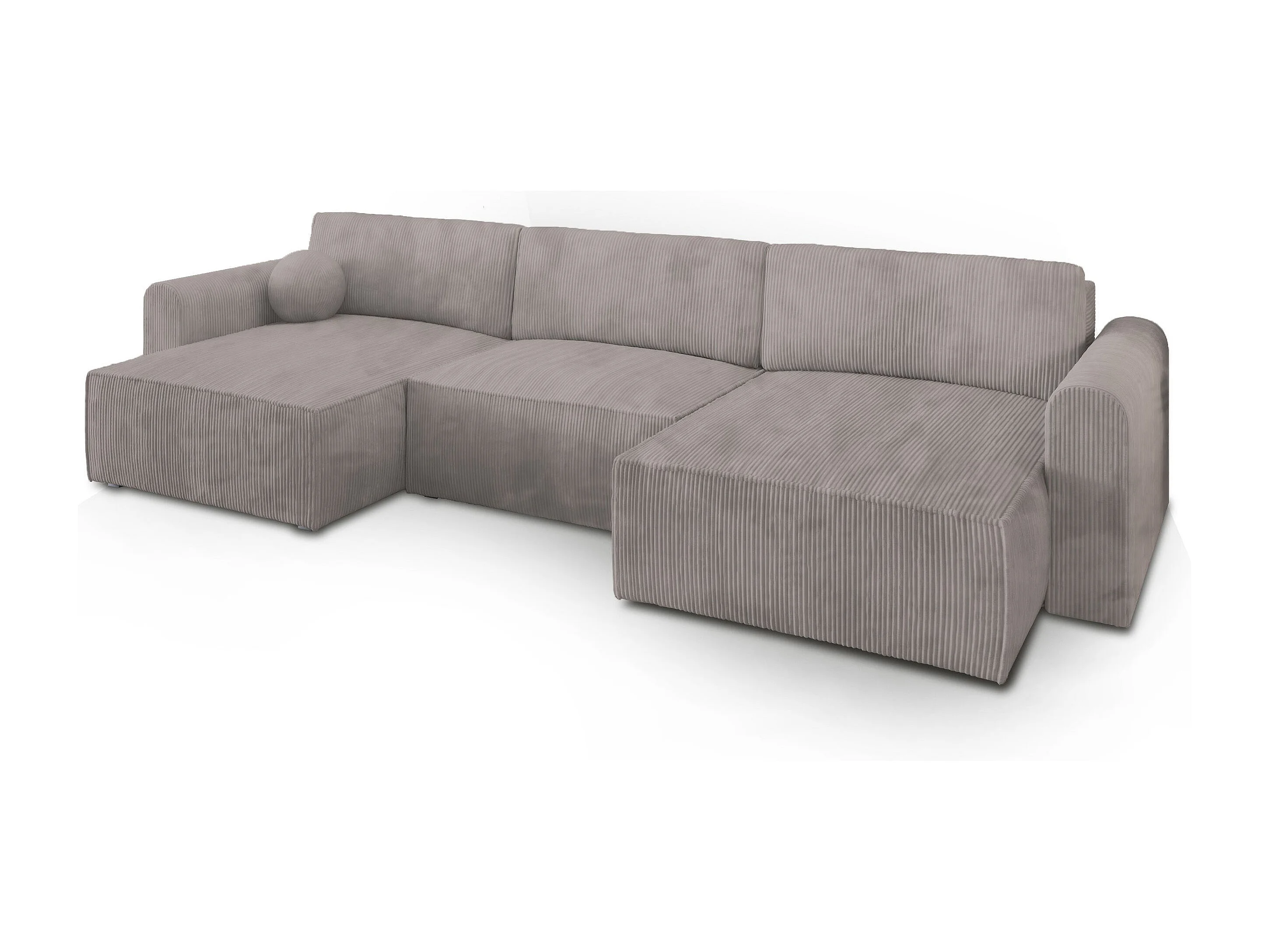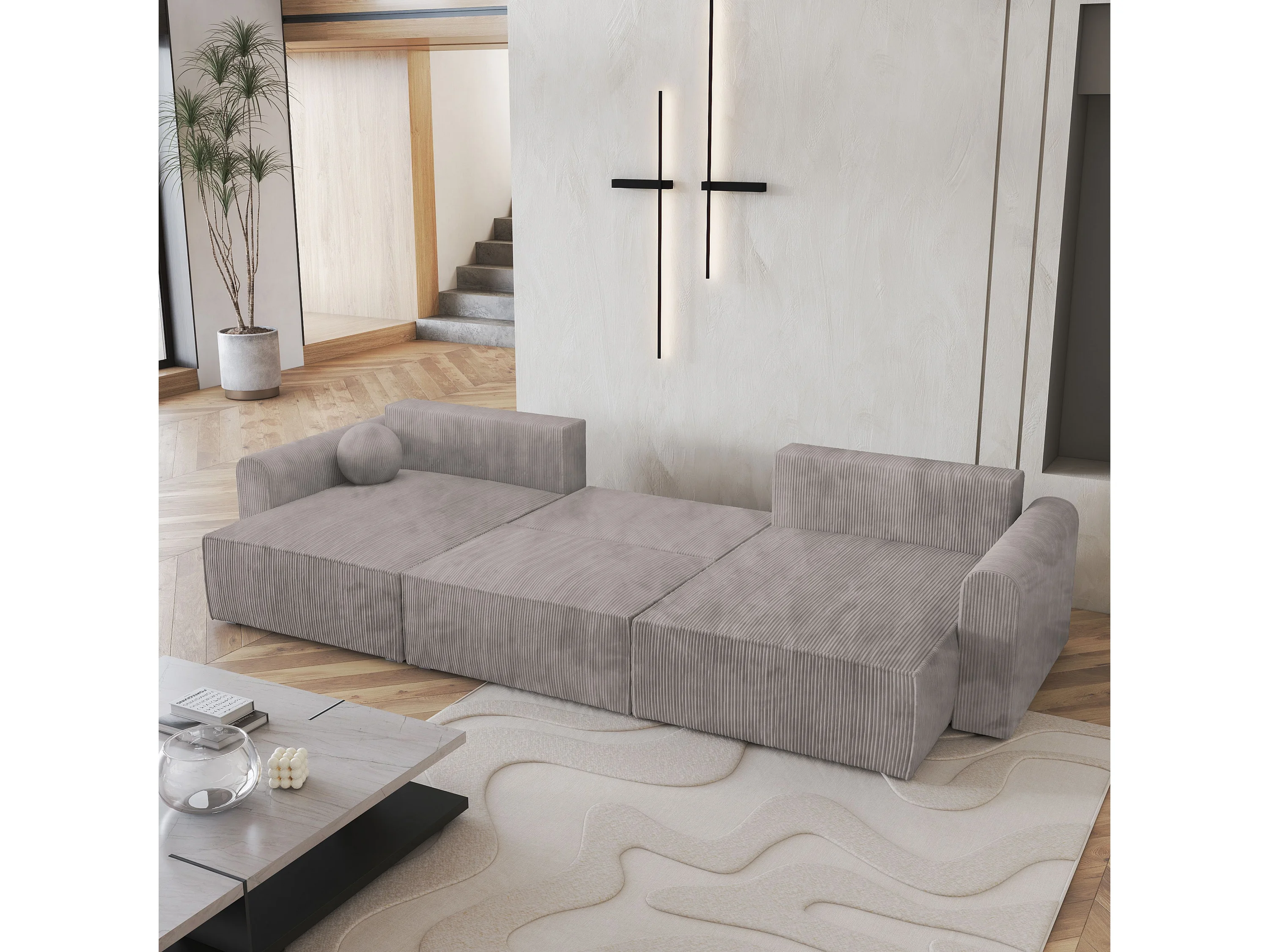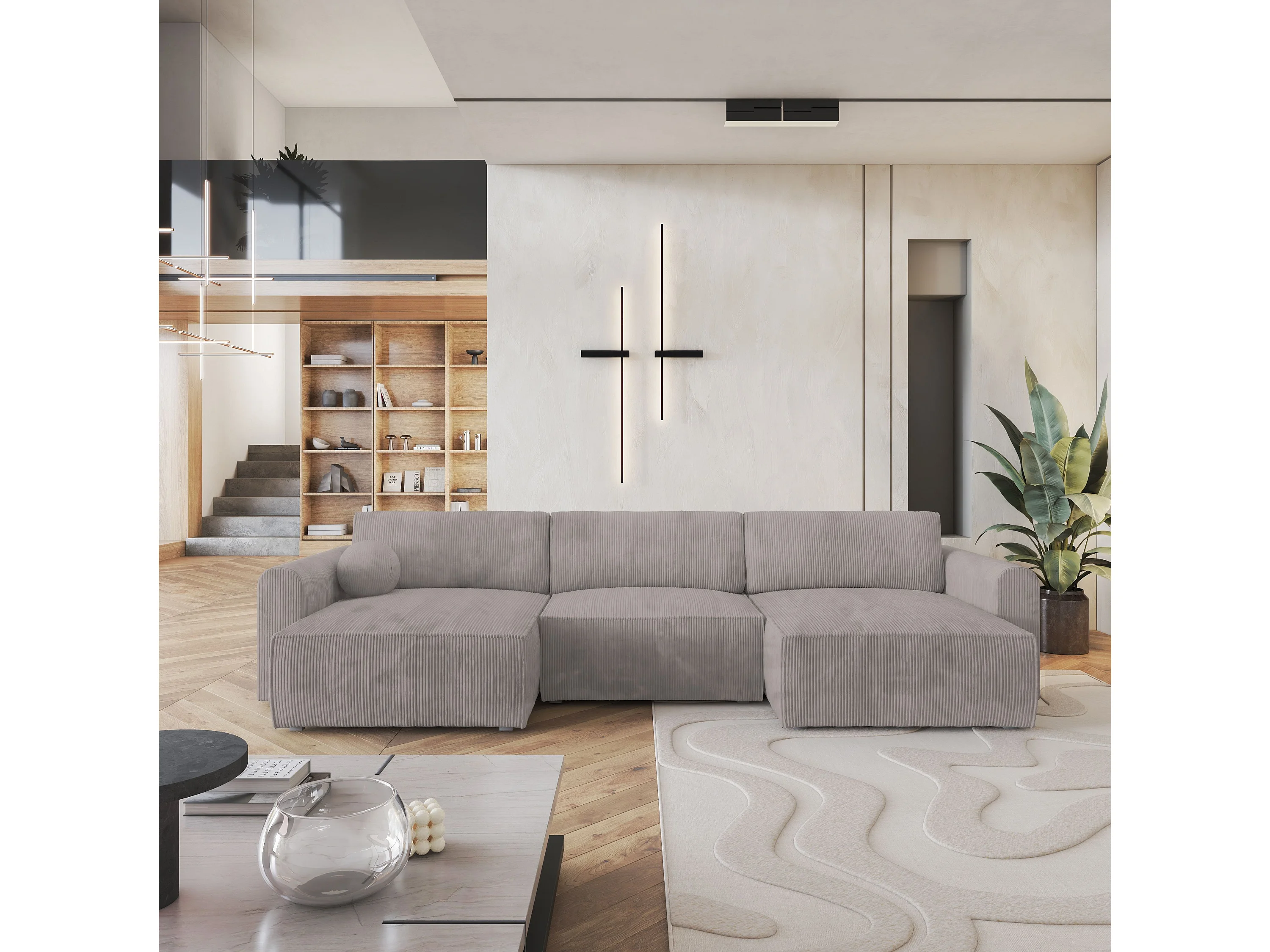 Canapé d'angle FENTO Beige en velours côtelé avec fonction de couchage
