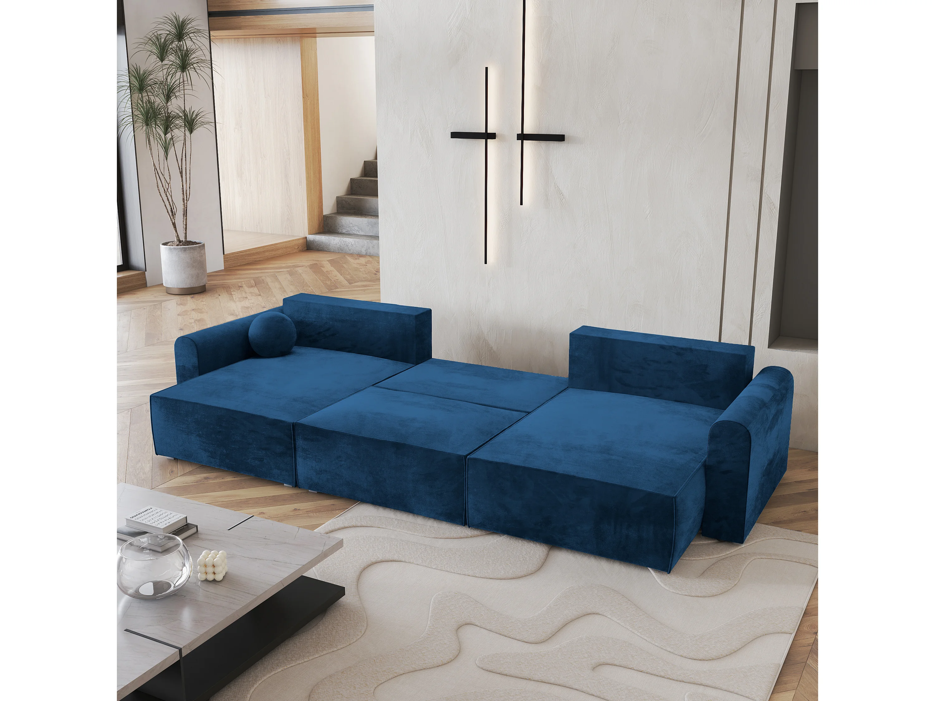 Canapé d'angle FENTO Bleu en velours avec fonction de couchage
