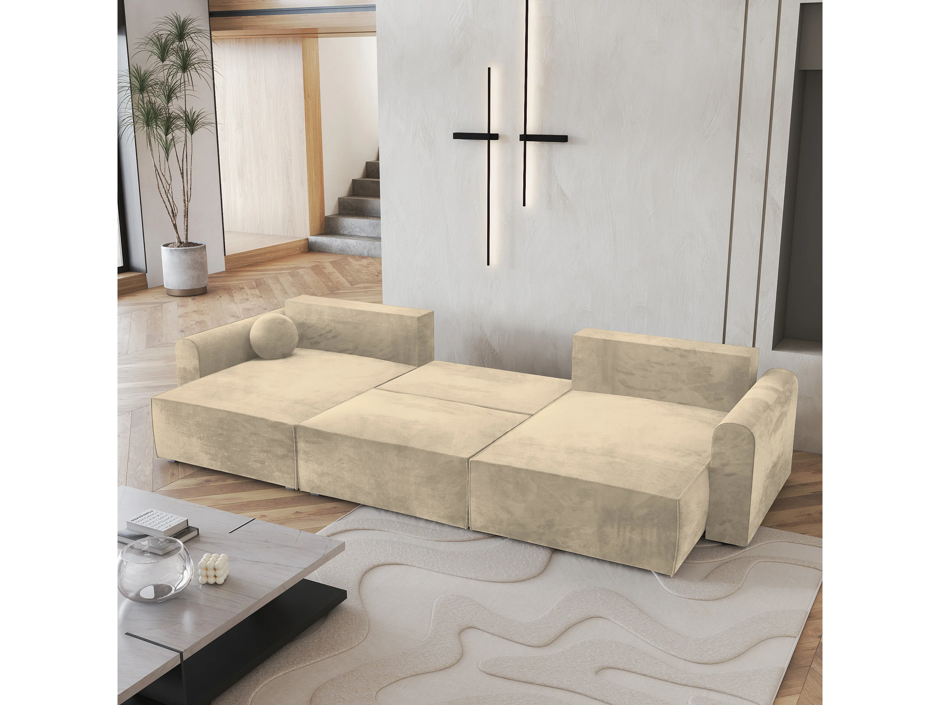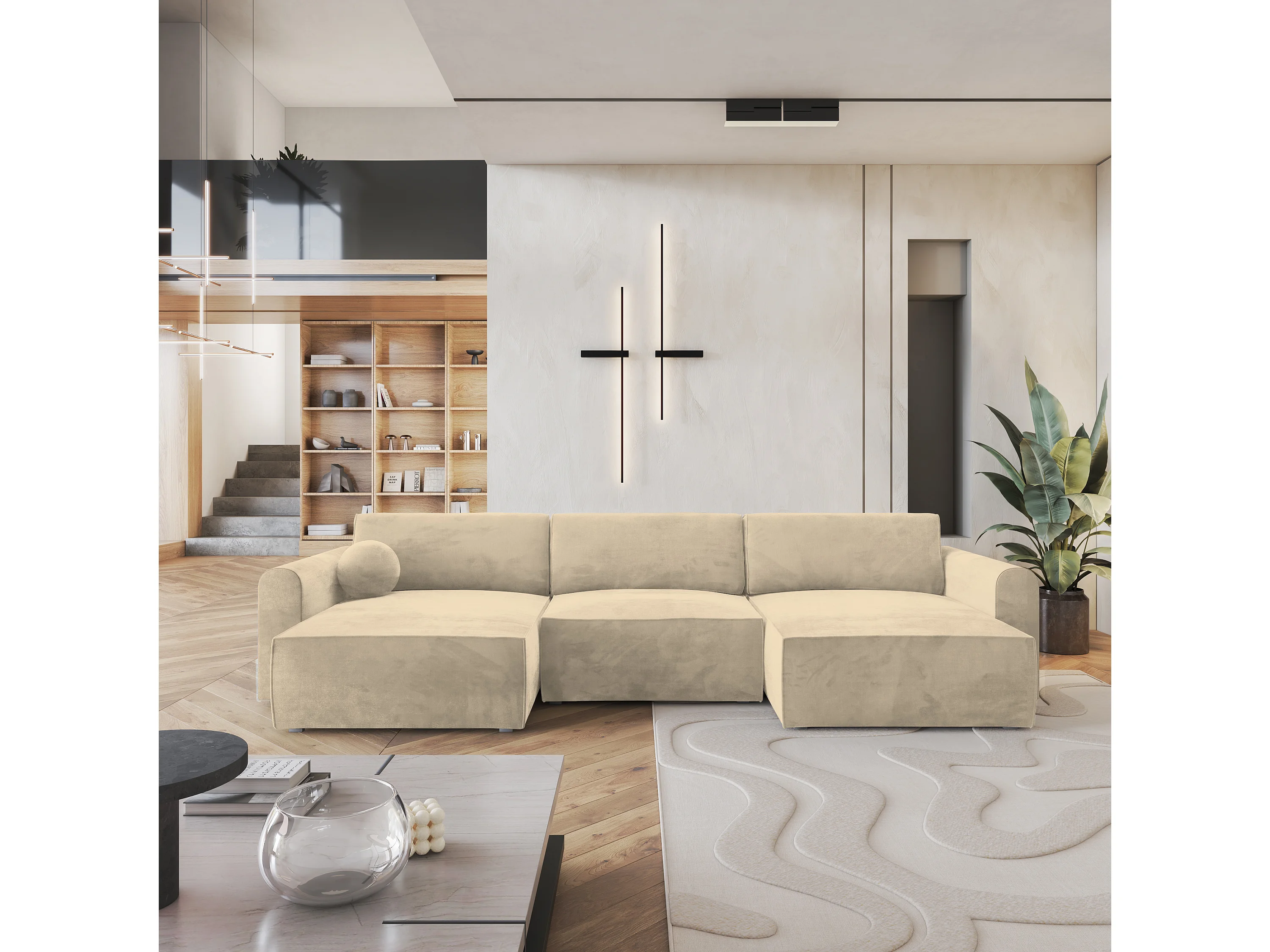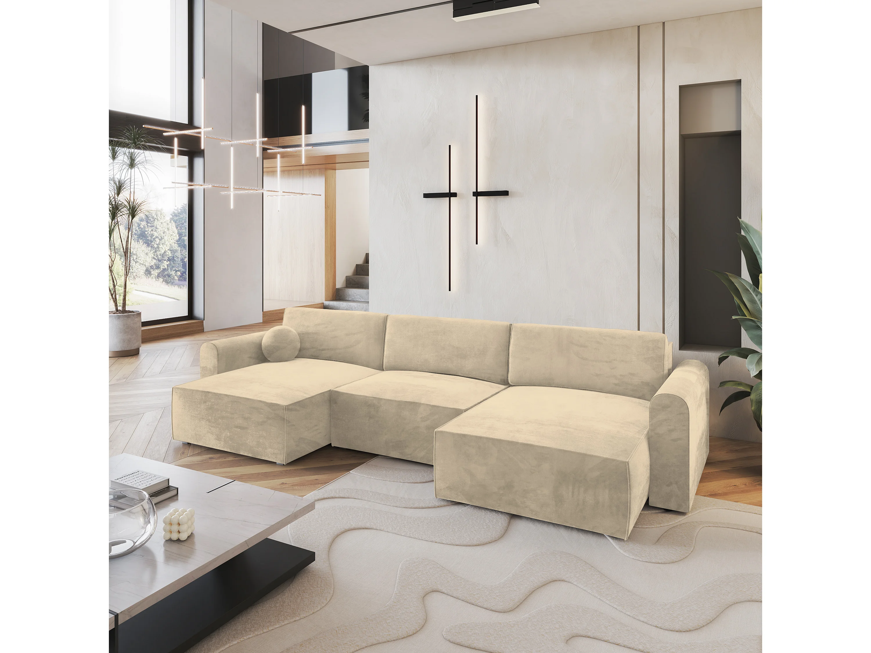 Canapé d'angle FENTO Crème en velours avec fonction de couchage