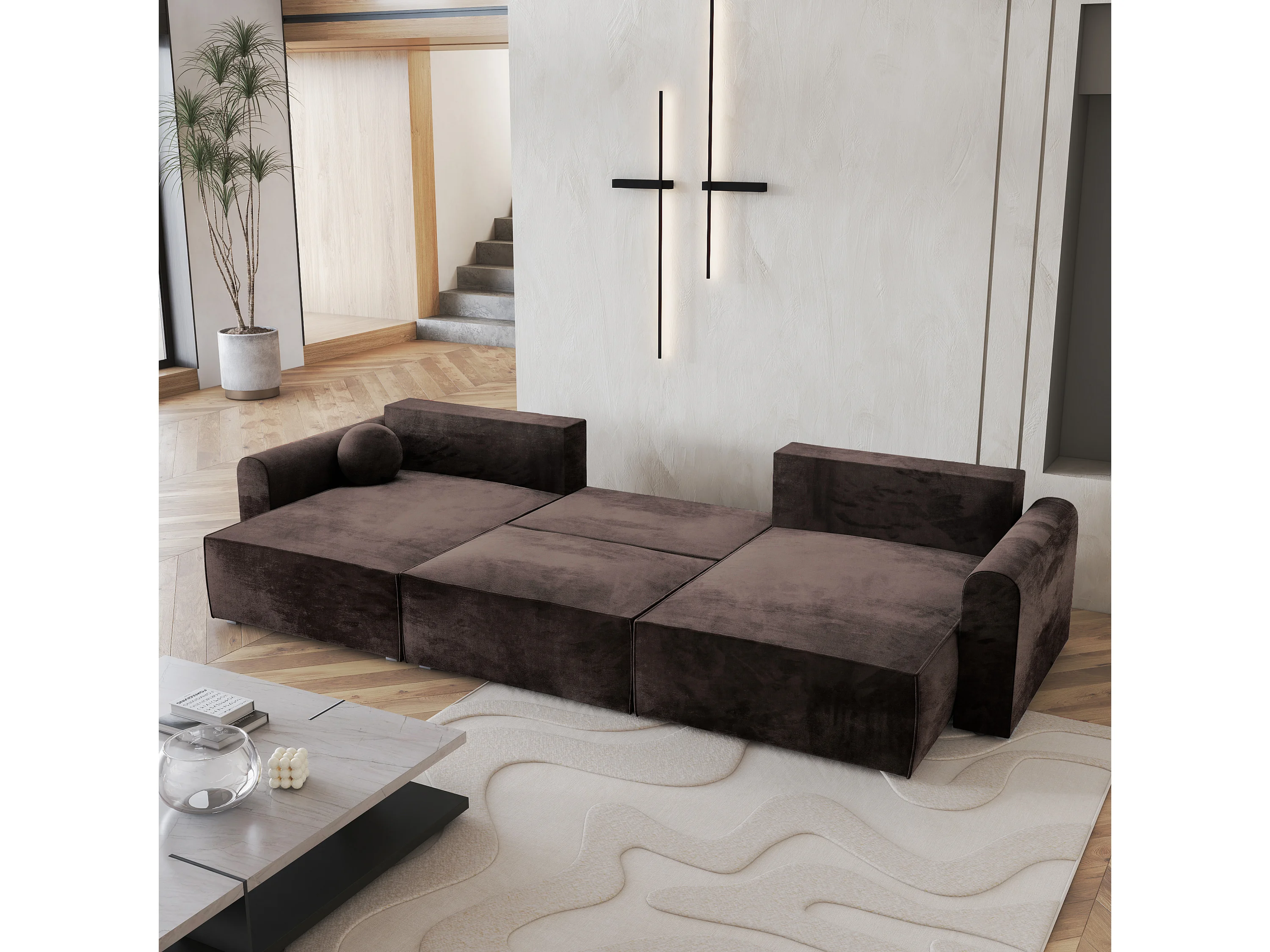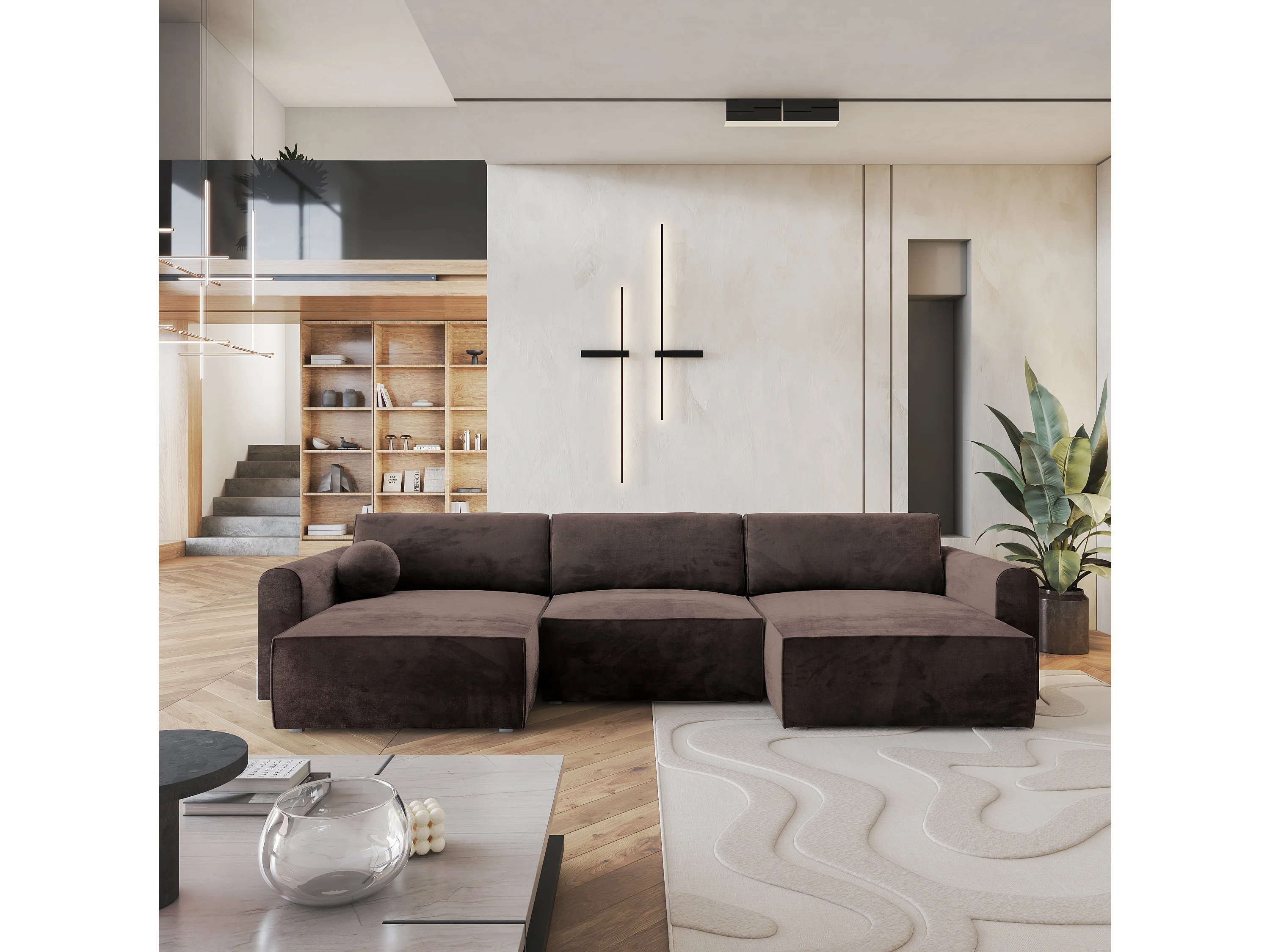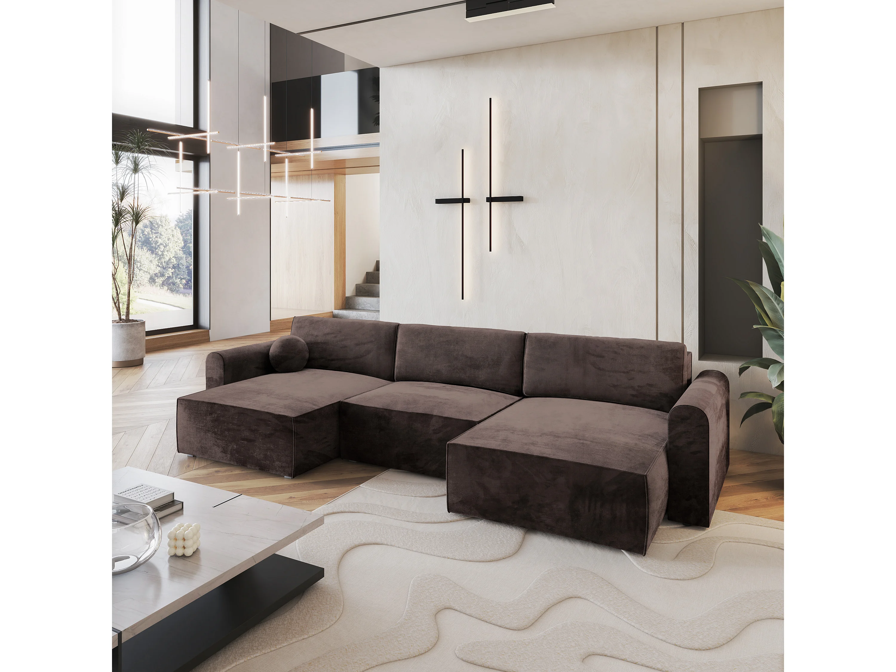 Canapé d'angle FENTO Marron en velours avec fonction de couchage