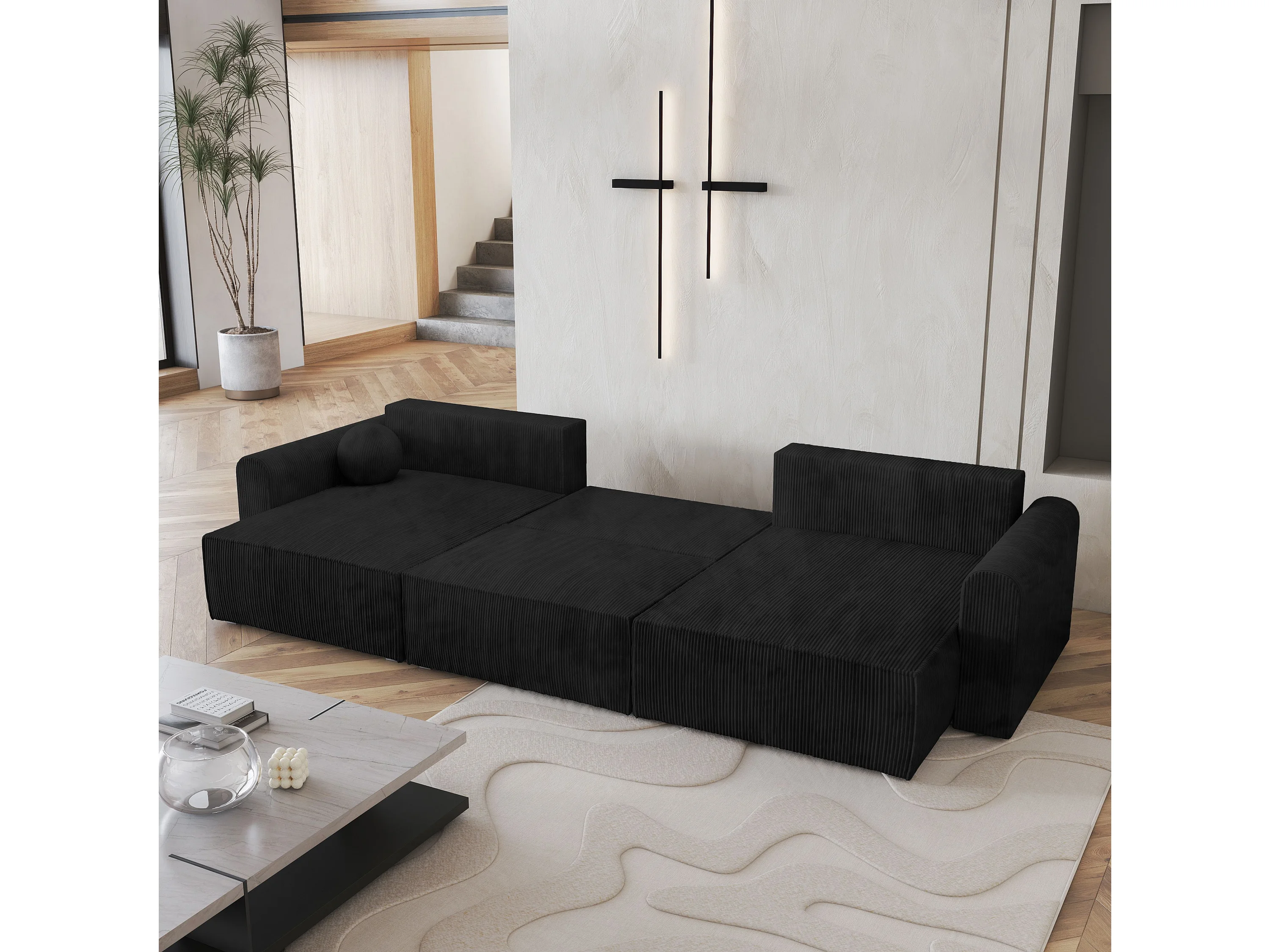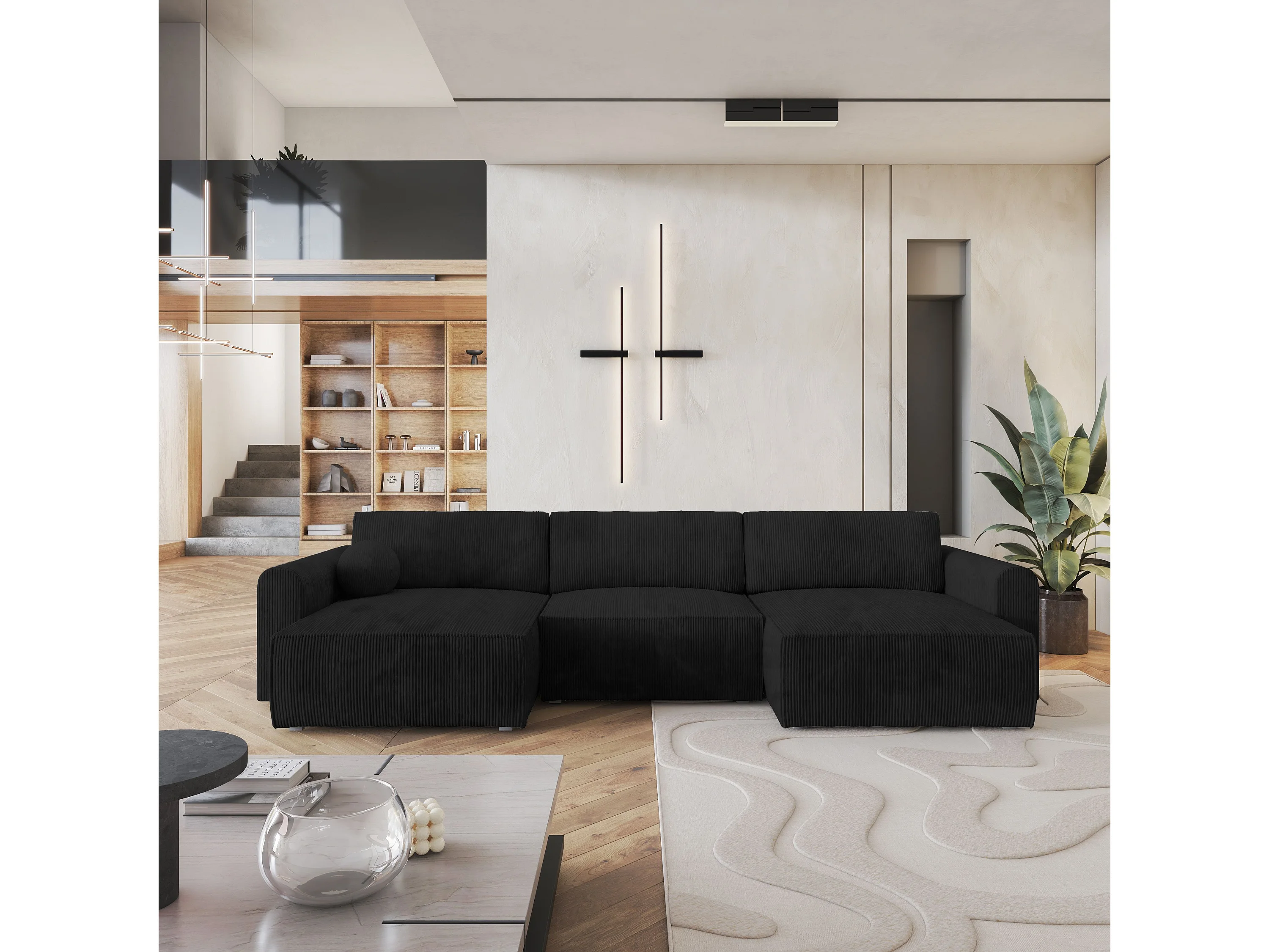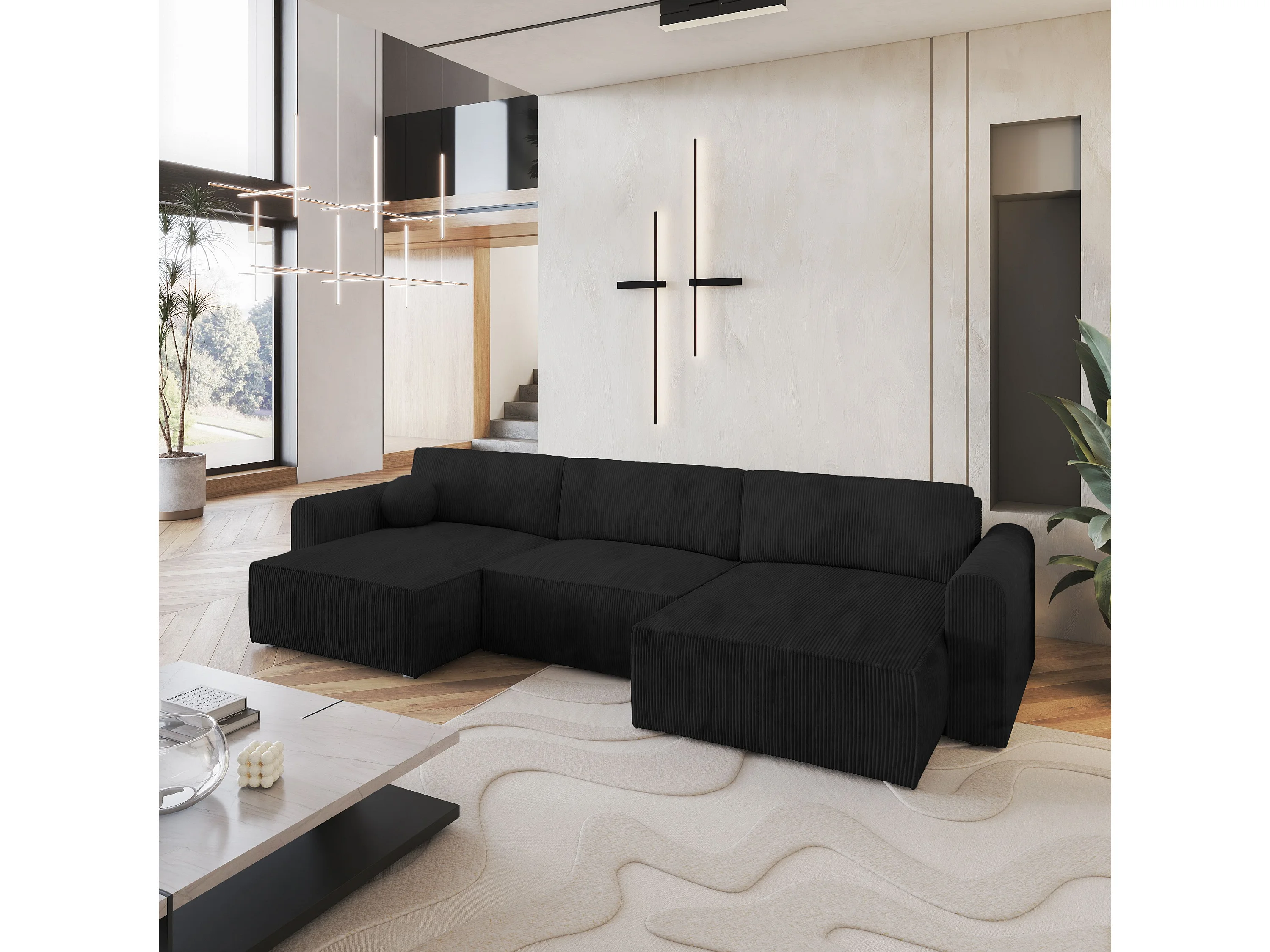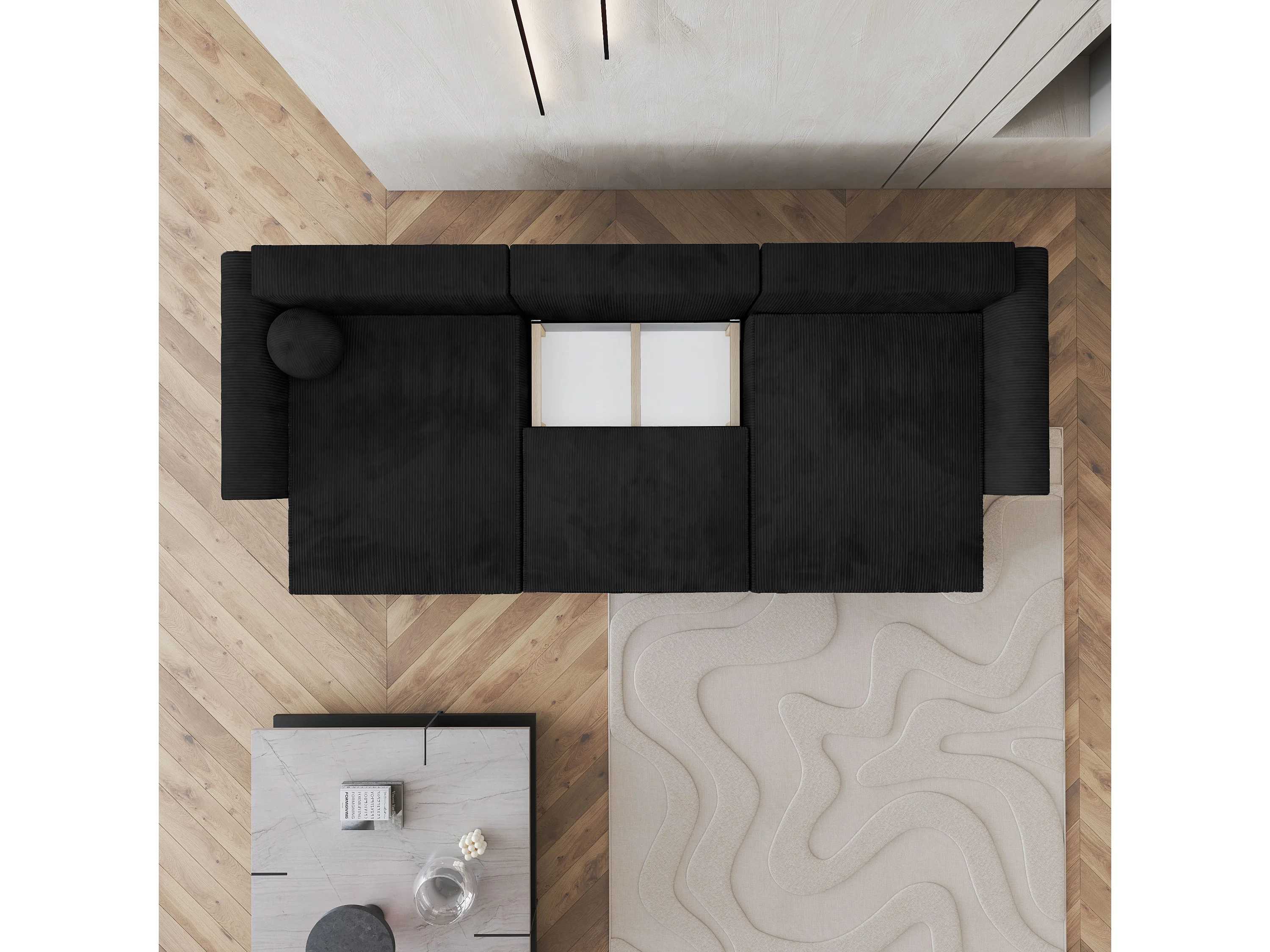 Canapé d'angle FENTO Noir en velours côtelé avec fonction de couchage