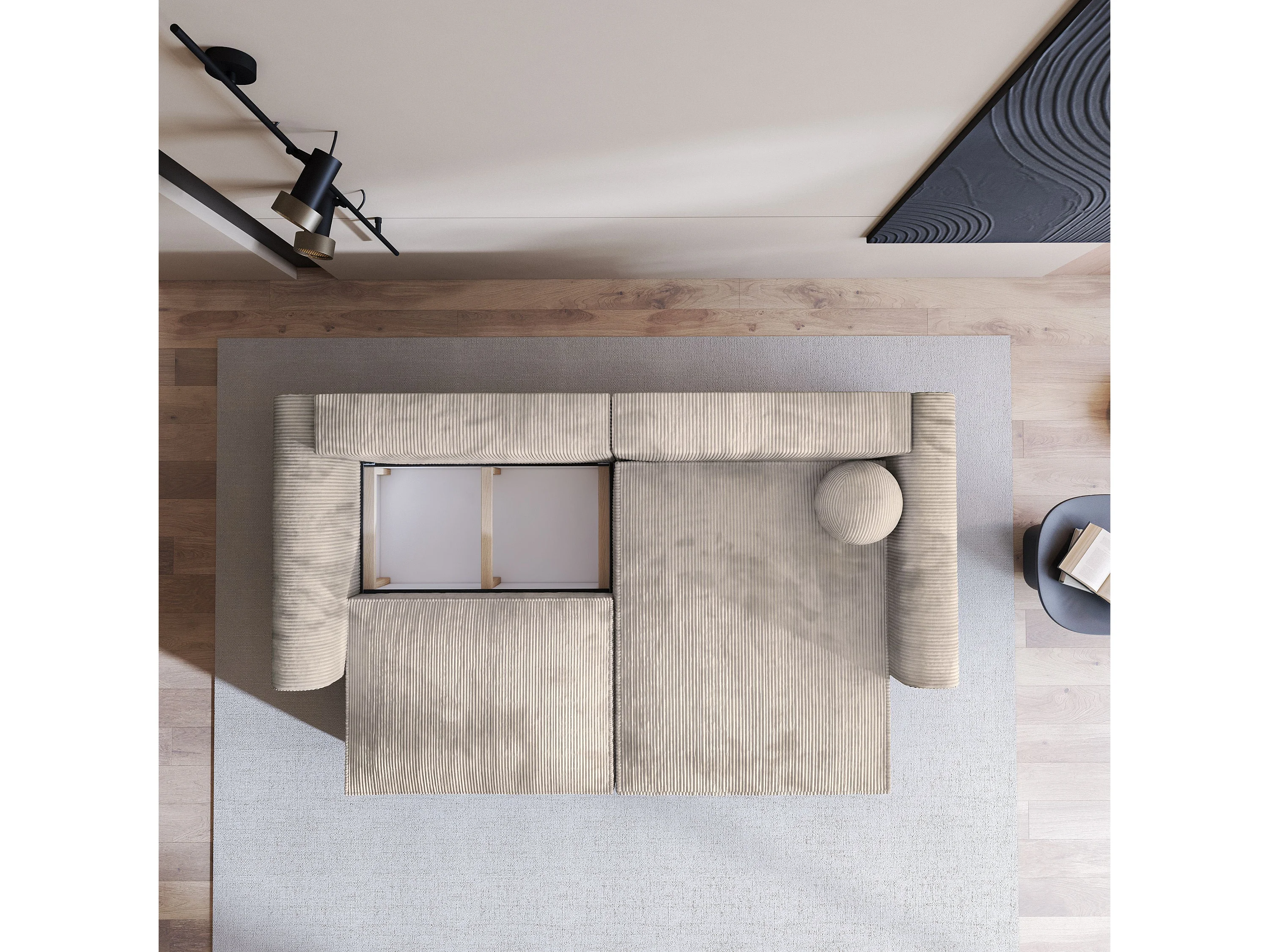 Canapé d'angle FIANO Crème en velours côtelé avec fonction de couchage