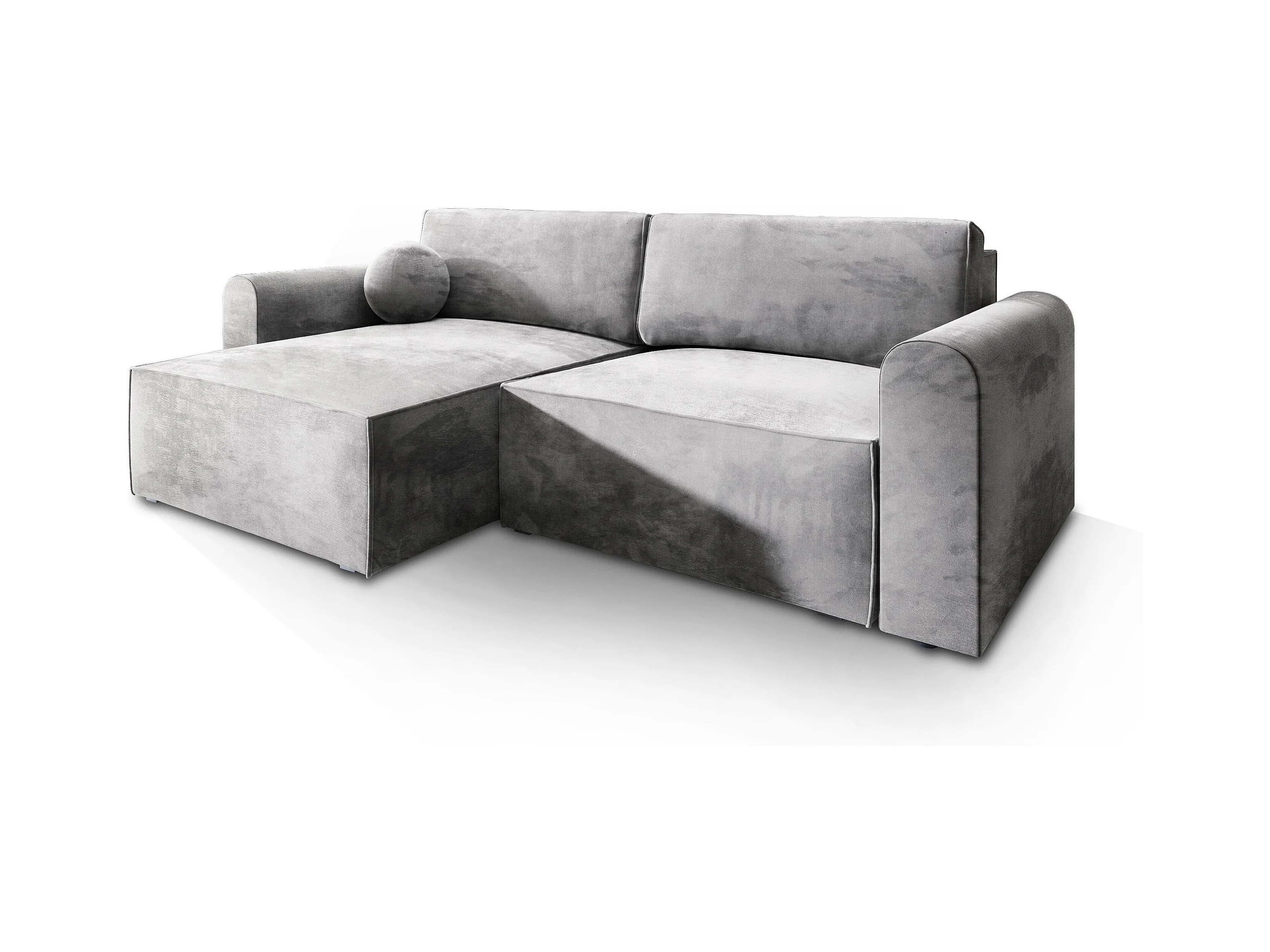 Canapé d'angle FIANO Gris clair en velours avec fonction de couchage