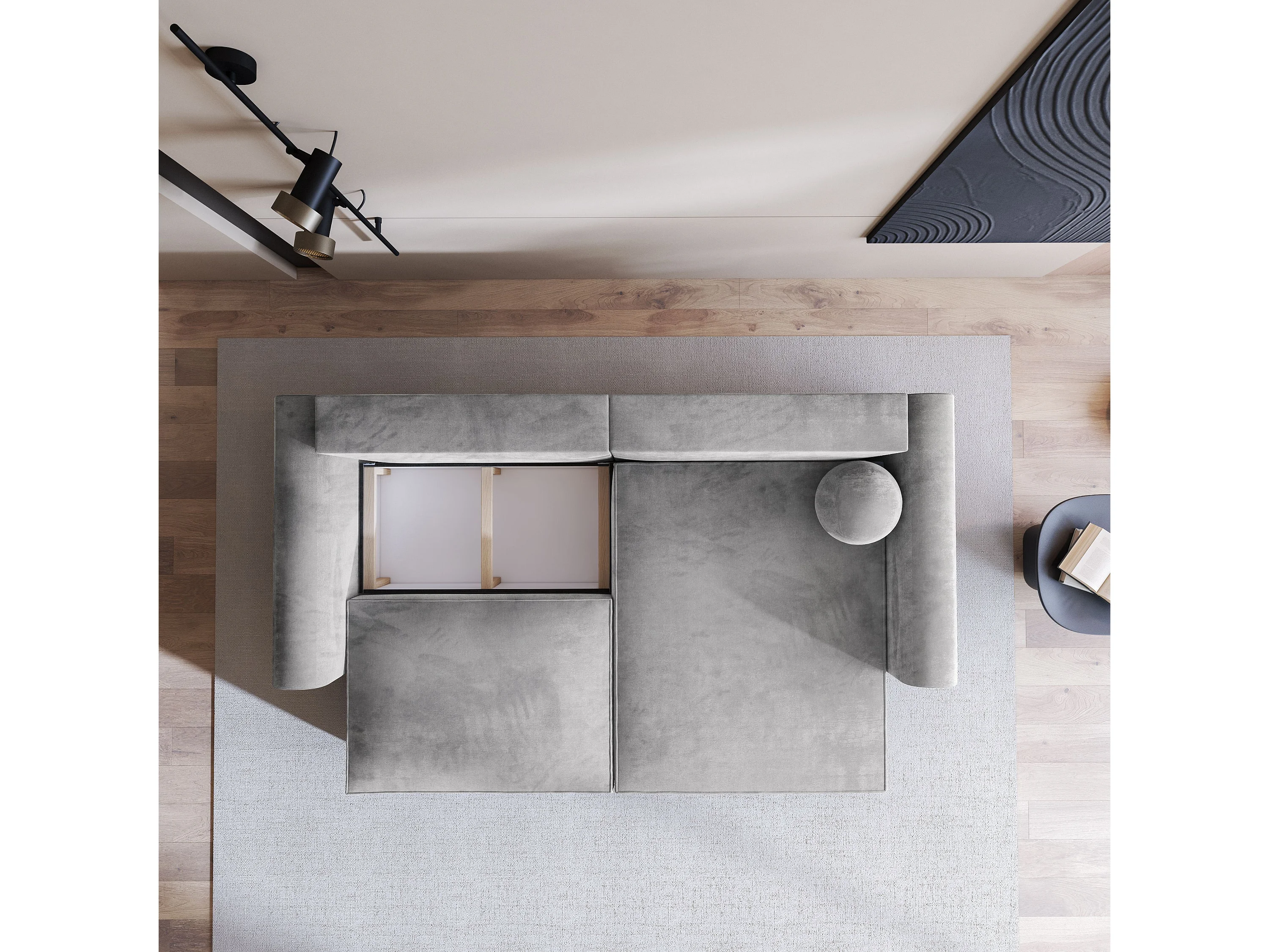 Canapé d'angle FIANO Gris en velours avec fonction de couchage
