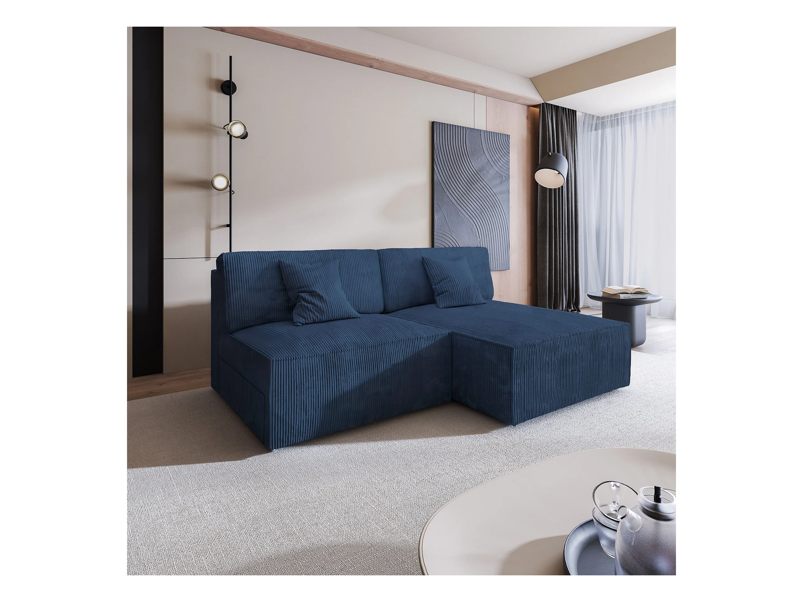 Canapé d'angle FIORO Bleu en velours côtelé avec fonction de couchage
