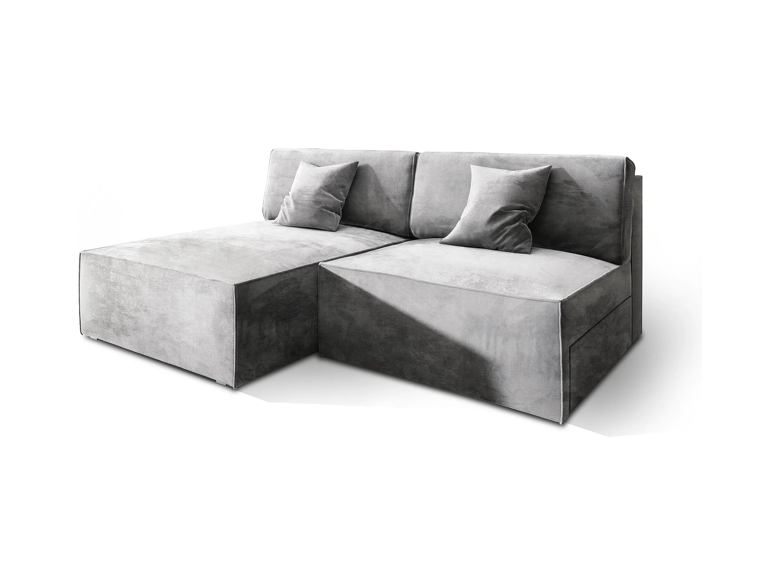 Canapé d'angle FIORO Gris clair en velours avec fonction de couchage