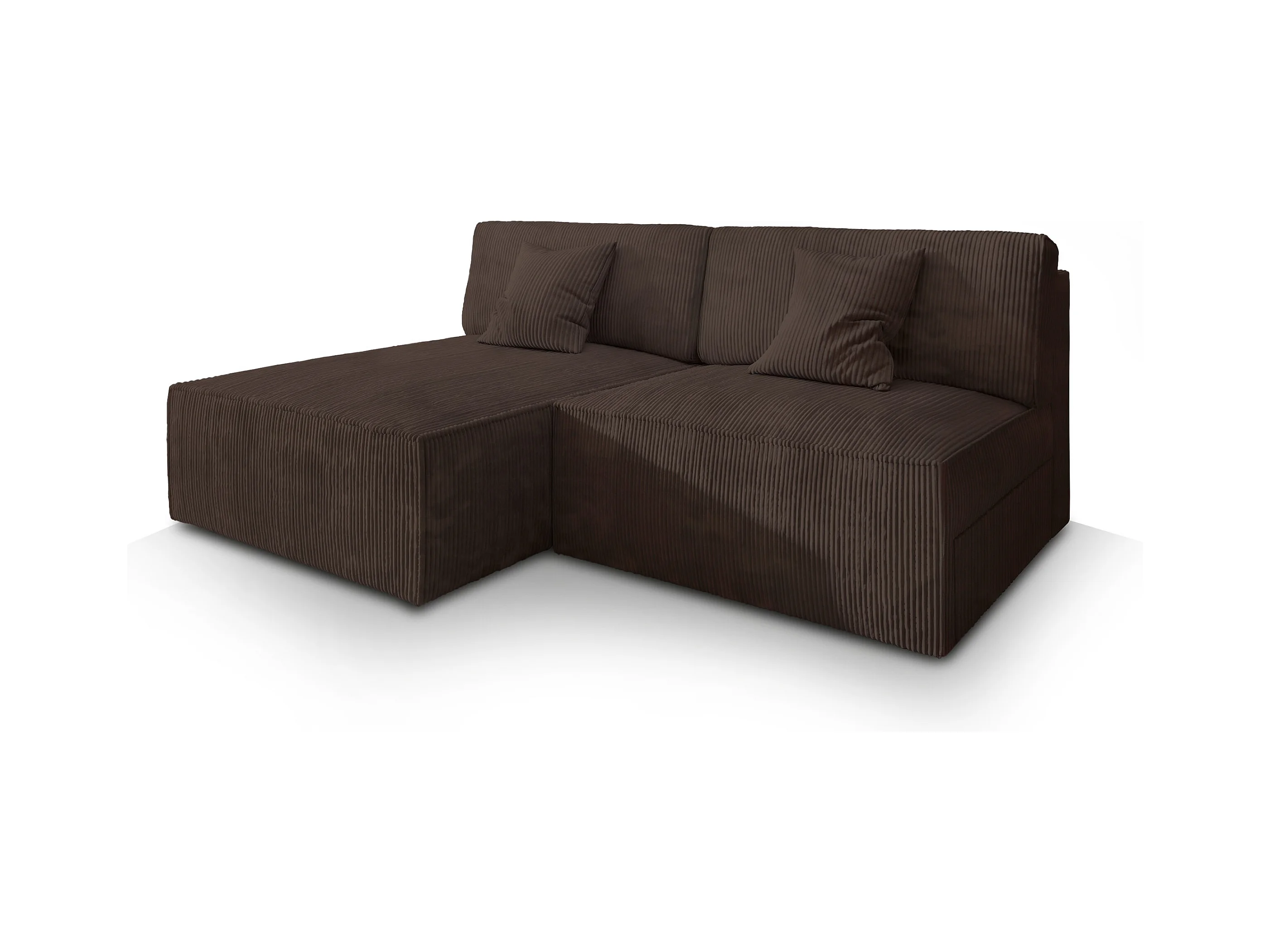 Canapé d'angle FIORO Marron en velours côtelé avec fonction de couchage
