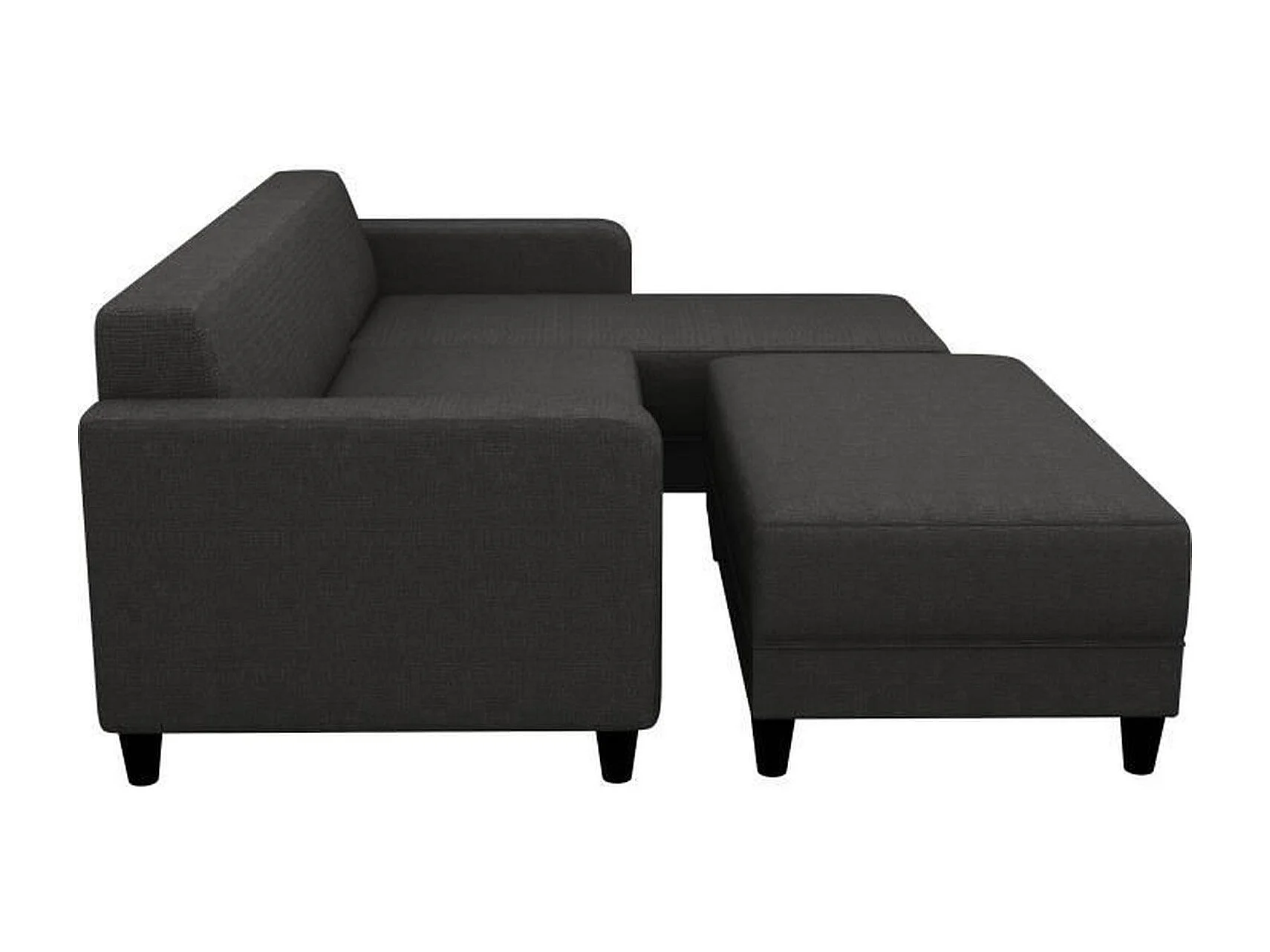 Canapé d'angle fixe 3 places + Banc - Tissu Anthracite - L 197 x P 138 x H 65 cm - BOB