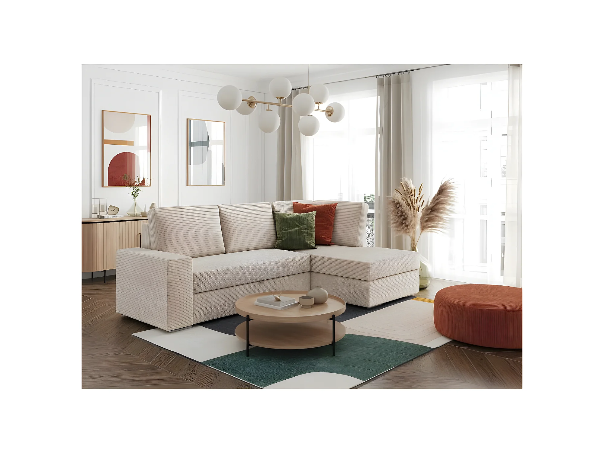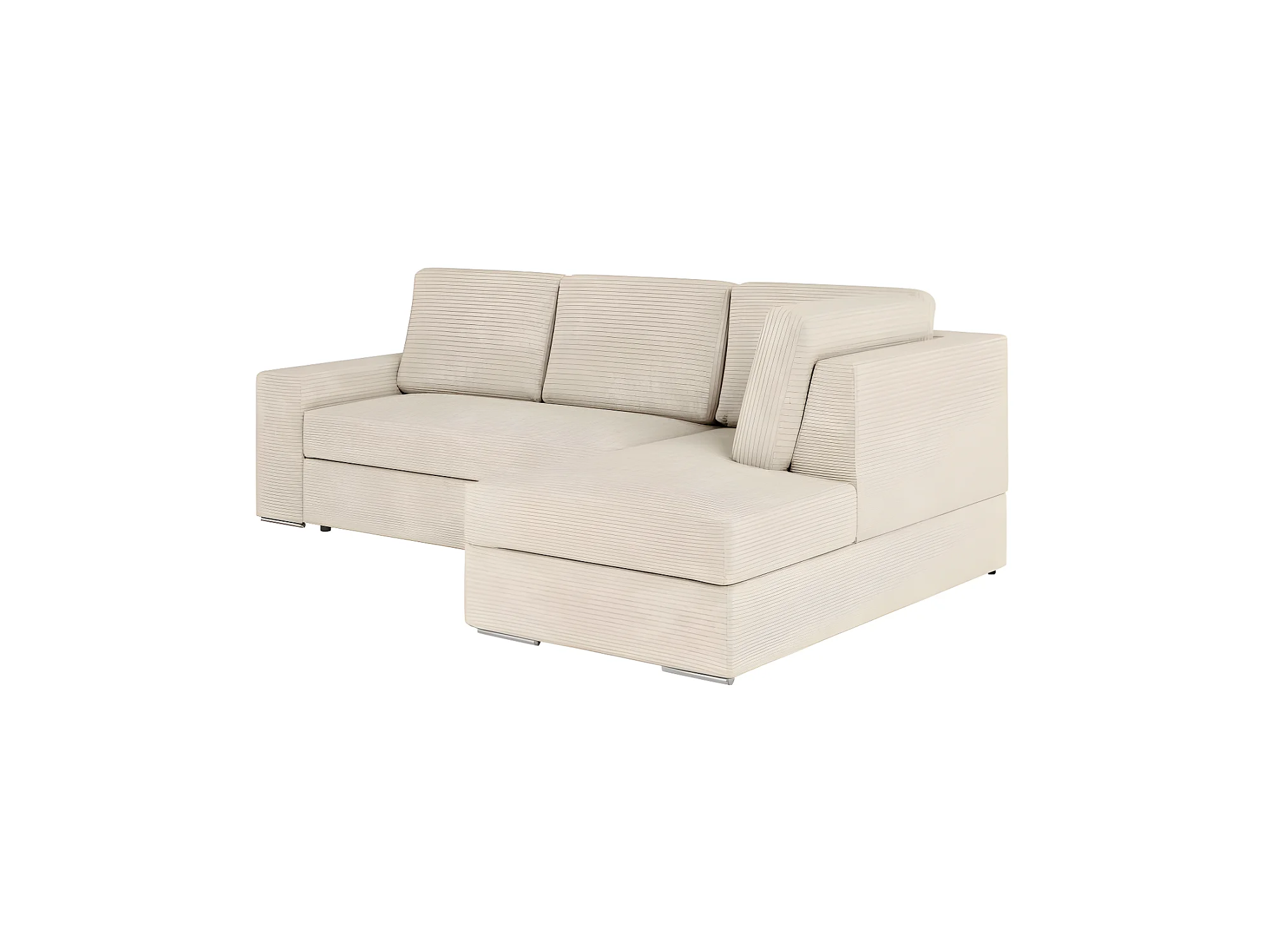 Canapé d'angle fixe ATEMIS convertible avec coffre en velours cotelé - Beige