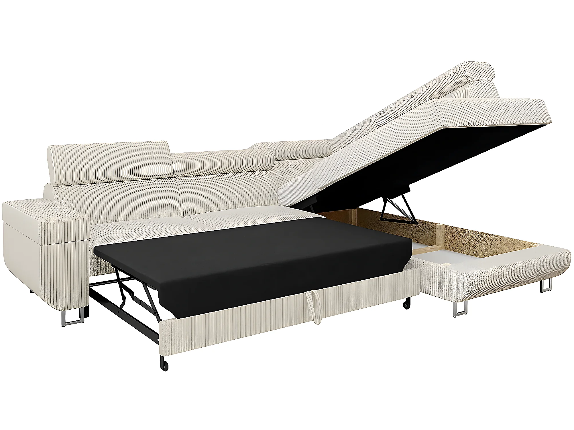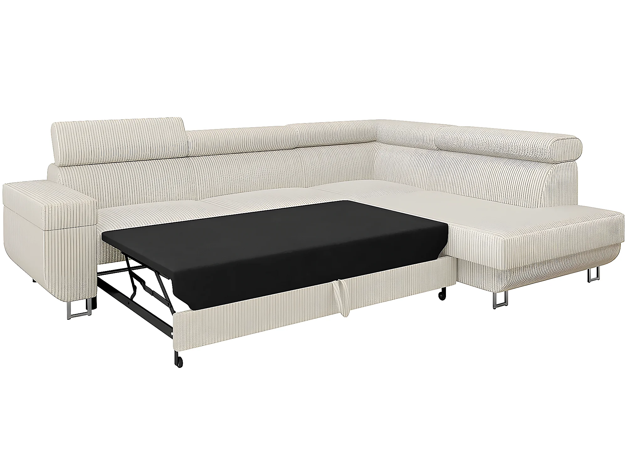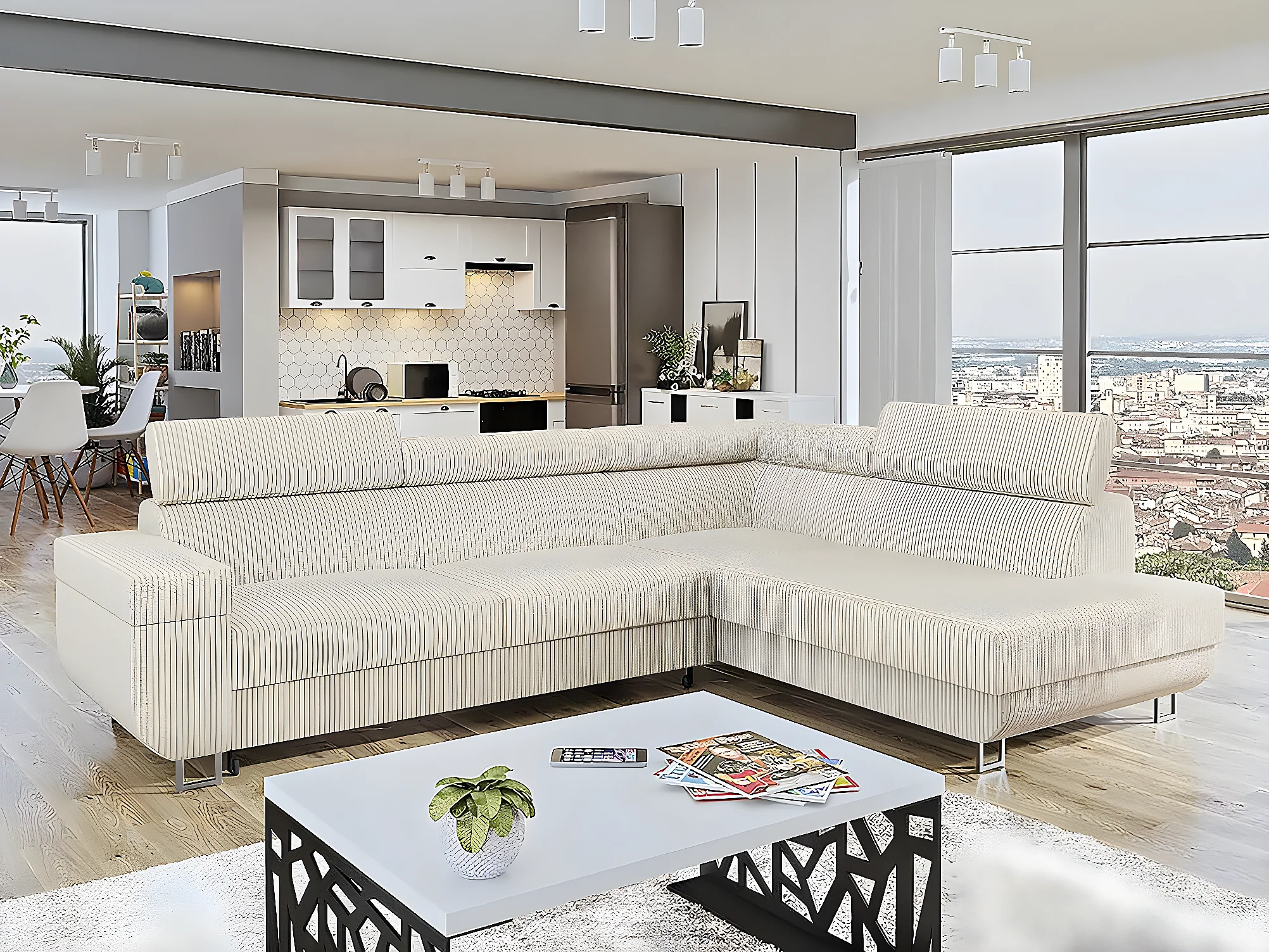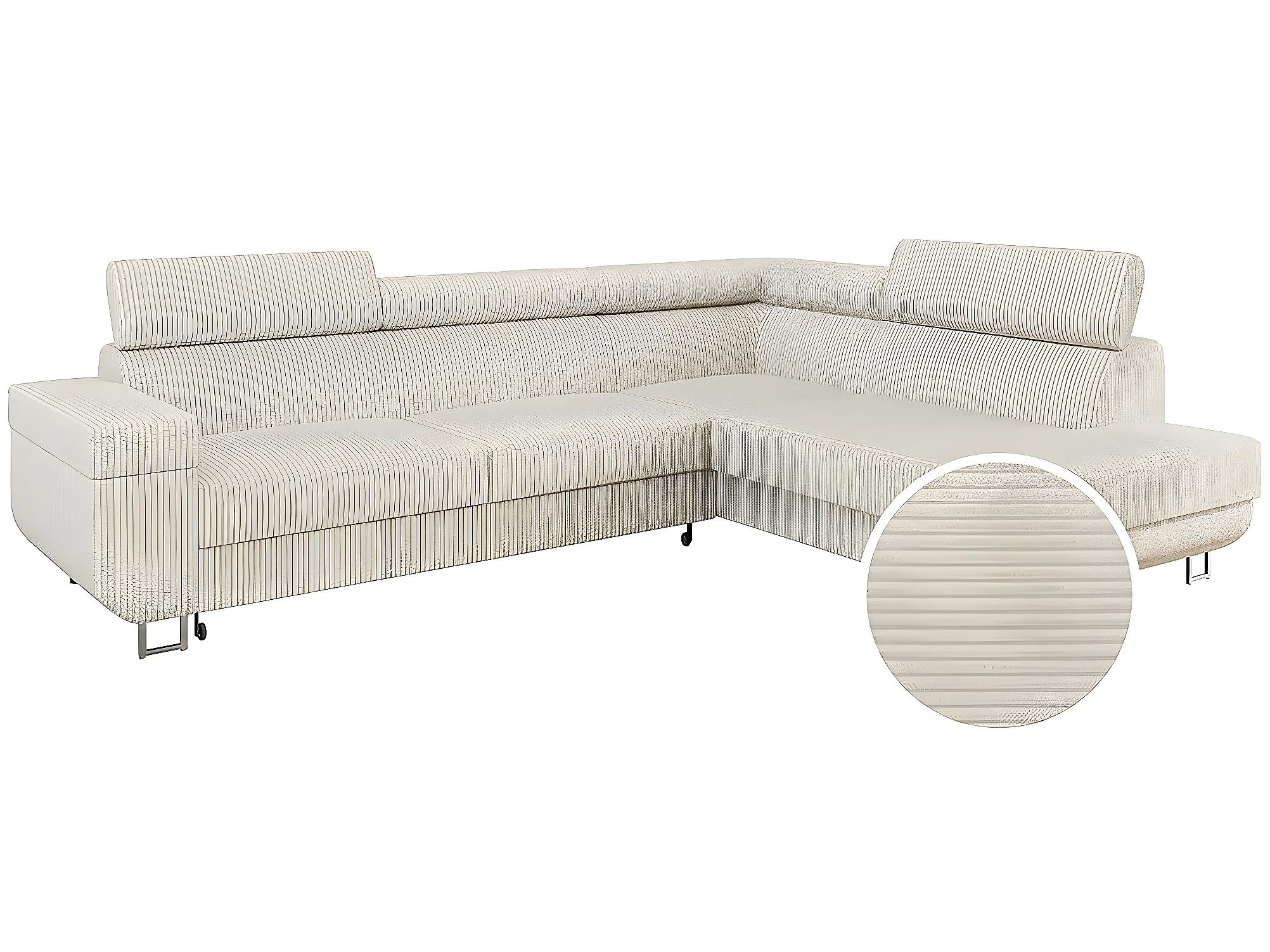 Canapé d'angle Droit "Fonti" en velours côtelé - 5 places - Beige
