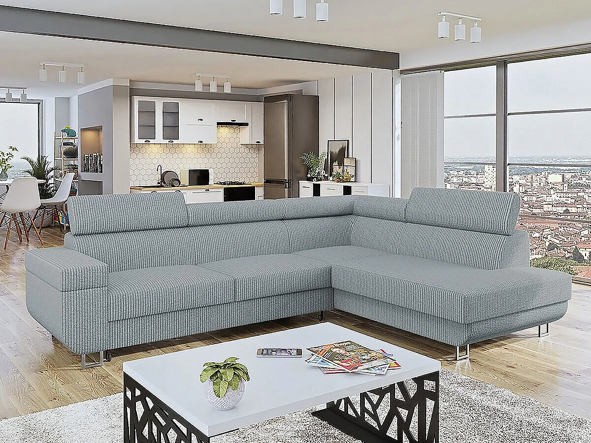 Canapé d'angle Droit "Fonti" en velours côtelé - 5 places - Gris