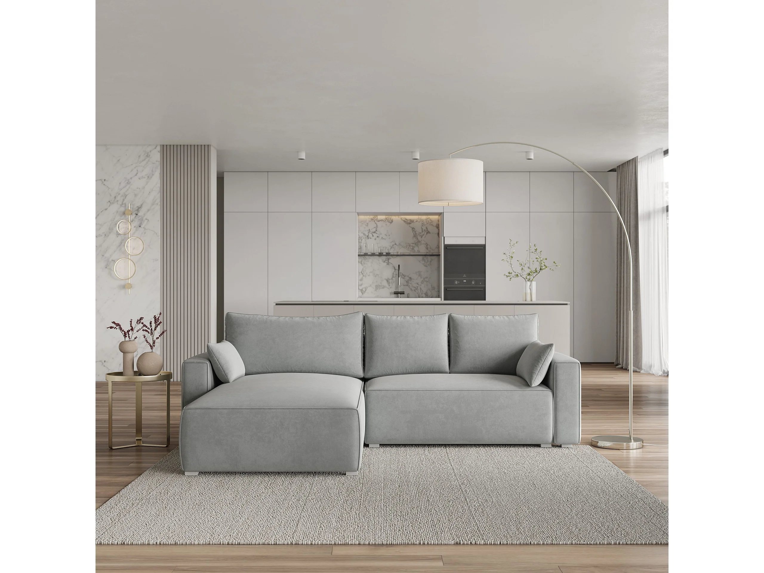 Canapé d'angle FORIL Gris clair en velours avec fonction de couchage