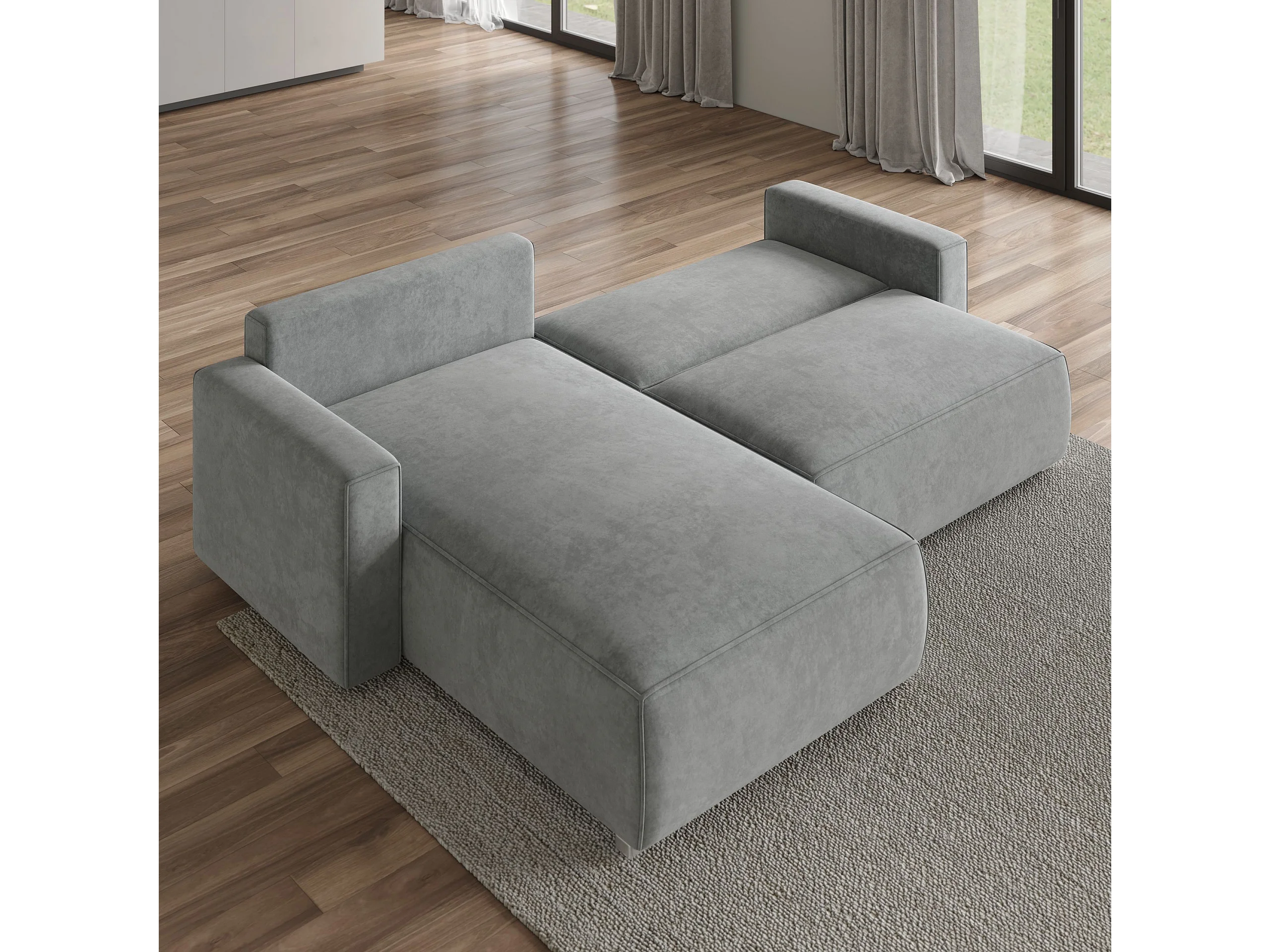Canapé d'angle FORIL Parme en velours avec fonction de couchage