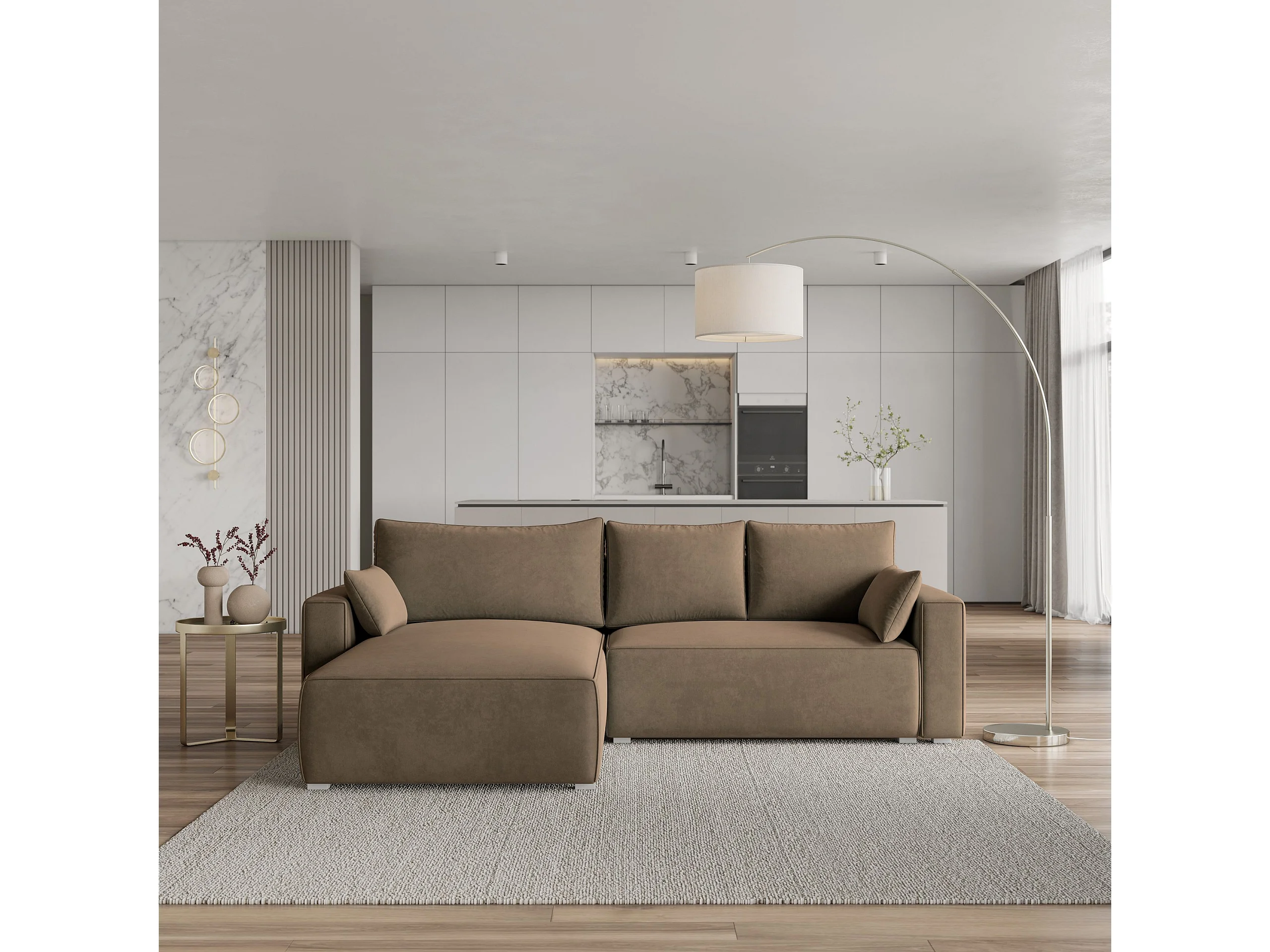 Canapé d'angle FORIL Beige en velours avec fonction de couchage