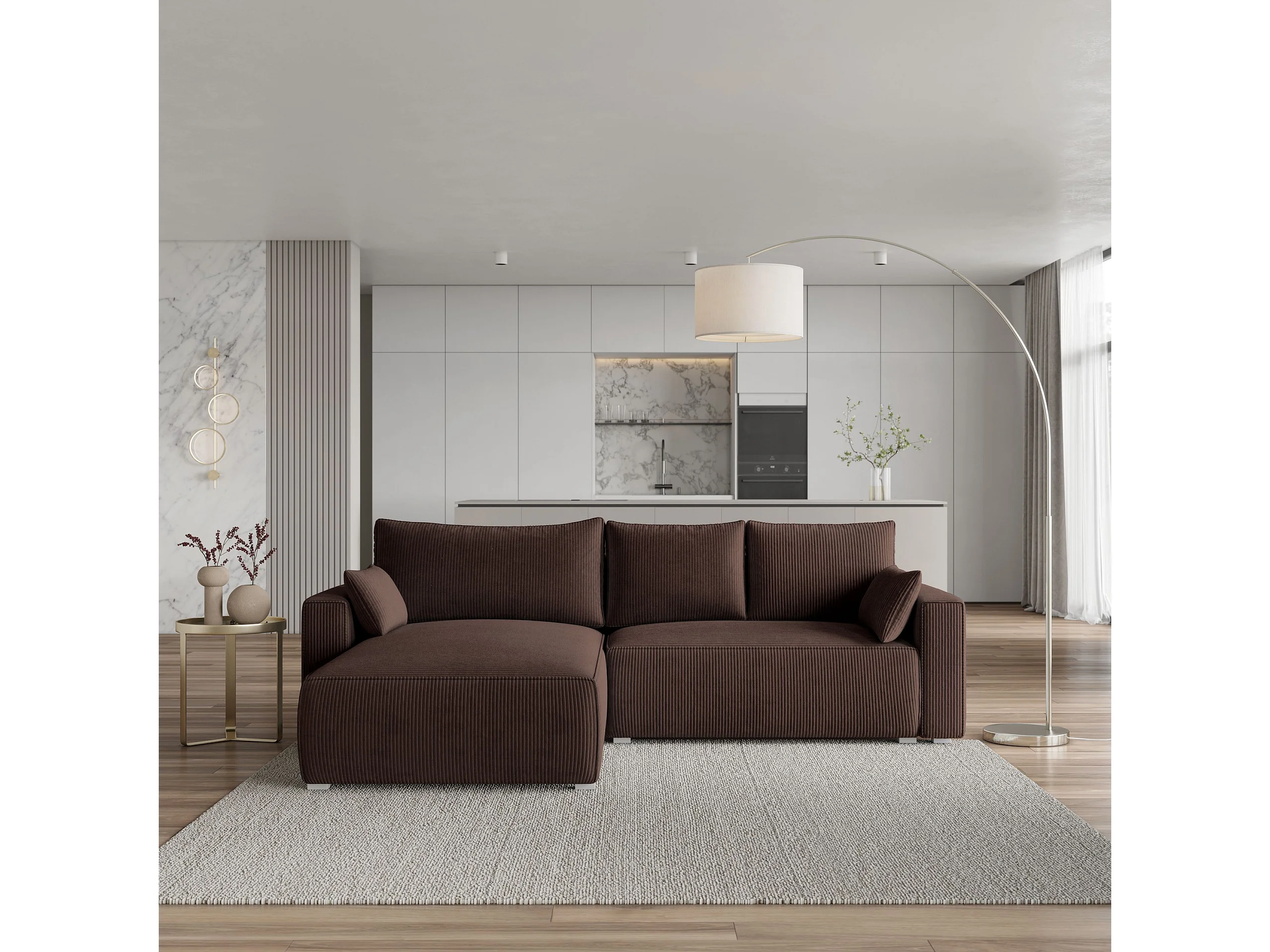 Canapé d'angle FORIL Marron en velours côtelé avec fonction de couchage