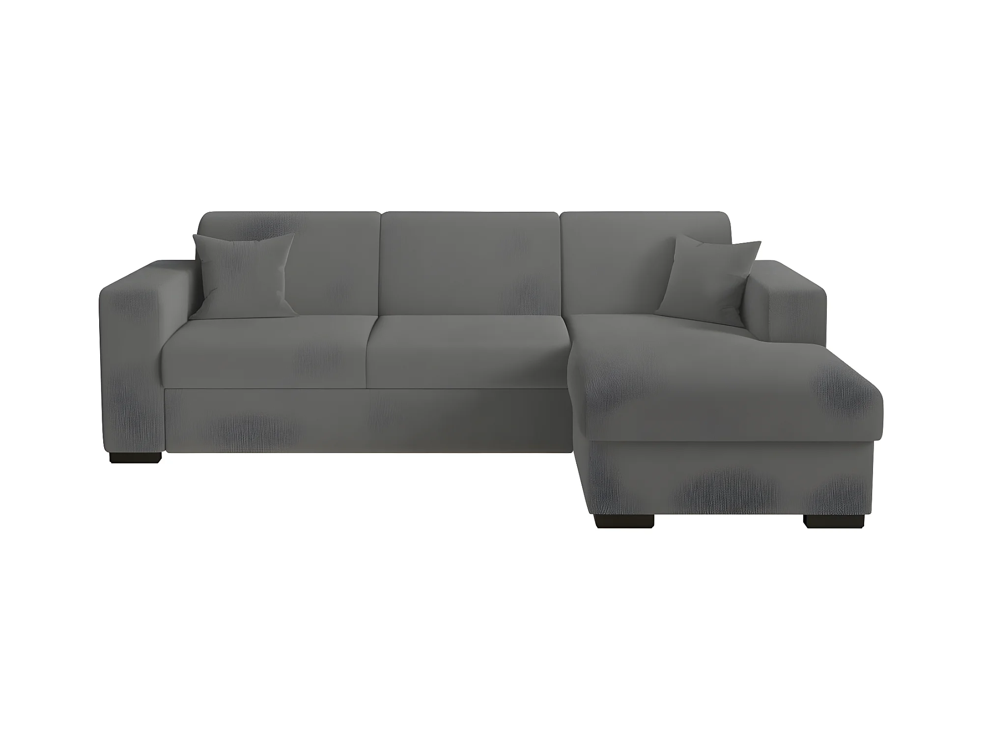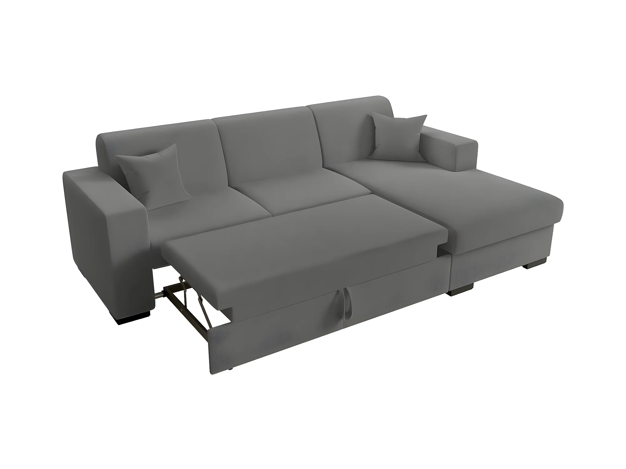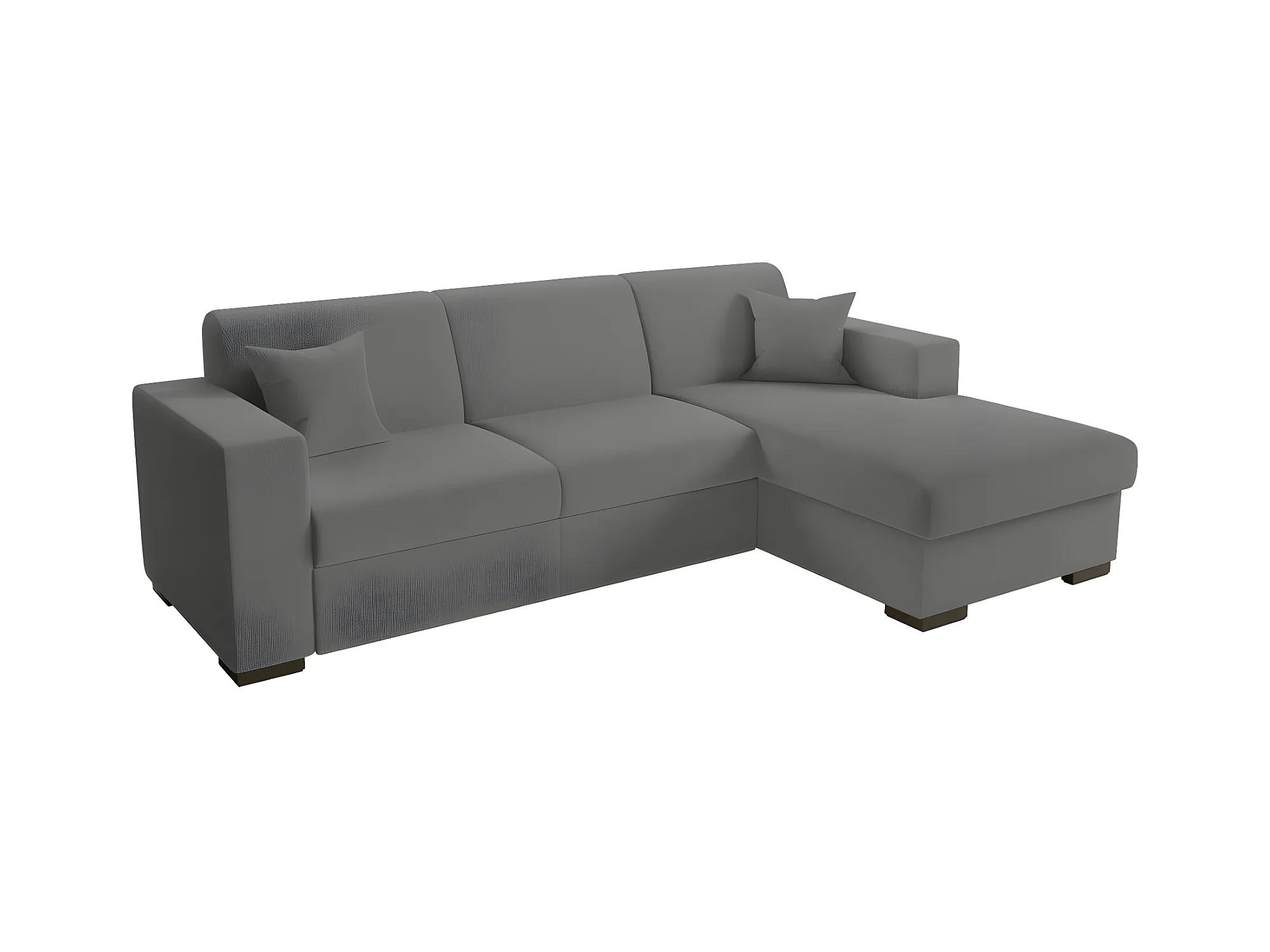 Canapé d'angle droit 4 places Fuji XL convertible avec coffre en tissu bouclette - Gris - L262 x P157 x H83cm - Loungitude